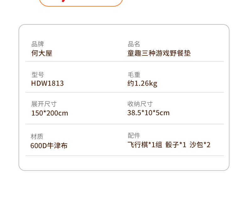 何大屋 童趣三种游戏野餐垫HDW1813