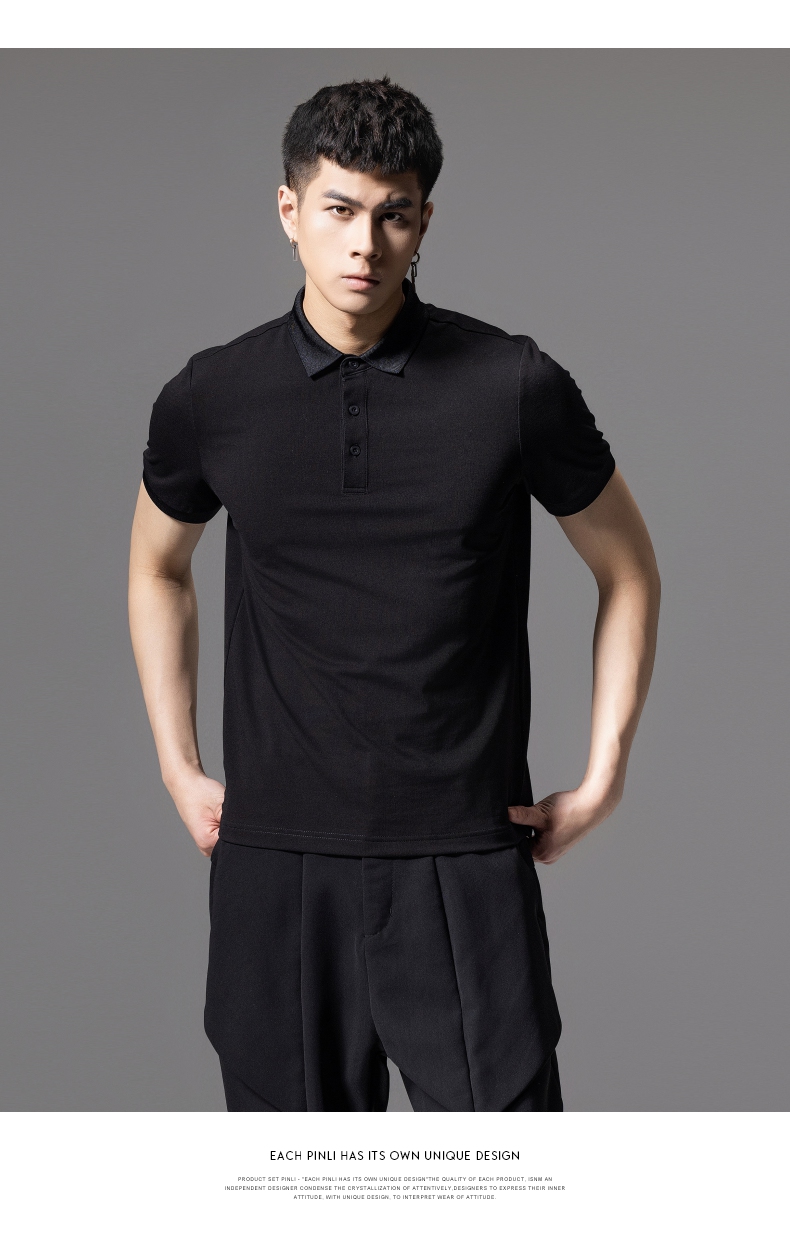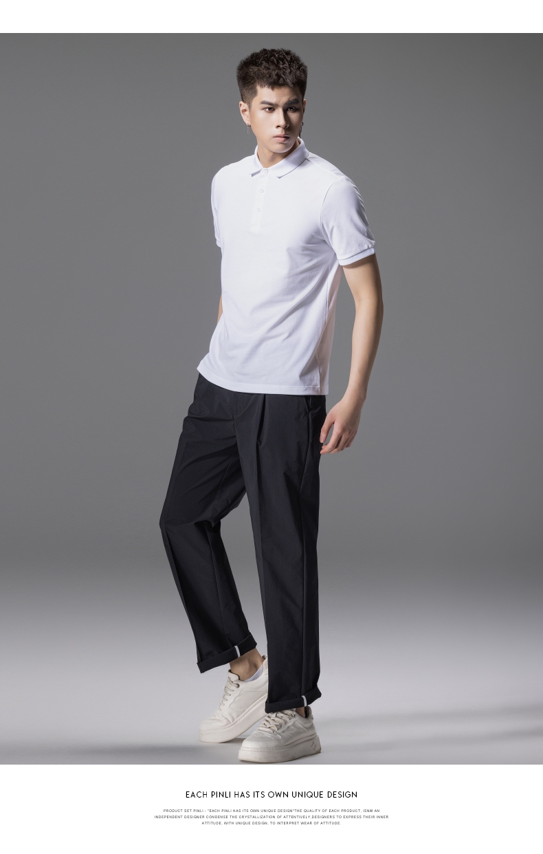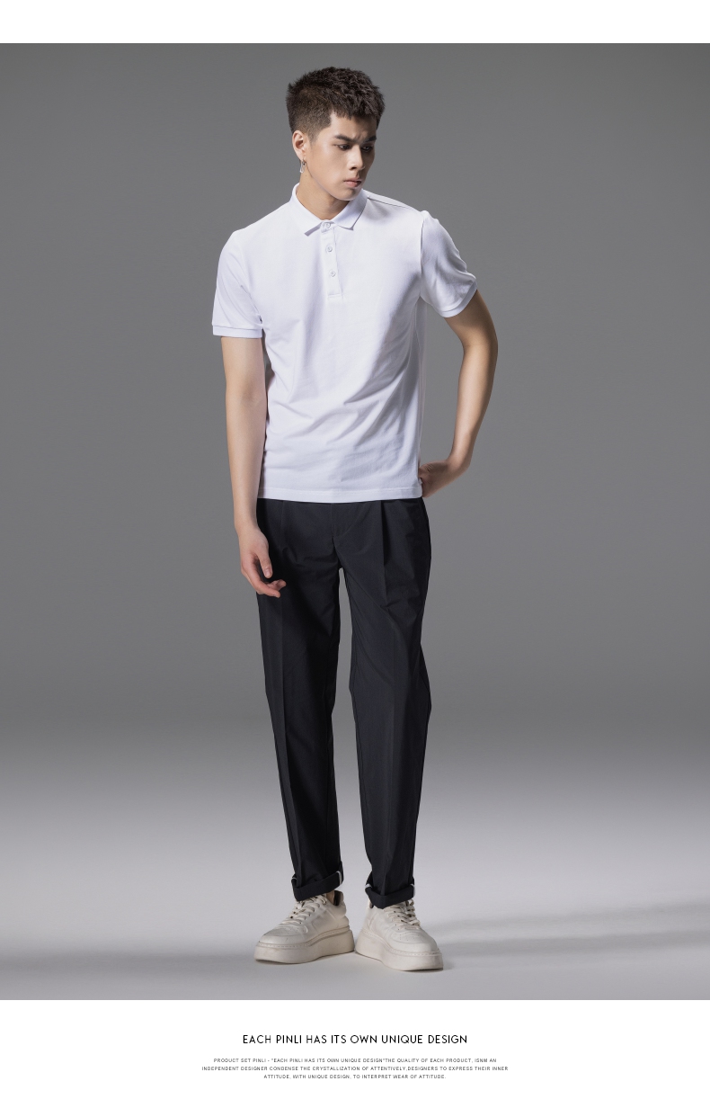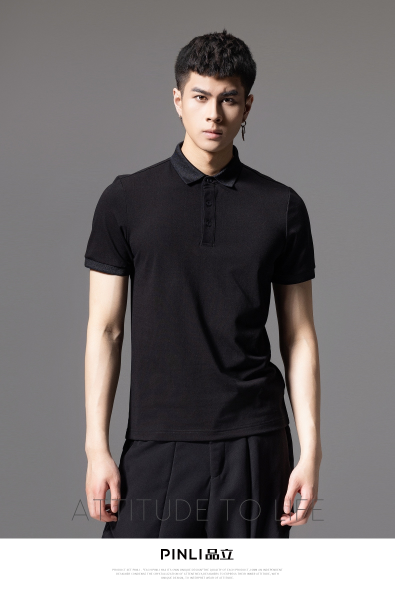 PINLI品立夏季新款修身男士纯色百搭翻领短袖POLO衫T恤上衣潮V242112001