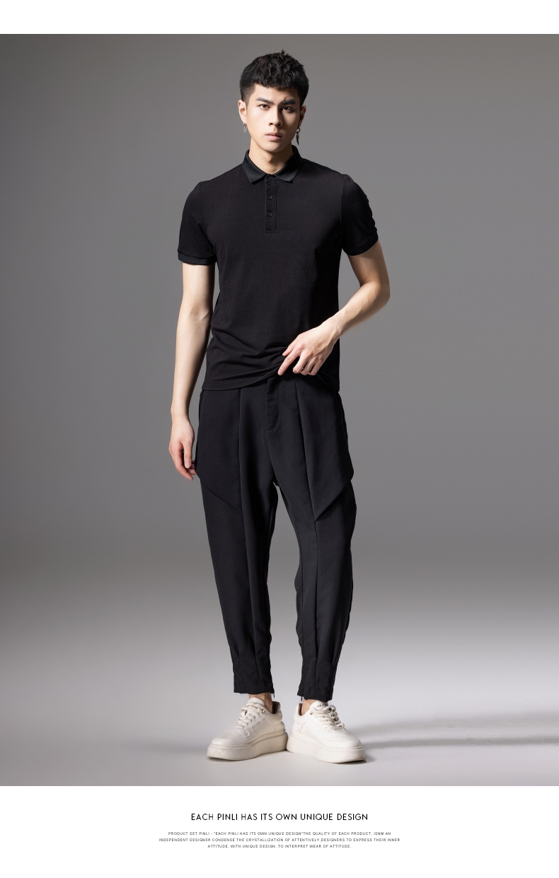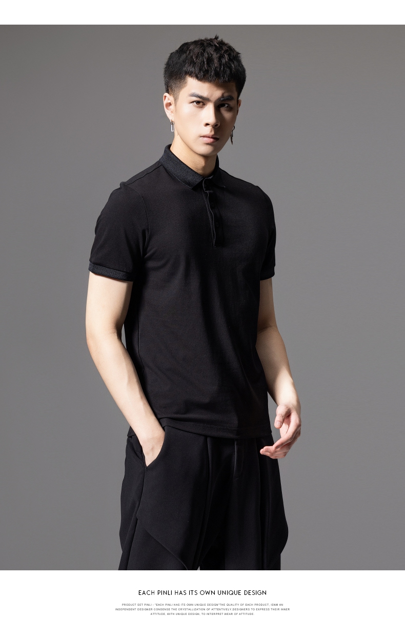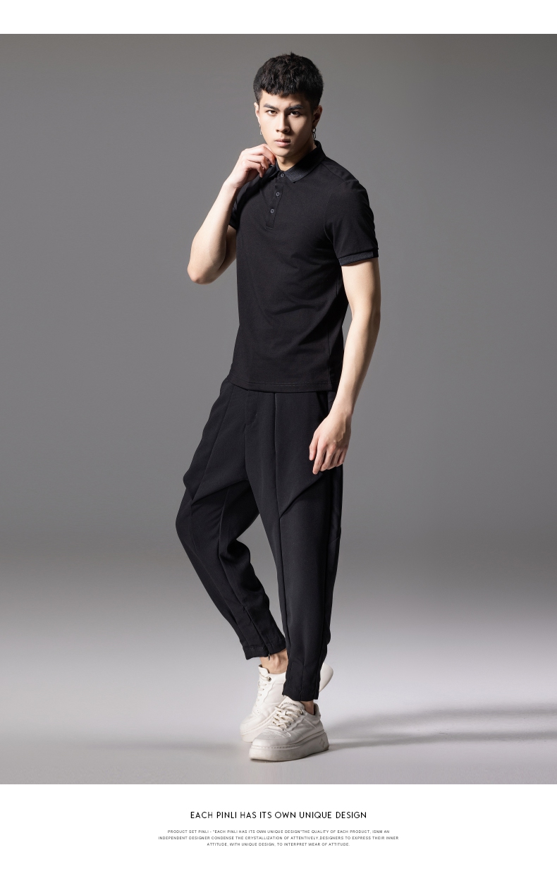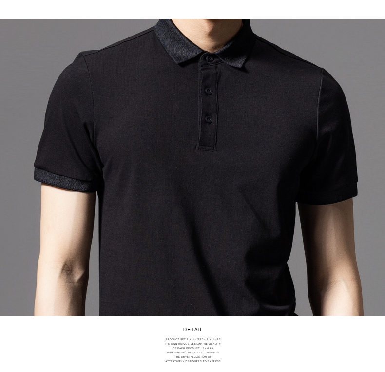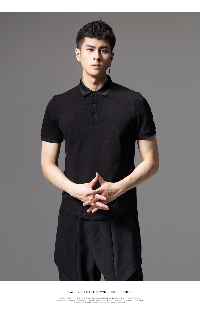 PINLI品立夏季新款修身男士纯色百搭翻领短袖POLO衫T恤上衣潮V242112001