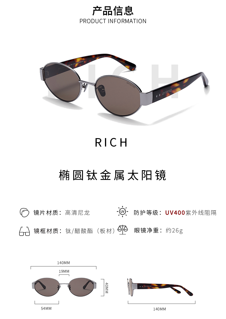 【单向好物推荐 】amimia·RICH 椭圆钛金属太阳镜