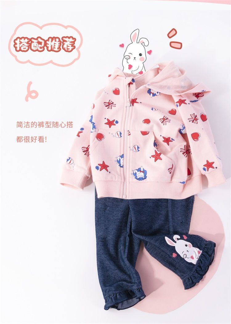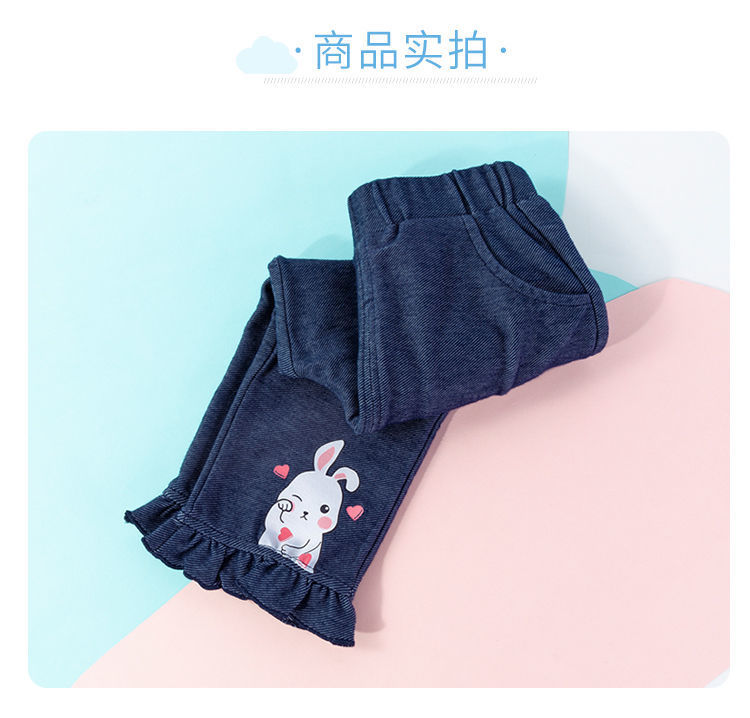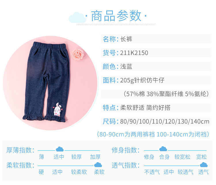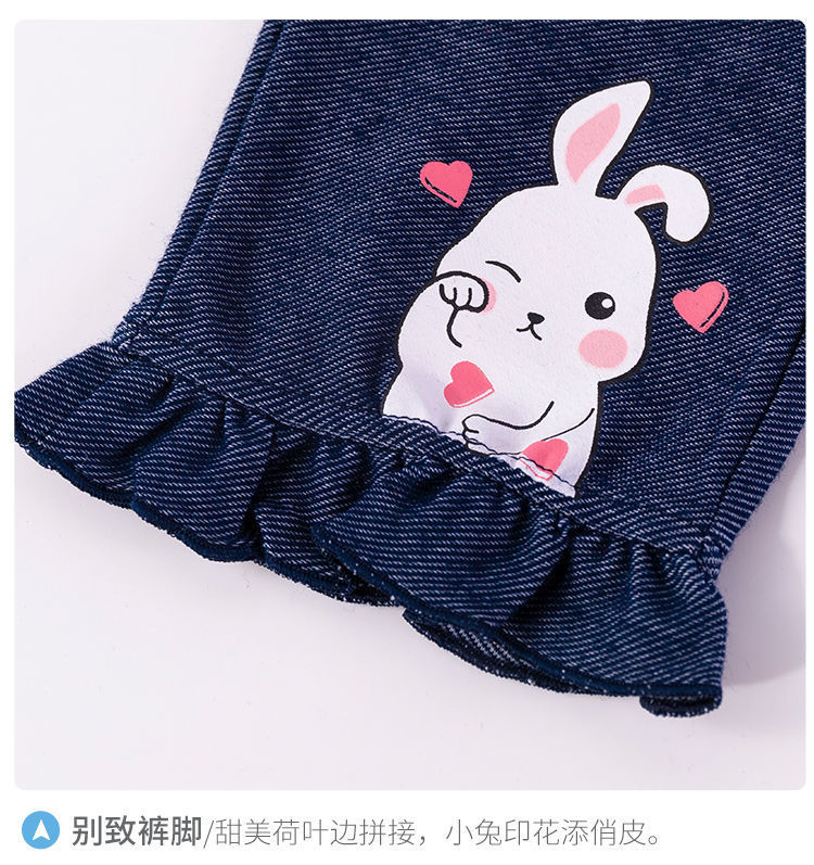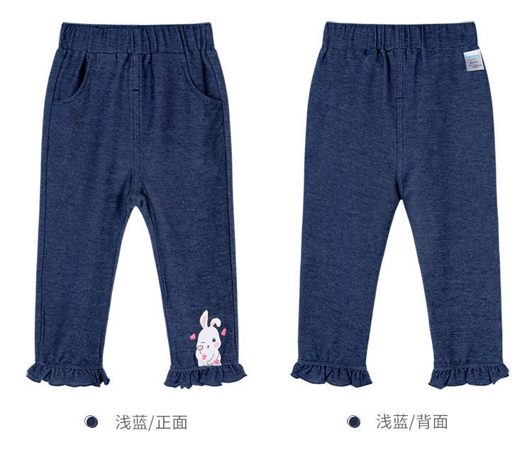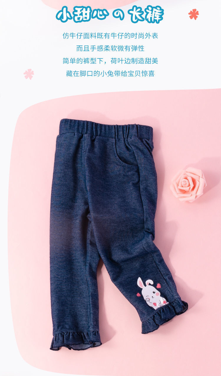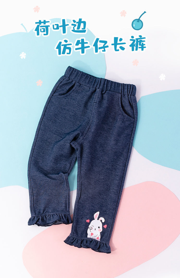 贝贝怡春装新品女童仿牛仔裤子婴儿可爱兔长裤牛仔裤休闲裤211K2150