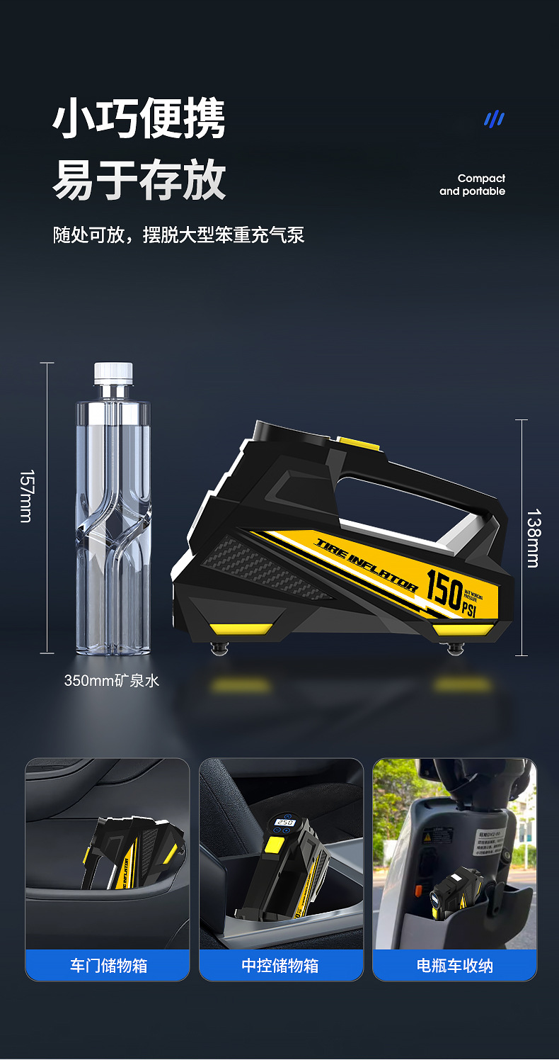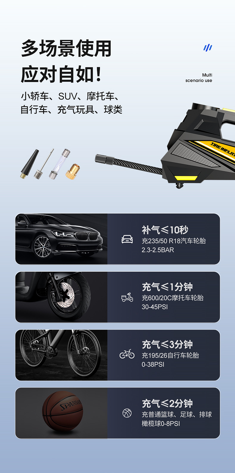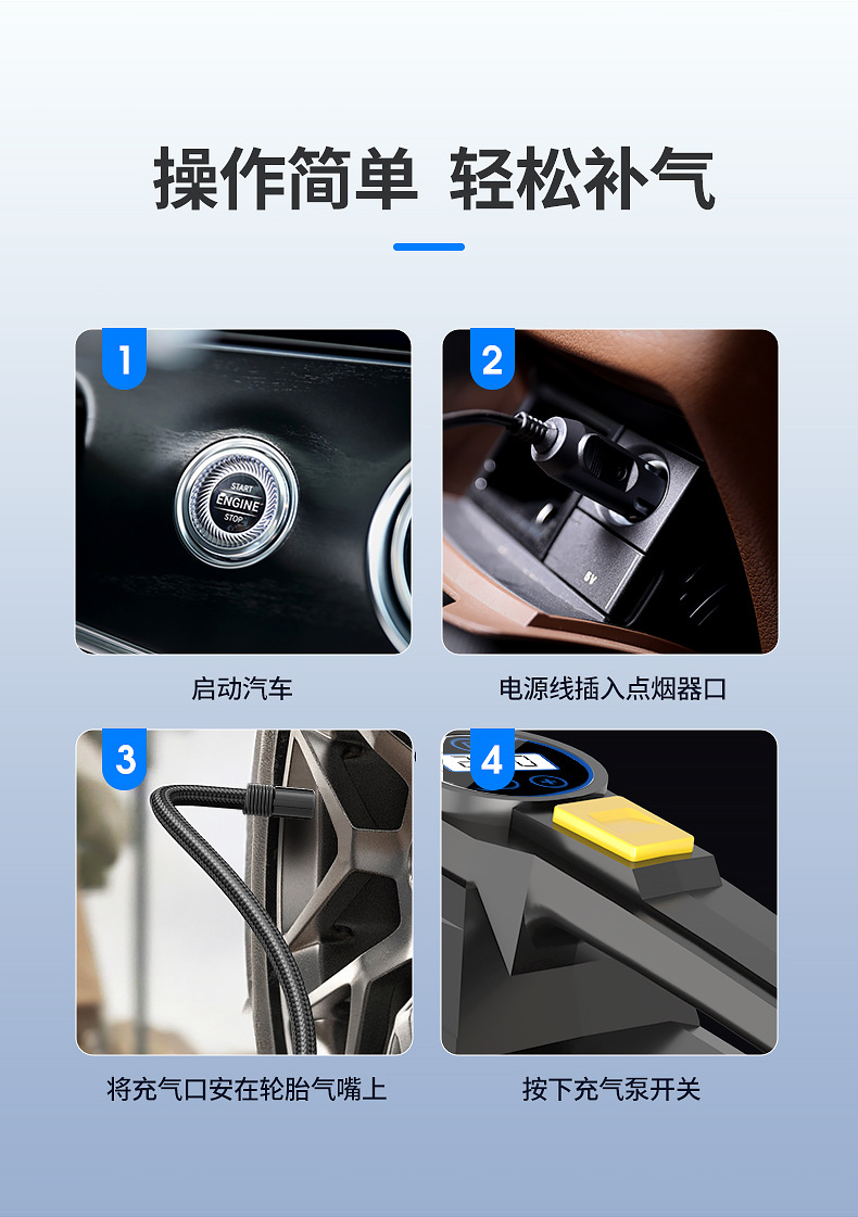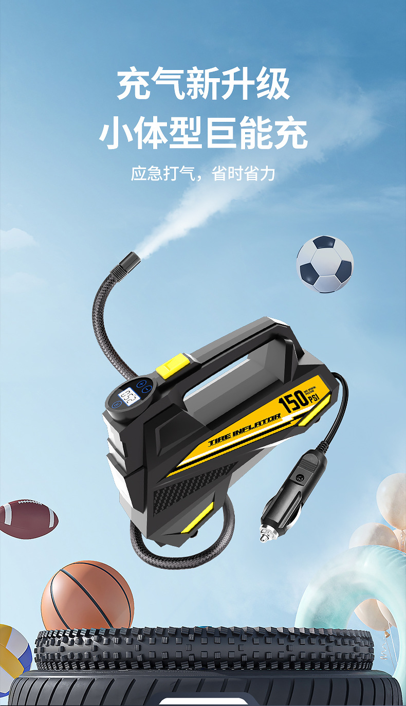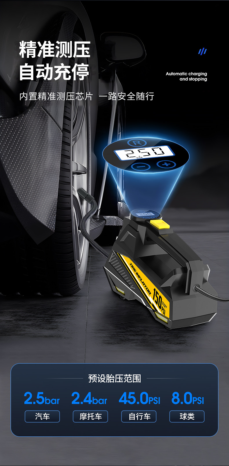 CARSUN 车载充气泵汽车便携式数显照明充气泵车用智能轮胎胎压电动打气泵