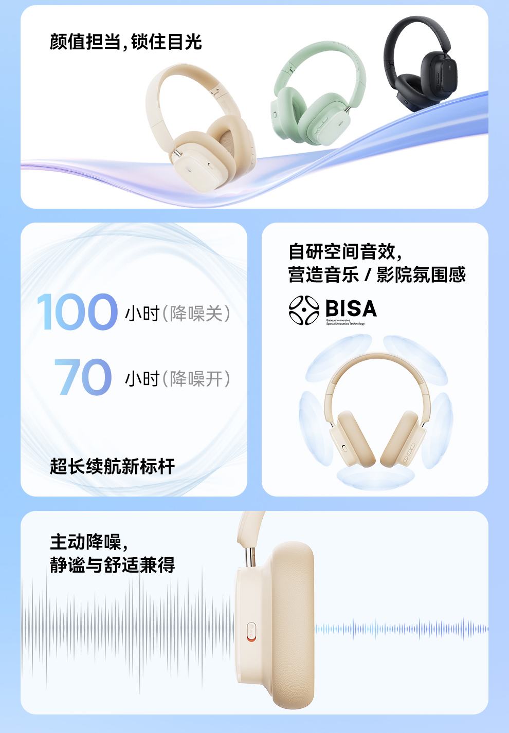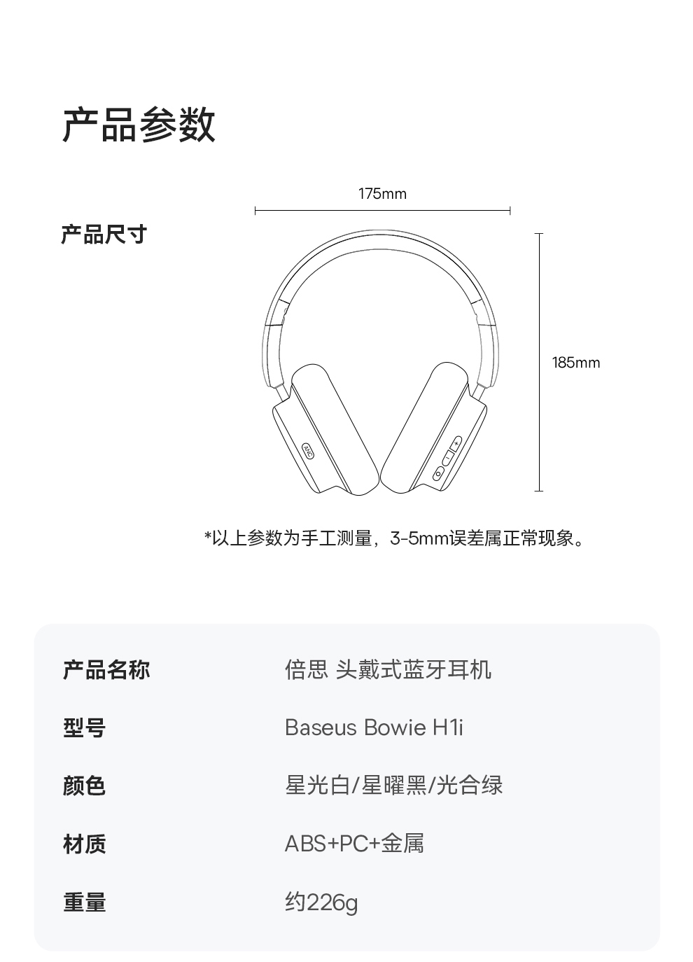 倍思 Bowie系列 H1i 头戴式降噪蓝牙耳机