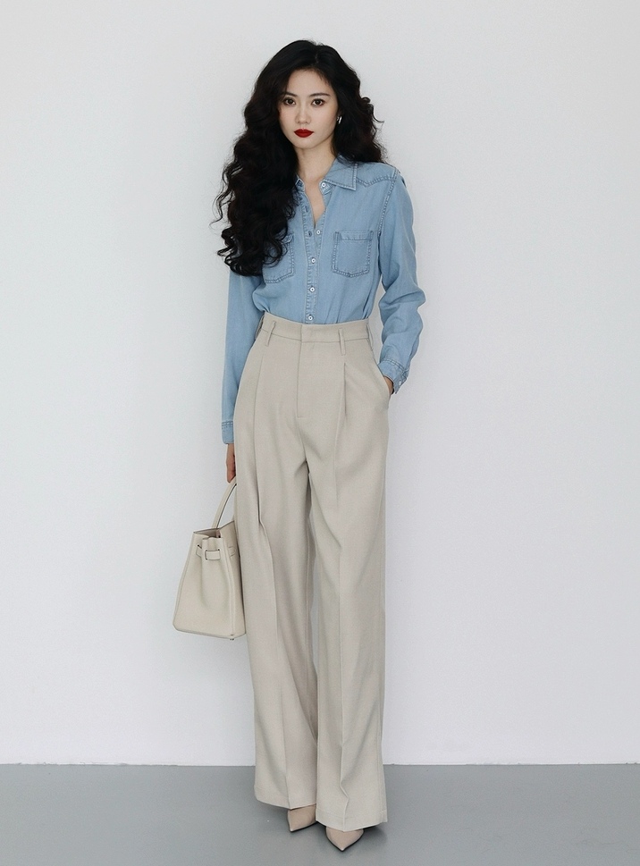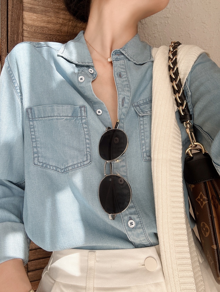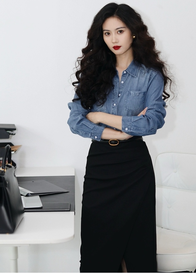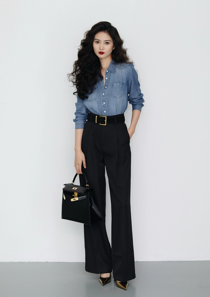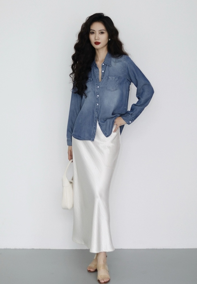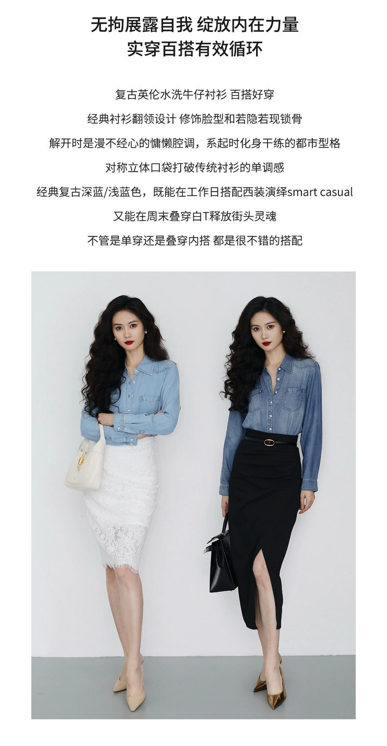 深蓝+浅蓝,复古港风萬能佰搭牛仔衬衫。
