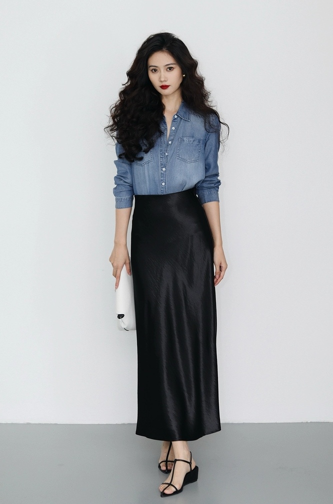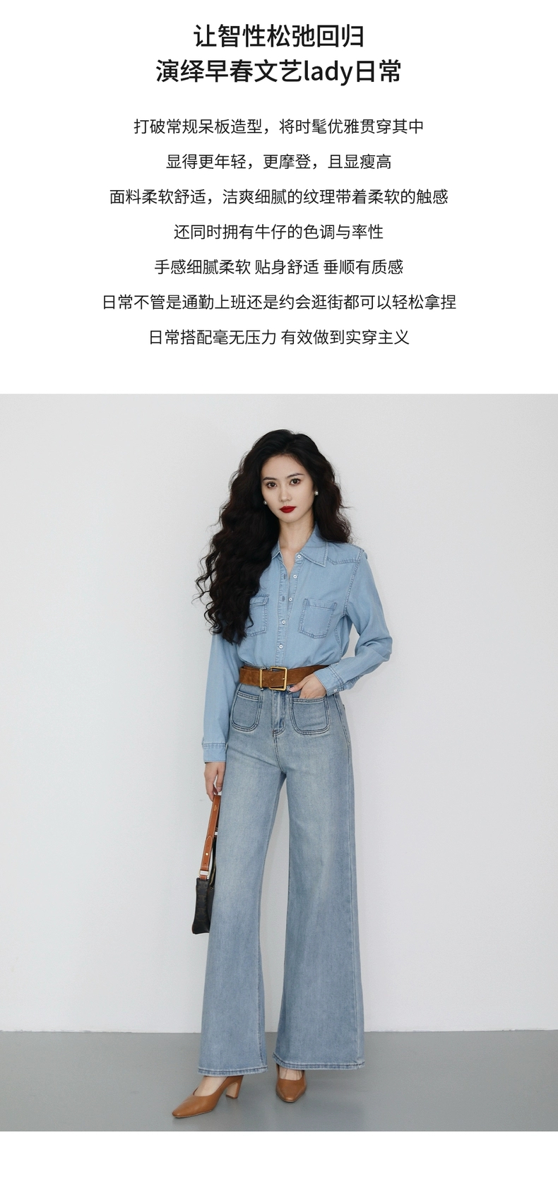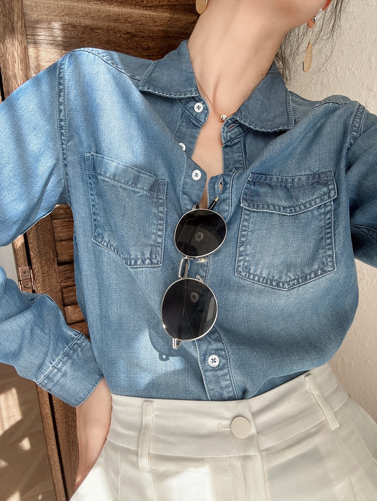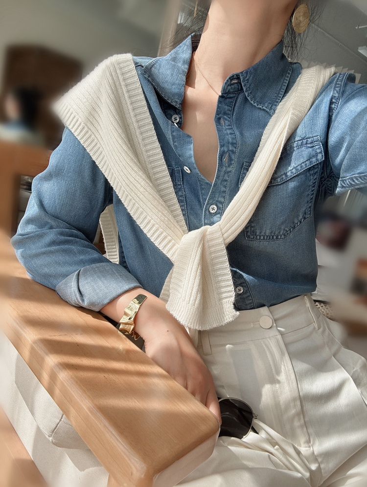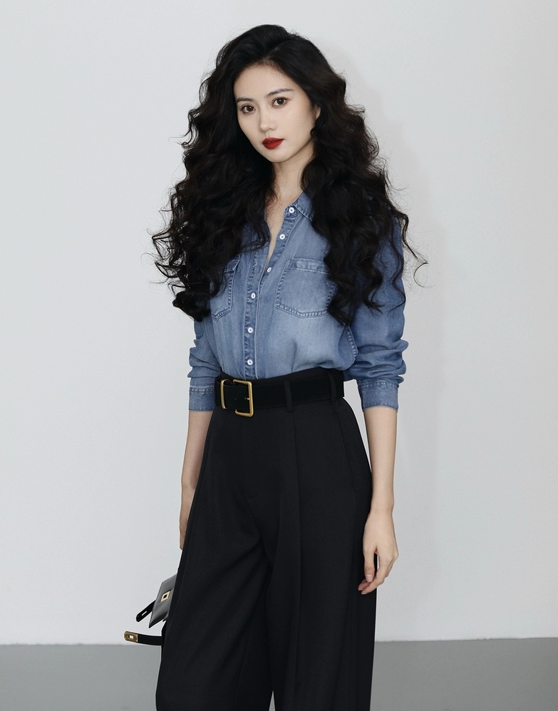 深蓝+浅蓝,复古港风萬能佰搭牛仔衬衫。