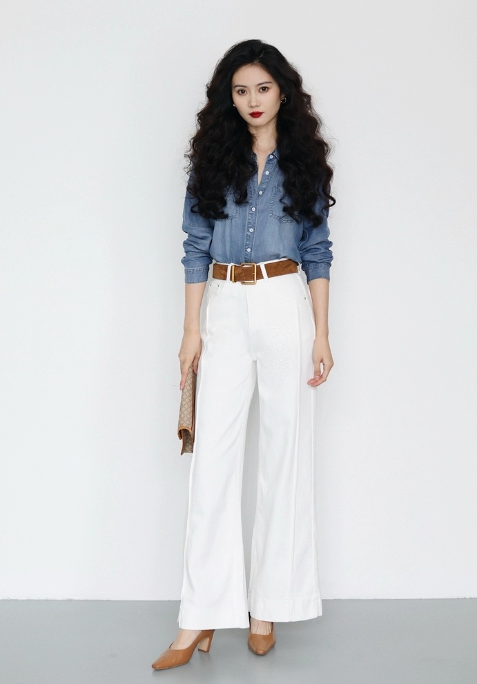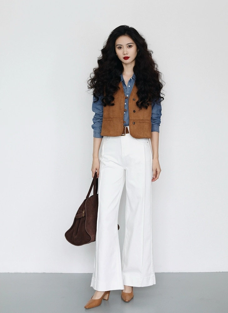 水洗蓝色系牛仔,穿起来更显得整个人活力减龄。