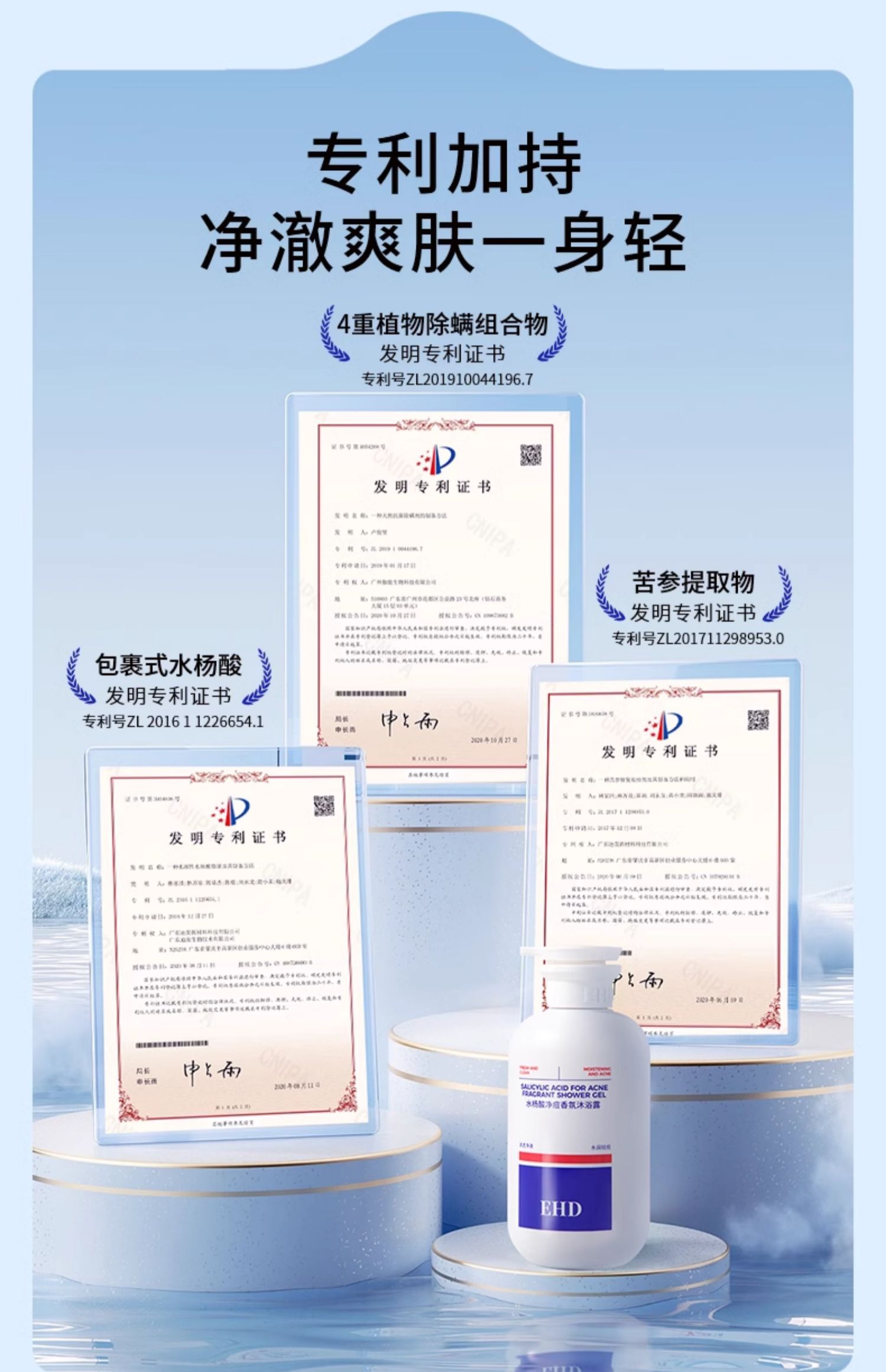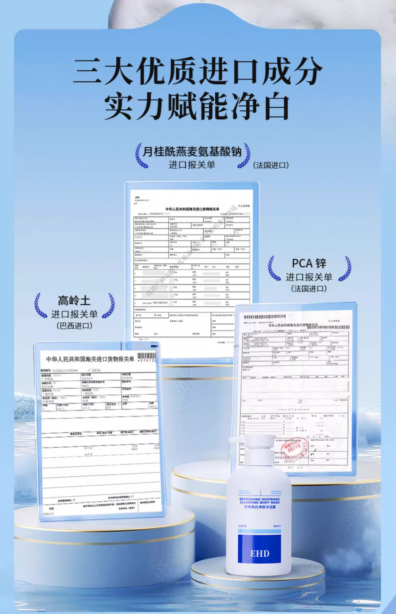 【品名】【超值赠品】EHD 水杨酸净痘香氛沐浴露/舒爽美白净澈沐浴露 滋润保湿 美白嫩肤 500ml/瓶 【规格】 水杨酸净痘香氛沐浴露500ml*1[ 赠EHD洗护沐旅行套装(洗发水50ml*1+护发素50ml*1+沐浴露50ml*1)+EHD多维蓬松控油洗发水100ml*2 ] 舒爽美白净澈沐浴露500ml*1[ 赠EHD洗护沐旅行套装(洗发水50ml*1+护发素50ml*1+沐浴露50ml*1)+EHD多维蓬松控油洗发水100ml*2] 【备案编号】 水杨酸净痘香氛沐浴露:粤G妆网备字2023298355 舒爽美白净澈沐浴露:国妆特字20220326 【执行标准】 水杨酸净痘香氛沐浴露:GB/T 34857 舒爽美白净澈沐浴露:GB/T 34857 【产地】国内 【保质期】3年 【发货包装】独立包装 【发货地】佛山 【发货快递】中通 【补邮费地区】新疆、西藏、青海+15元/单 【发货时效】48-72小时,周末节假日顺延 |