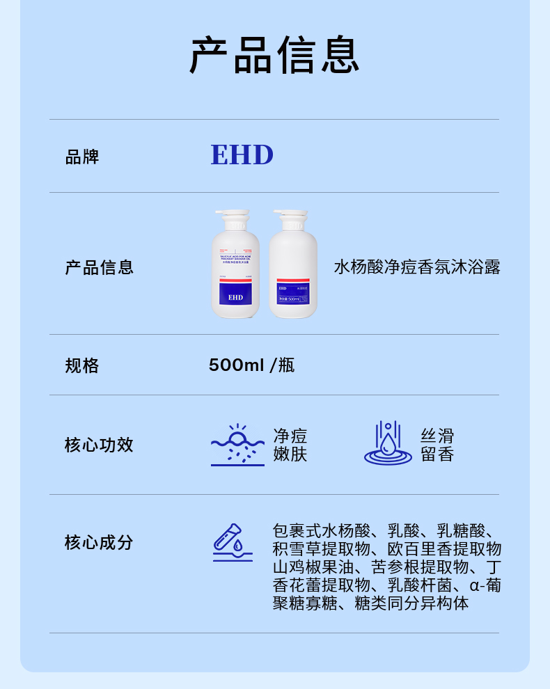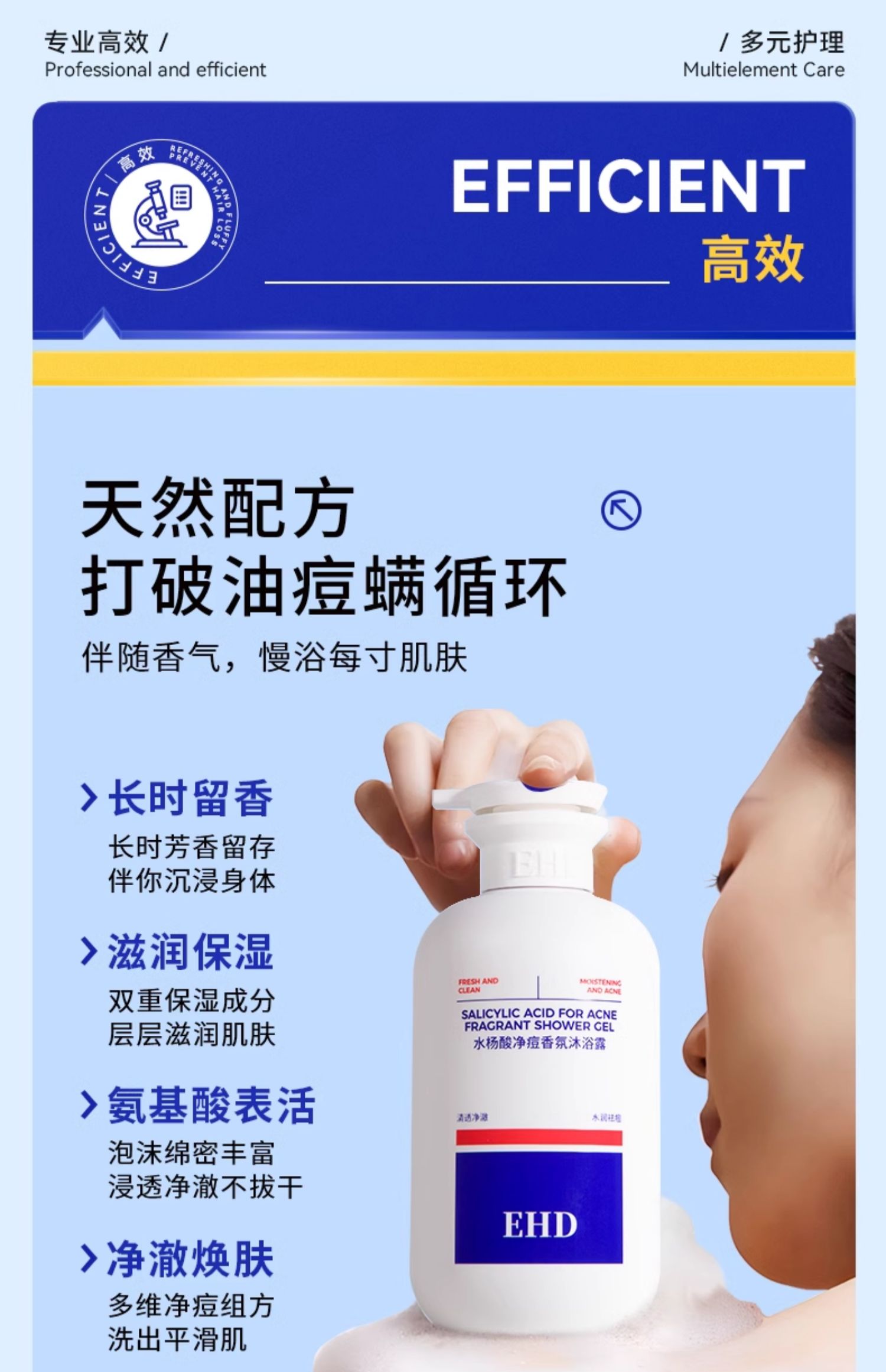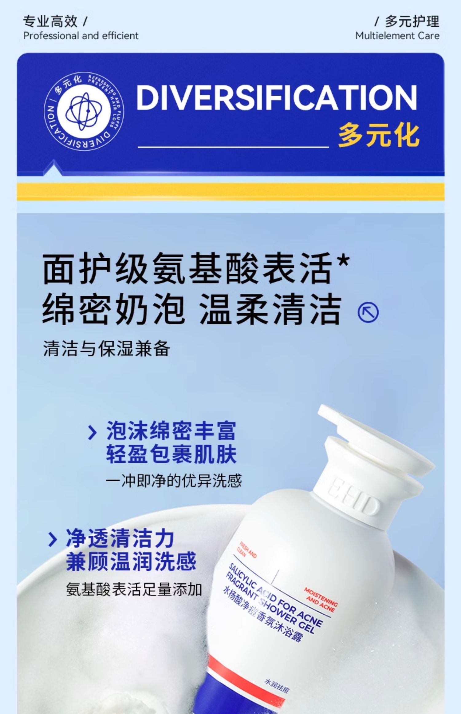 热卖!越洗越嫩!【超值赠品】EHD 水杨酸净痘香氛沐浴露/舒爽美白净澈沐浴露 滋润保湿 美白嫩肤 500ml/瓶