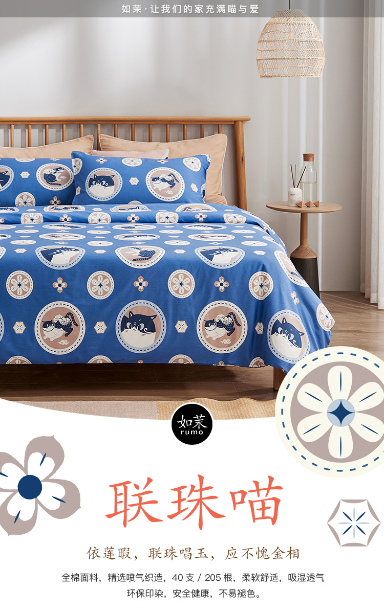 【幸运土猫】联珠喵如茉全棉纯棉猫三四件套件柔软被套原创设计