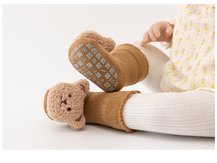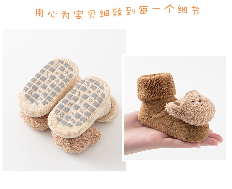 【2双装!卡通春秋公仔袜】新生婴儿袜子a类纯棉毛圈加绒加厚秋冬款宝宝中筒防滑地板袜