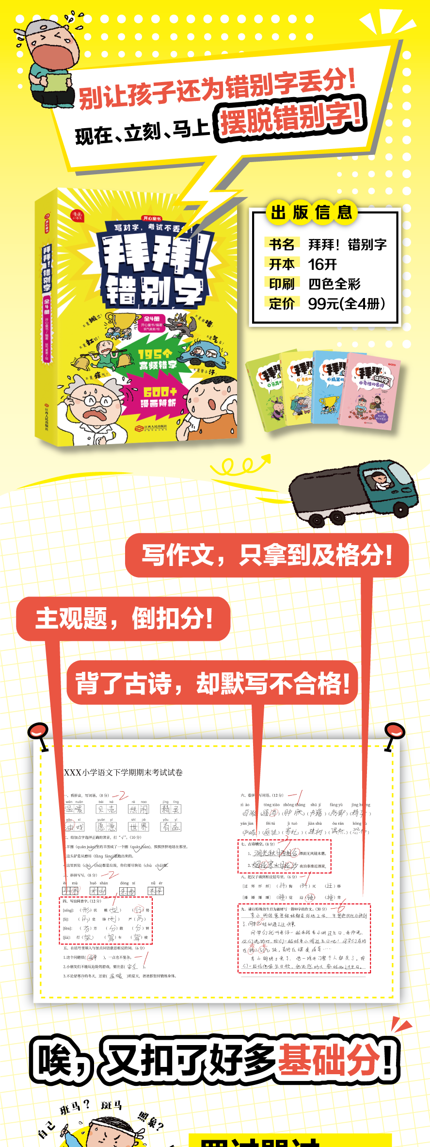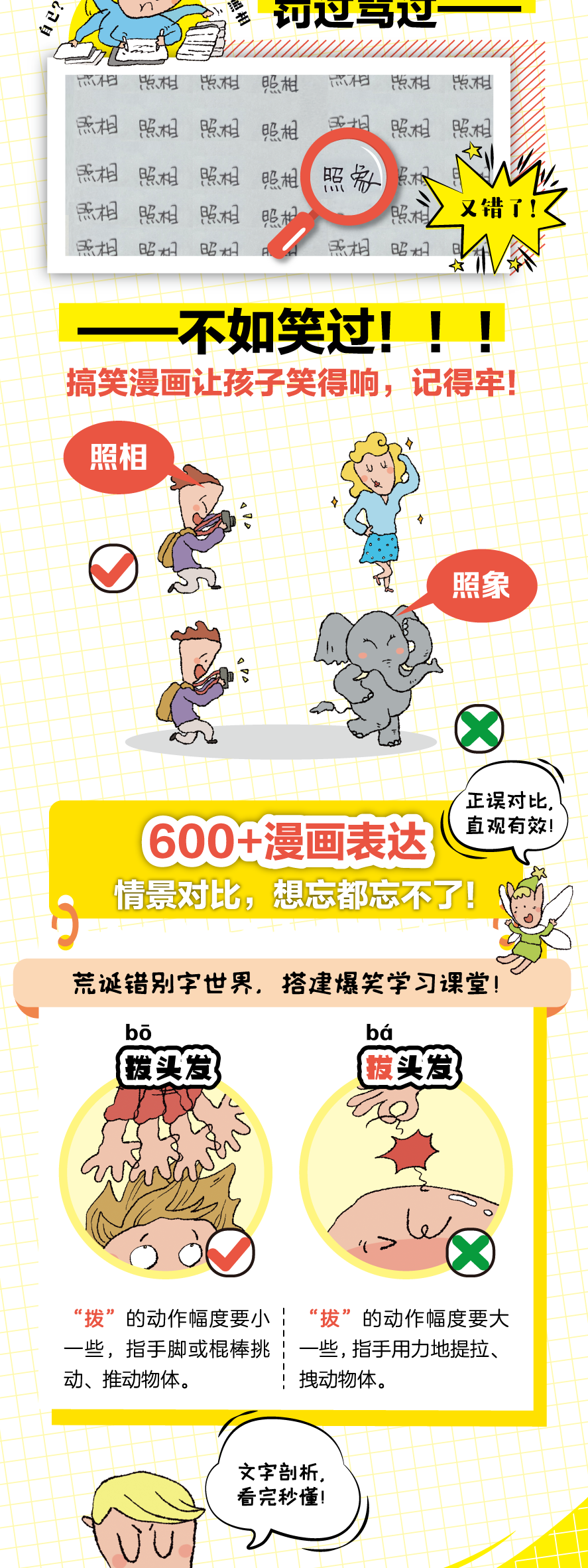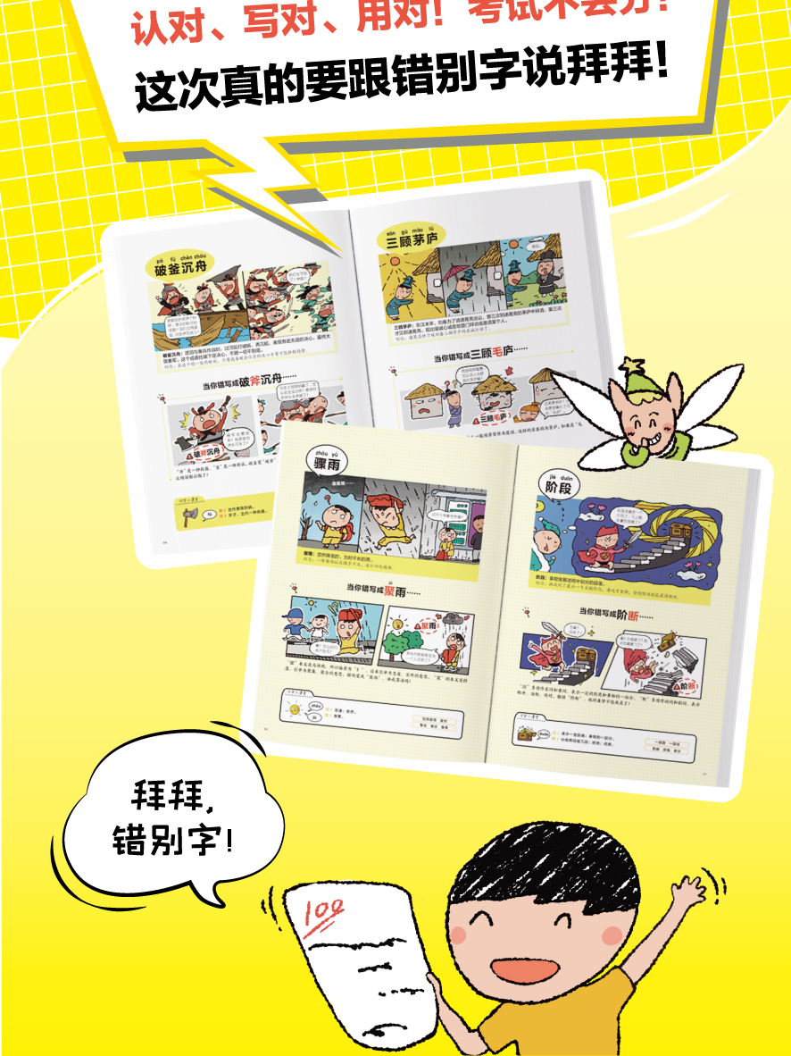 开心童书【拜拜!错别字】小学1-6年级 全彩漫画四色大开本 错别字纠正 共4册通用教材配套