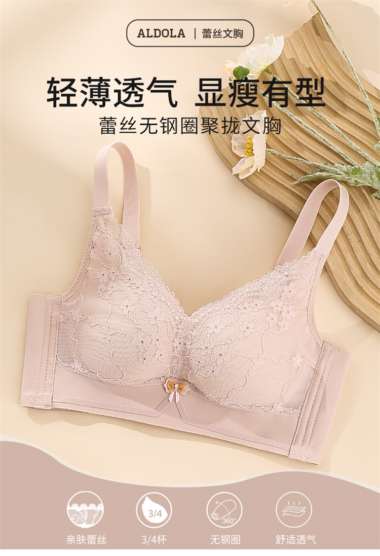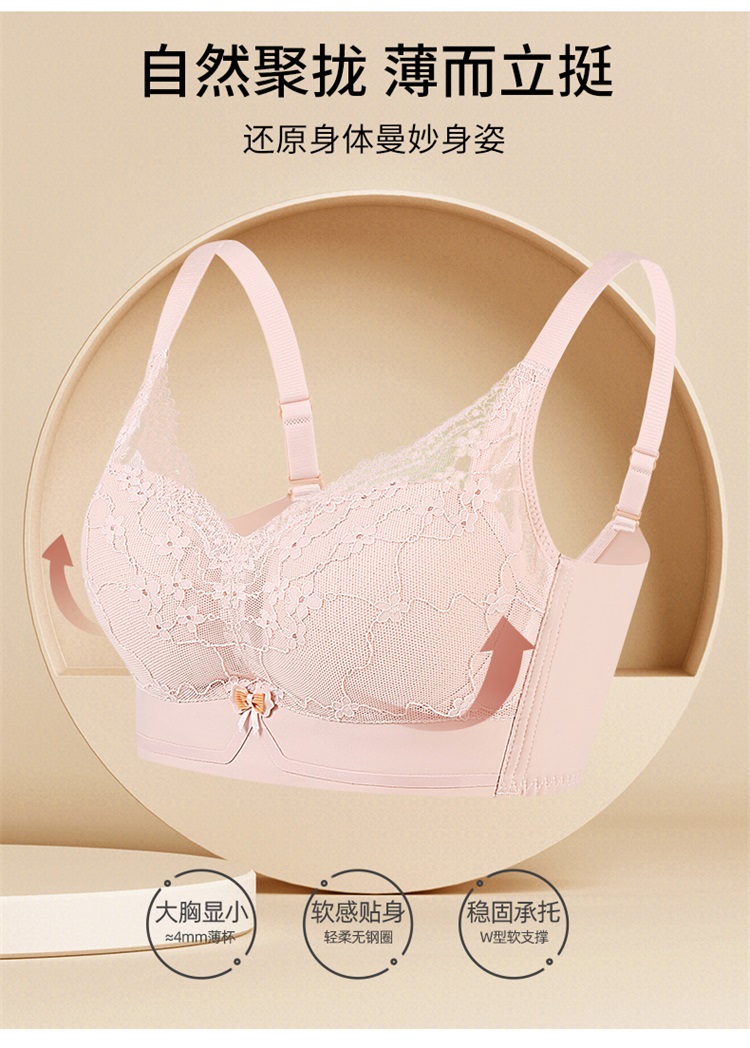 雅黛俪内衣女大胸显小显瘦无钢圈收副乳防下垂蕾丝美背