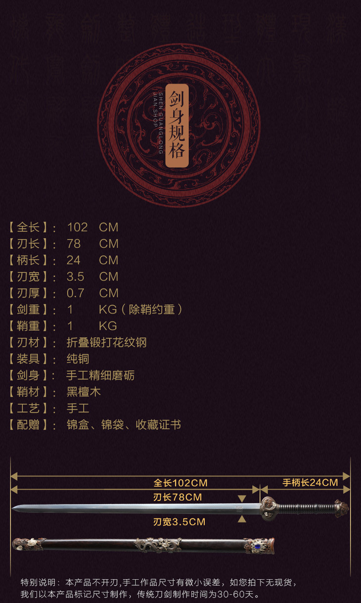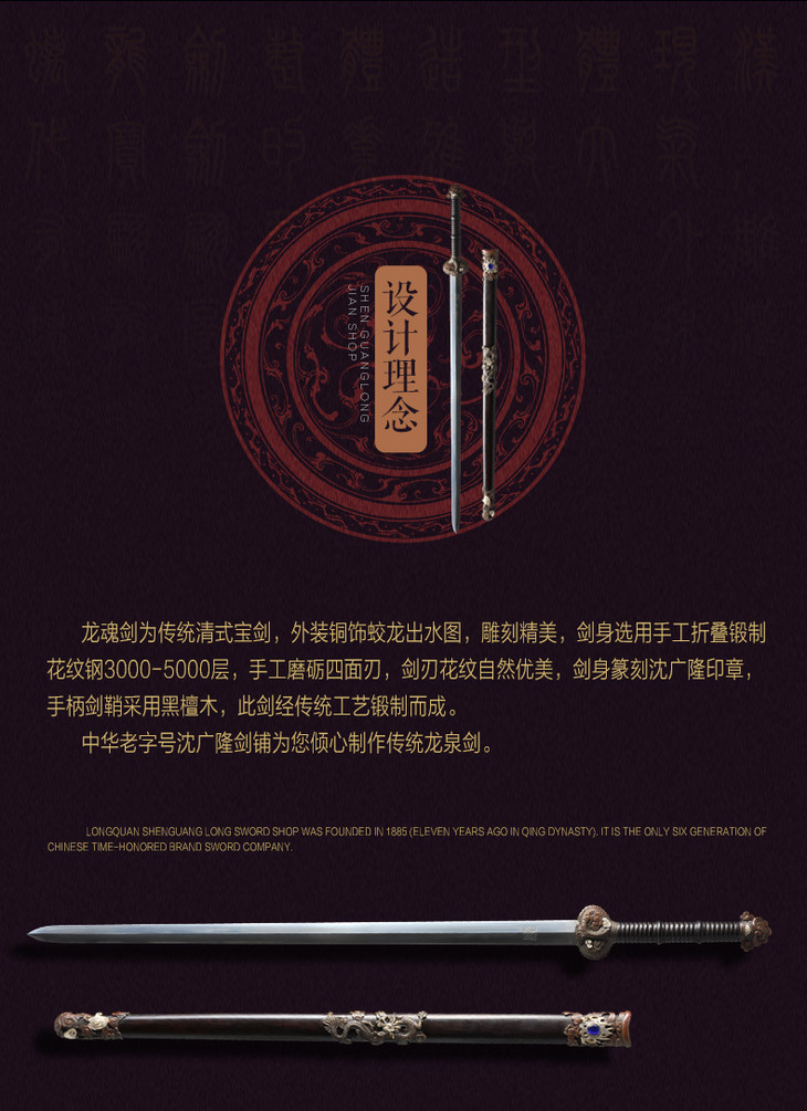 龙魂剑 龙泉花纹钢剑 龙泉沈广隆宝剑 仿古剑传统剑收藏剑 工艺品 未开刃