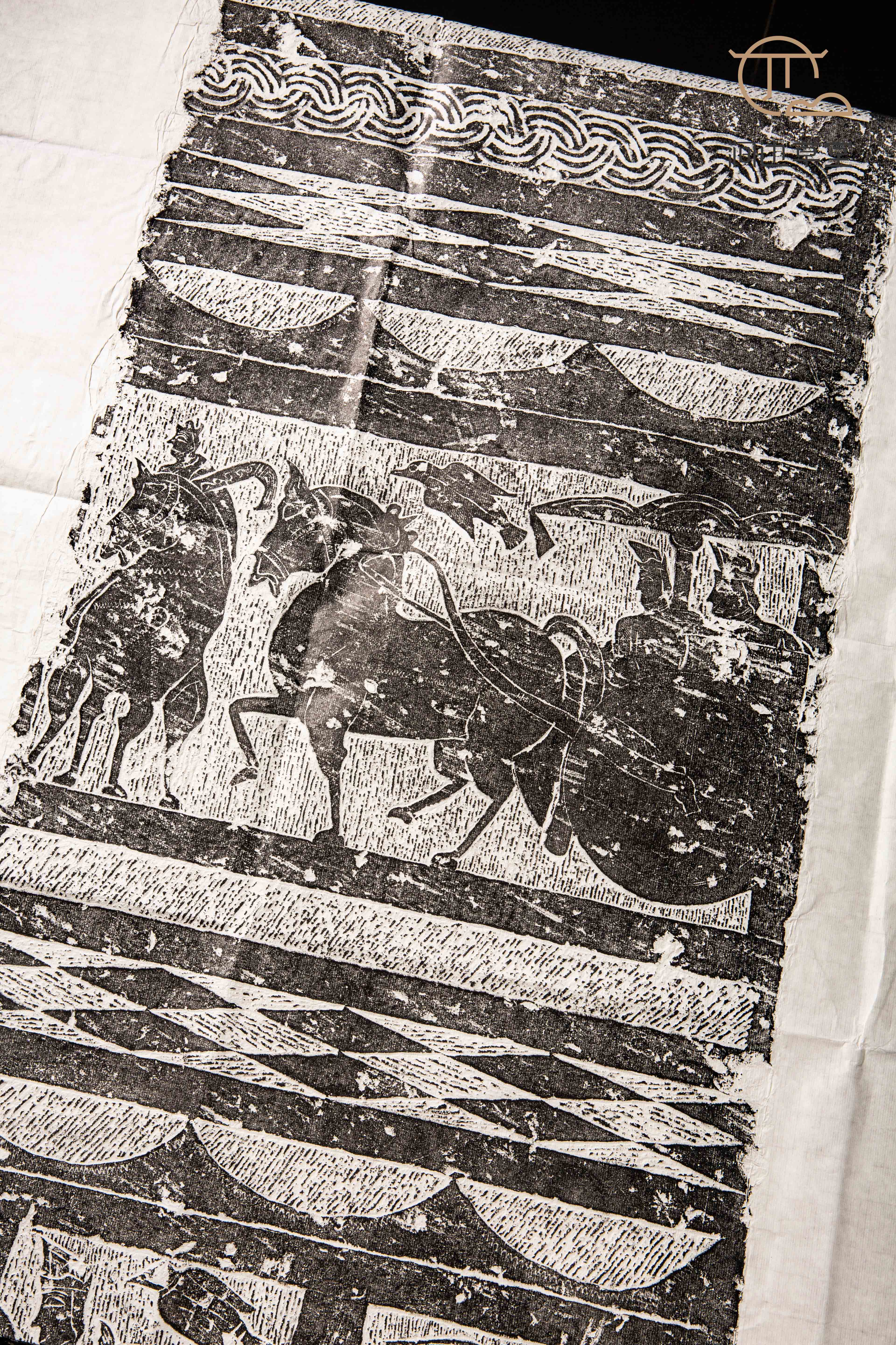 汉代季子挂剑画像石拓片,90年代老拓,原石原拓,拓工精细,题材稀有,是收藏和学习的佳品。