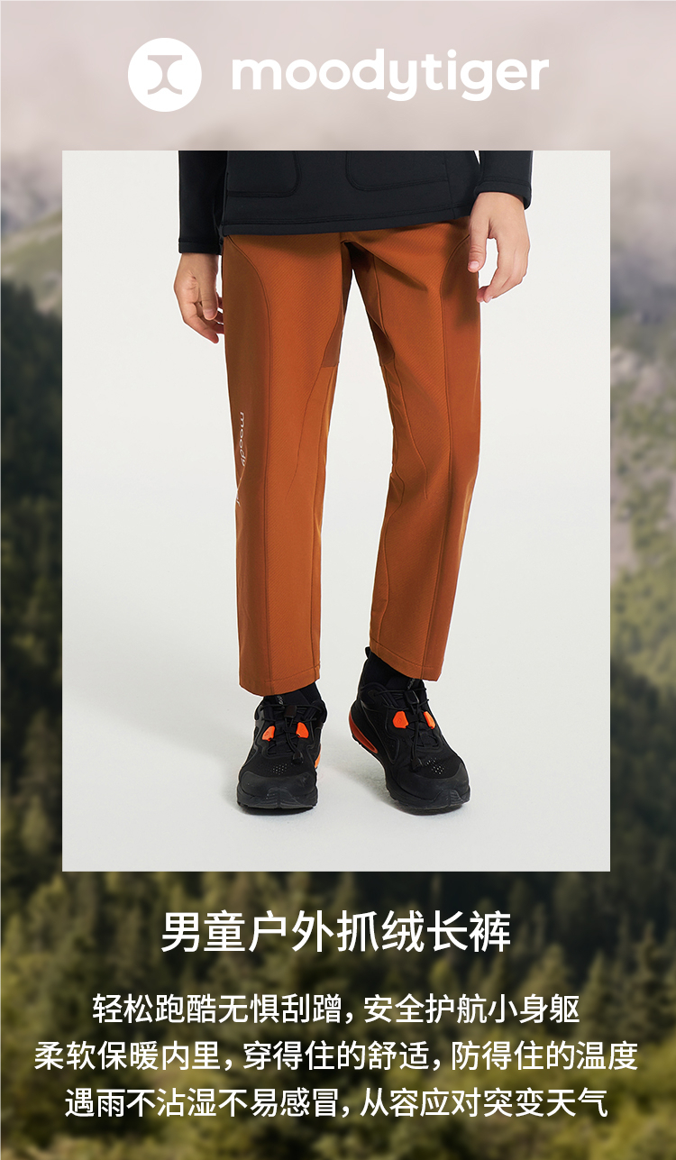 【春上新】8楼moodytiger男童长裤24秋冬款加绒保暖防风拒水梭织耐磨儿童运动裤 吊牌价:598