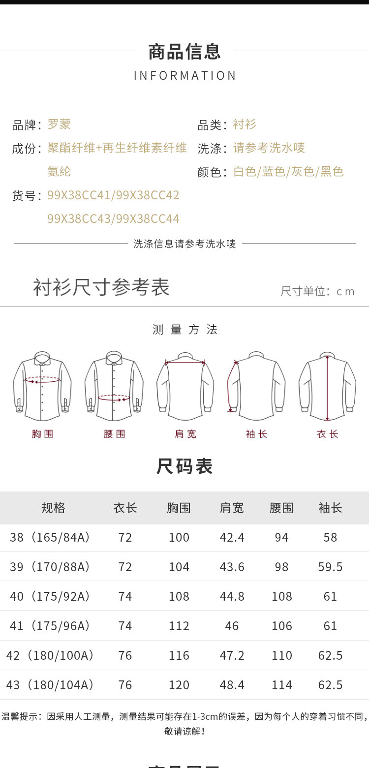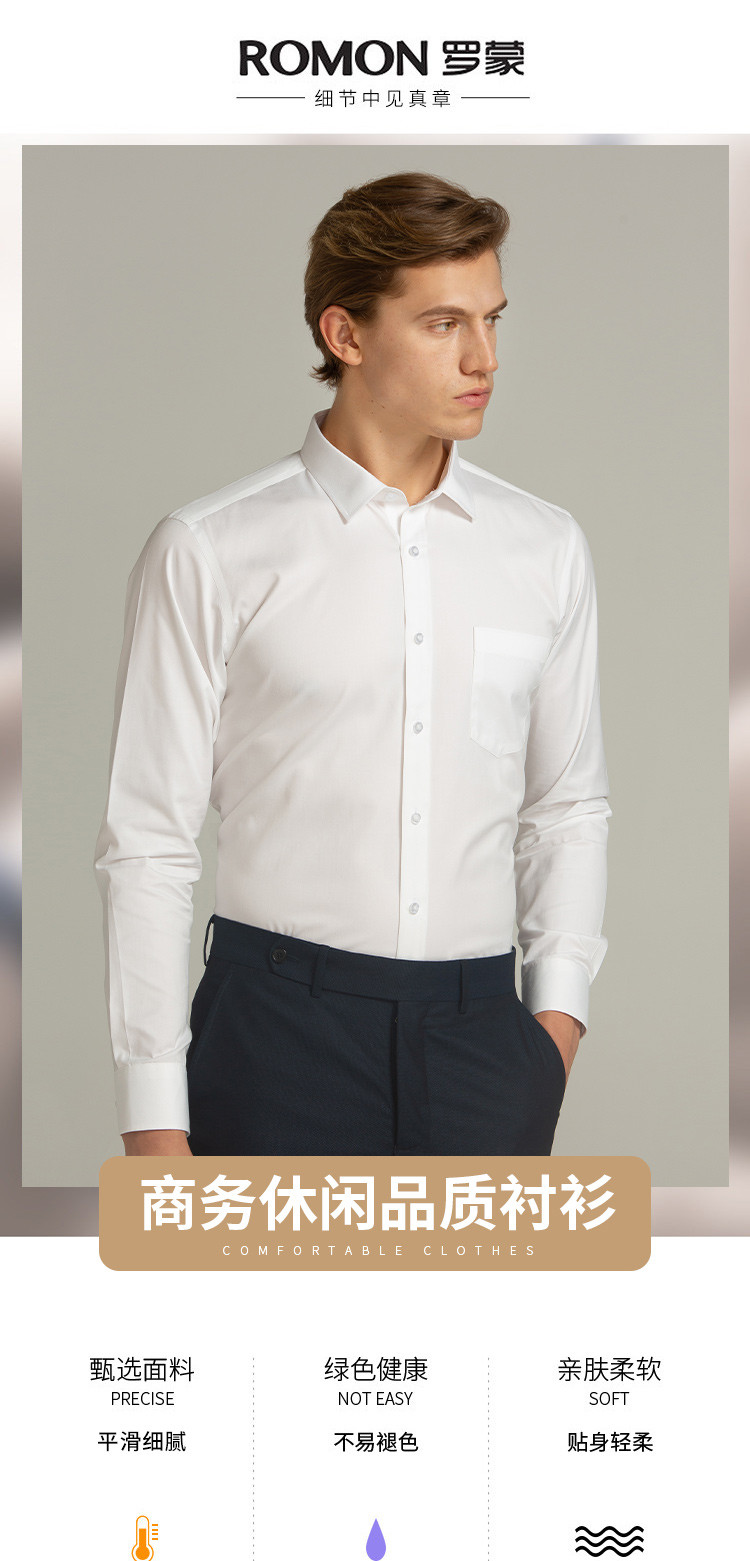 【经典百搭】罗蒙衬衫男长袖正装商务男士通勤百搭竹纤维衬衣男