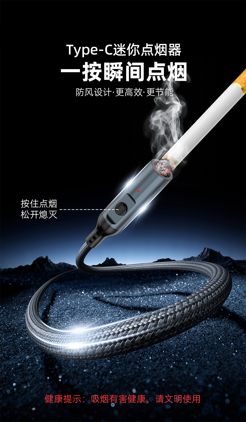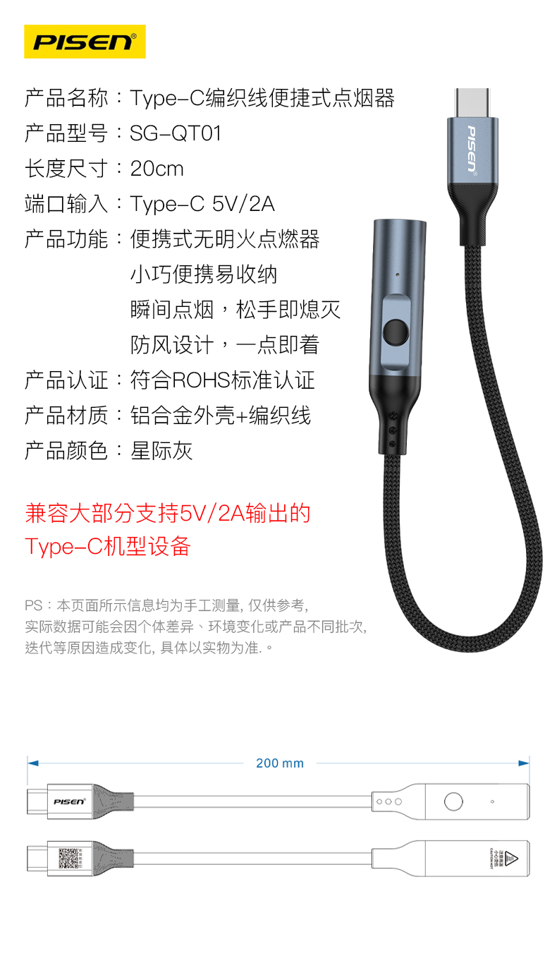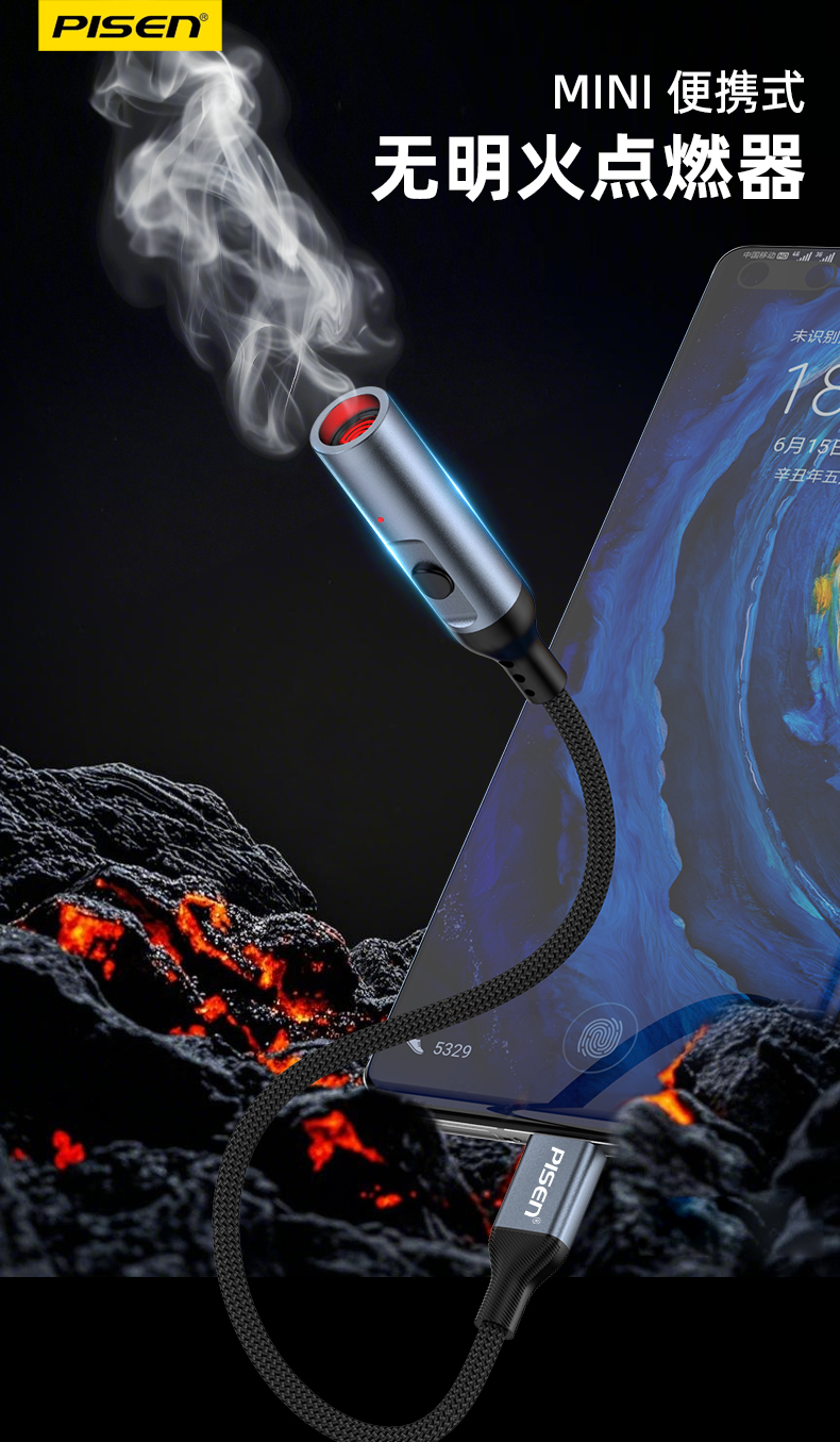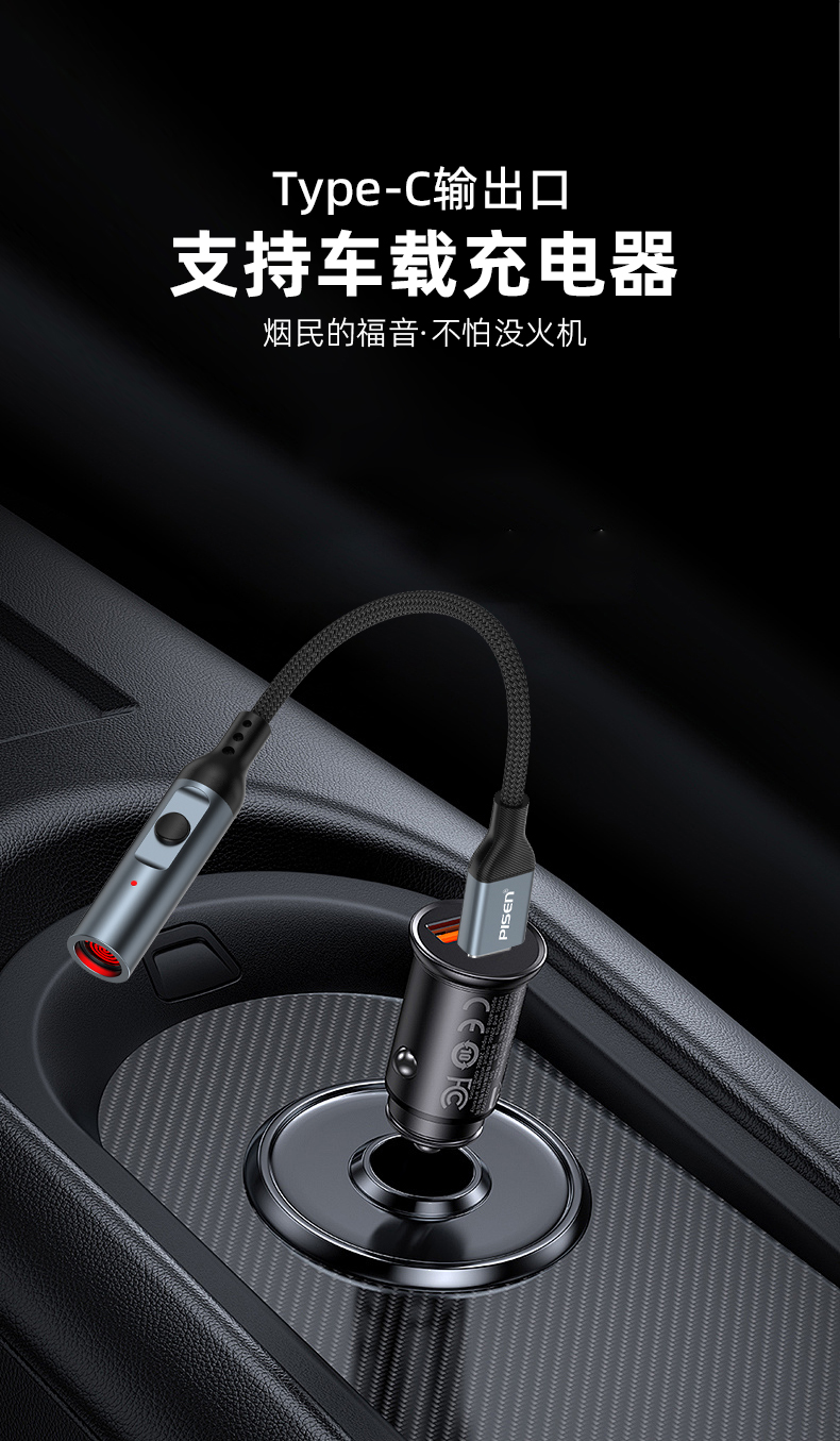 品胜 Type-C编织线便捷式点烟器0.2m 防风/打火机/点烟安全 即插即用