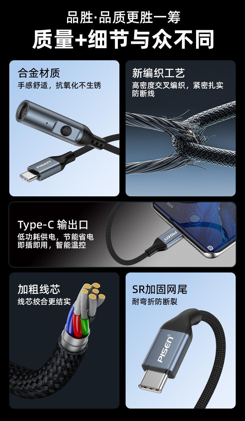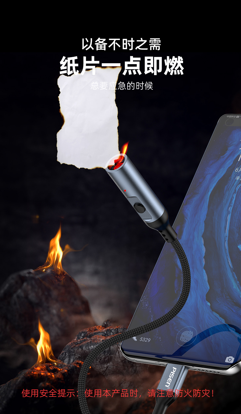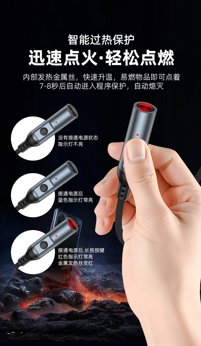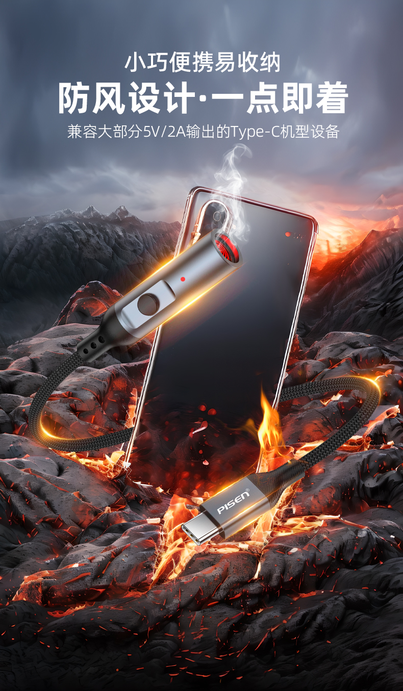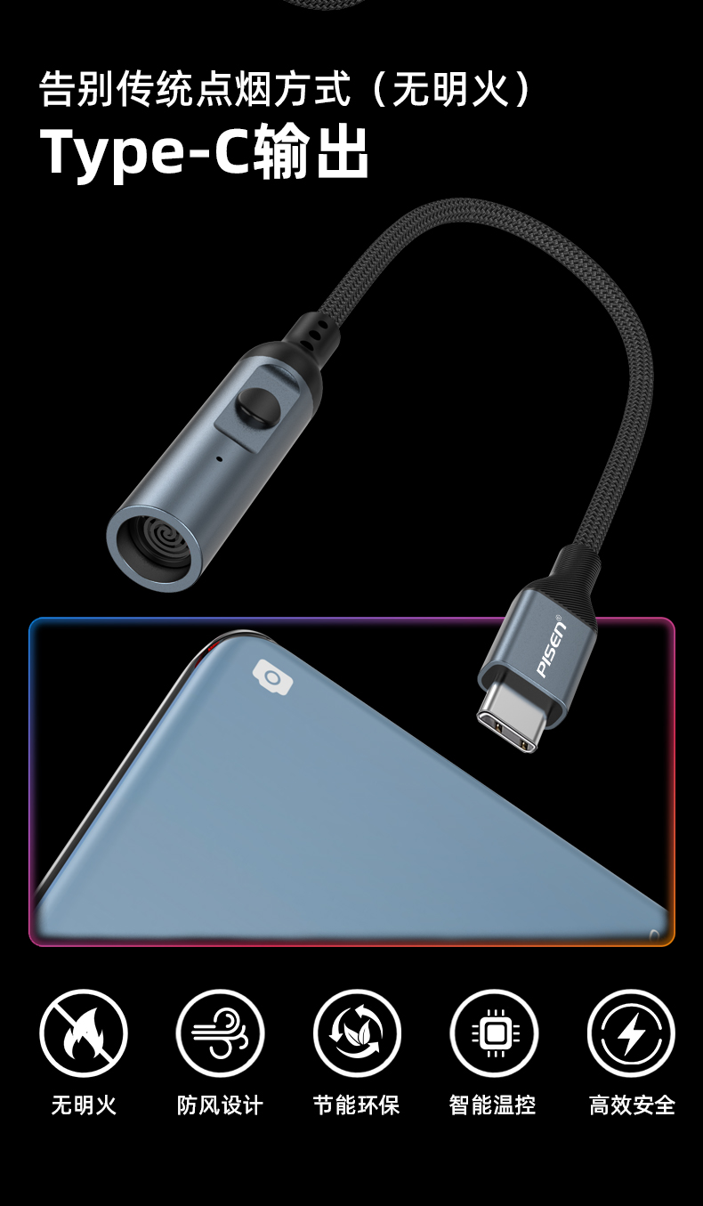 品胜 Type-C编织线便捷式点烟器0.2m 防风/打火机/点烟安全 即插即用