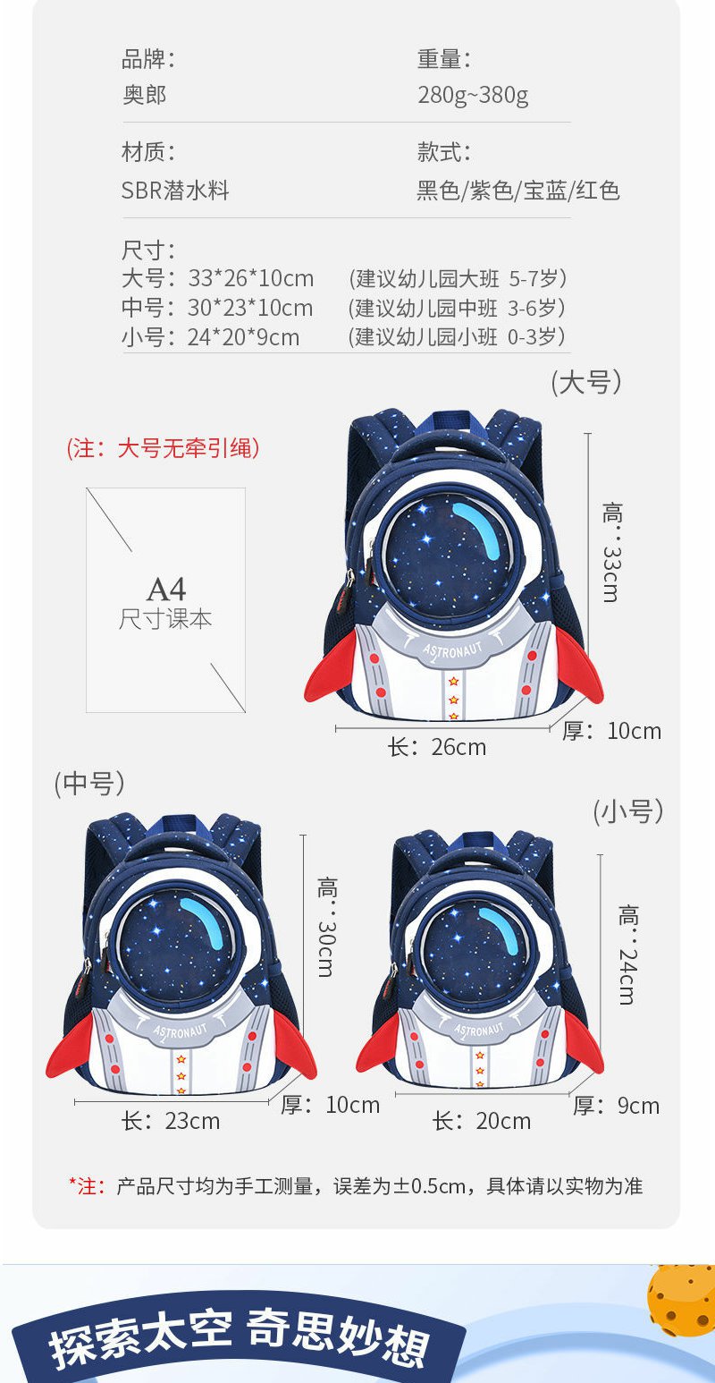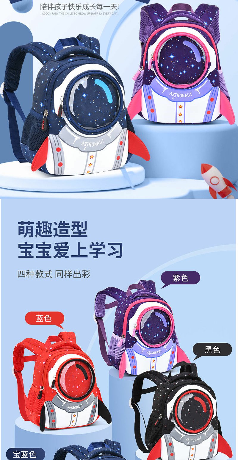 新款宇航员儿童书包男女小学生幼儿大中小班学前班女可爱防走失包