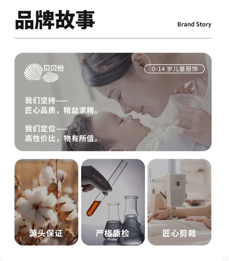 贝贝怡专注0-6岁婴幼儿服饰,坚持安全、柔软、舒适的产品理念,为千万中国家庭提供超高品质、安全可靠的婴幼儿服饰产品,妈妈放心,宝宝开心!