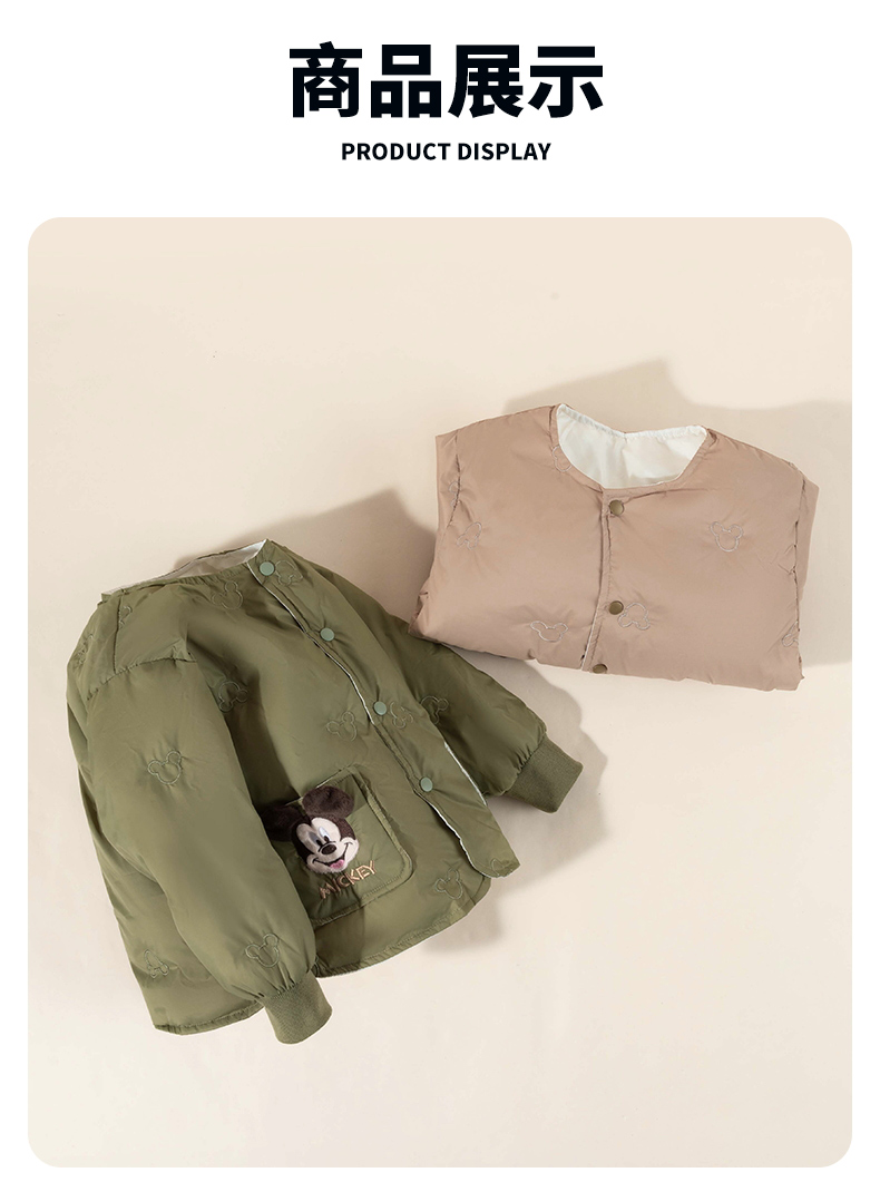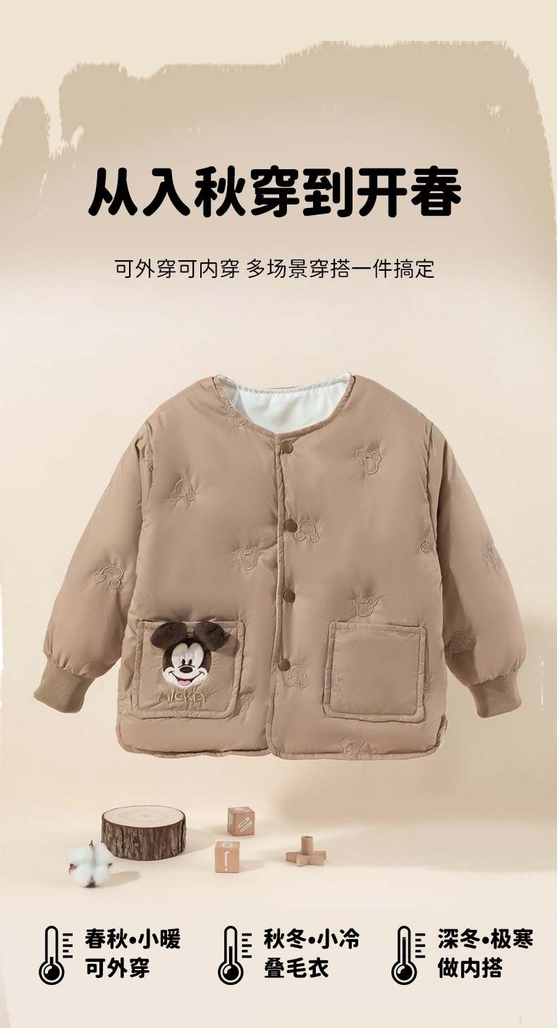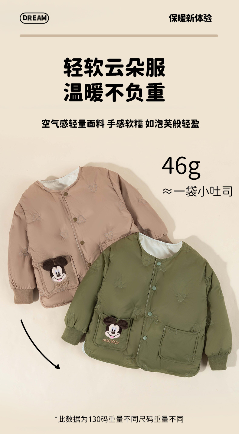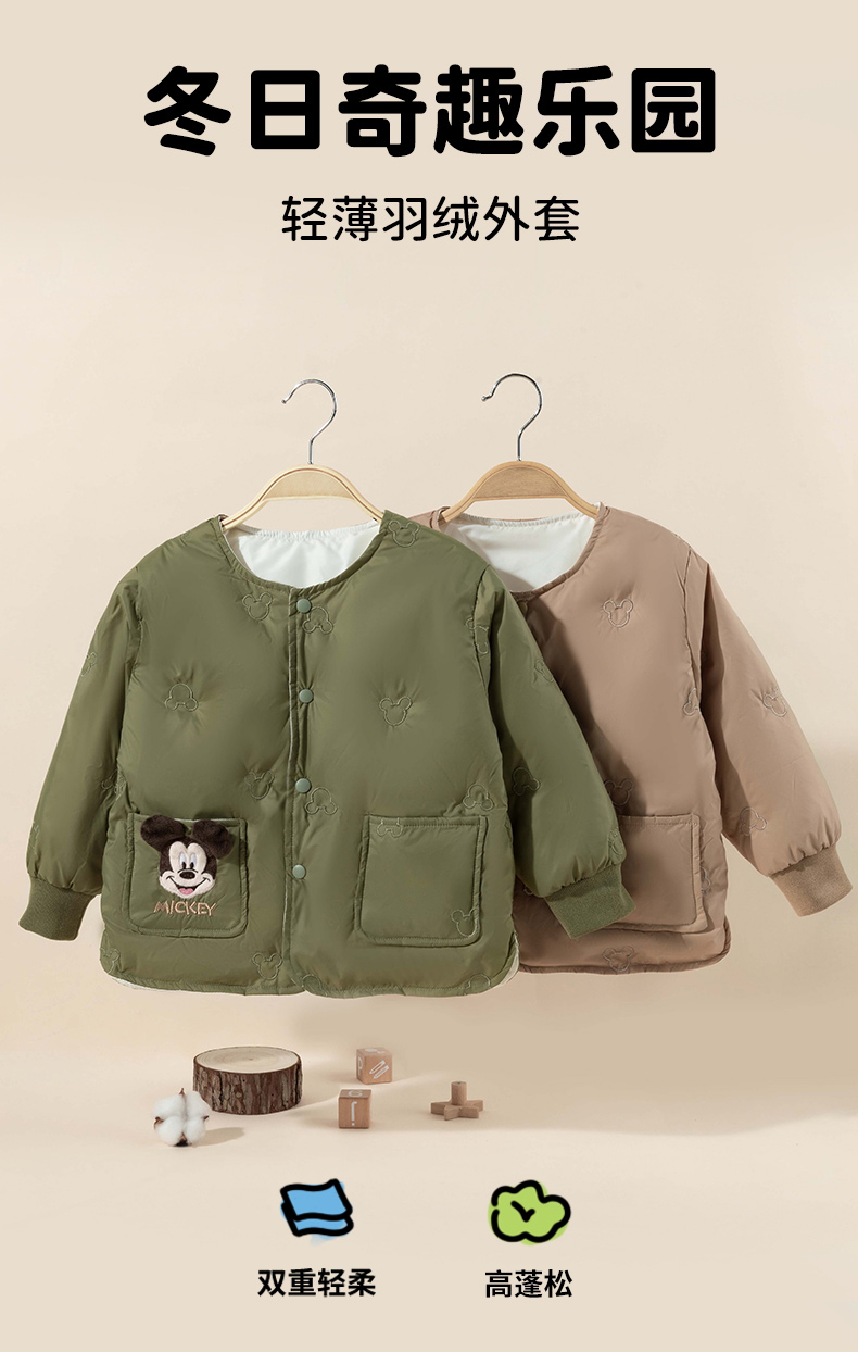 迪士尼【校服神器】24秋冬新款男童轻薄羽绒服米奇刺绣可内搭外穿外套ZD4DS028