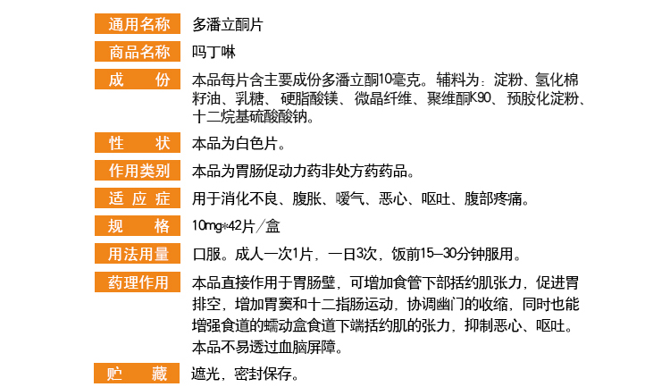 吗丁啉多潘立酮片42片腹胀胃痛腹痛消化不良提升胃力