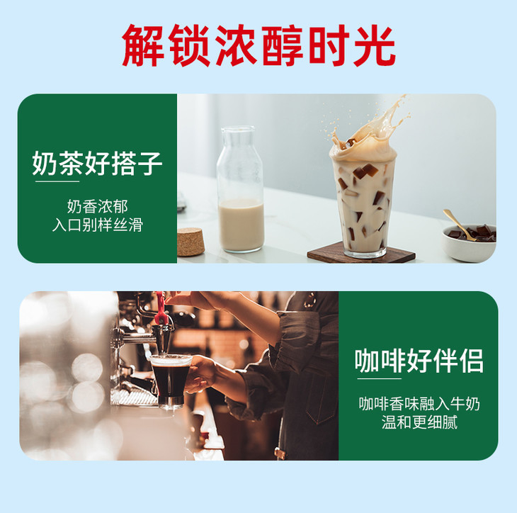 我这不爱喝奶的,都觉得很棒哎!直接喝有淡淡的奶甜,一点不寡淡;加进黑咖里,能温柔中和苦味,还不稀释咖啡的醇香;煮奶茶更不用额外加糖,单靠牛奶本身的清甜就够好喝了;打抗炎黄金奶,也是让姜黄和黑胡椒变得更老实,口感超棒!真心推荐给需要补奶又挑口感的朋友,试过就知道有多香!