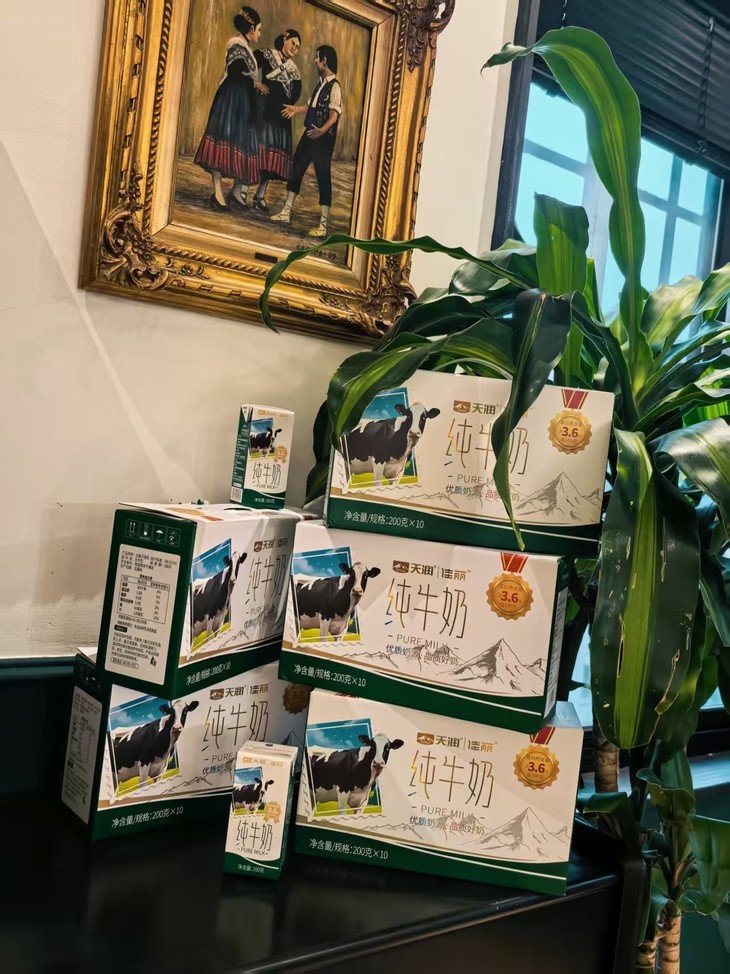 这份惊艳的口感,全靠新疆天山脚下的黄金牧场给足底气。天润是新疆头牌乳企,从天山南麓到北坡,26个标准化牧场像珍珠一样散落,用融化的天山雪水灌溉牧草、喂养奶牛,6.5万头优质血统奶牛全程天然草饲放养,不添任何化学添加剂。所以每一口都裹着原生态的纯牛乳香,丝滑到让人喝一次就记牢。