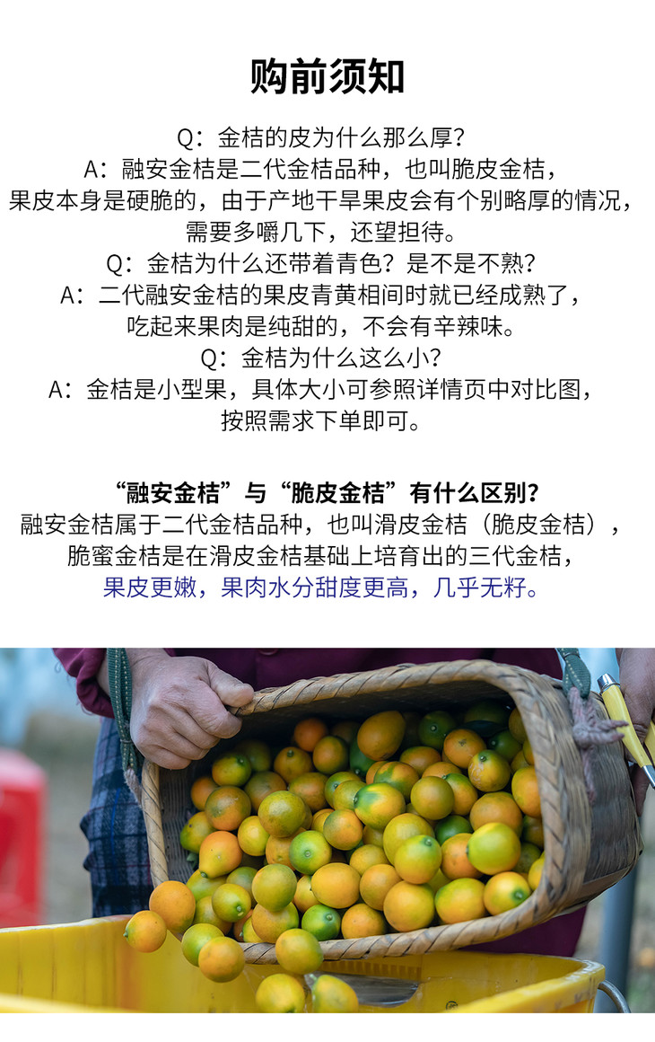 融安滑皮金桔丨今年气候原因,果皮略厚,纯甜无酸,果皮硬脆带桔香,个别会有籽,果肉细腻化渣,带皮吃无辛辣味⭐️顺丰/京东