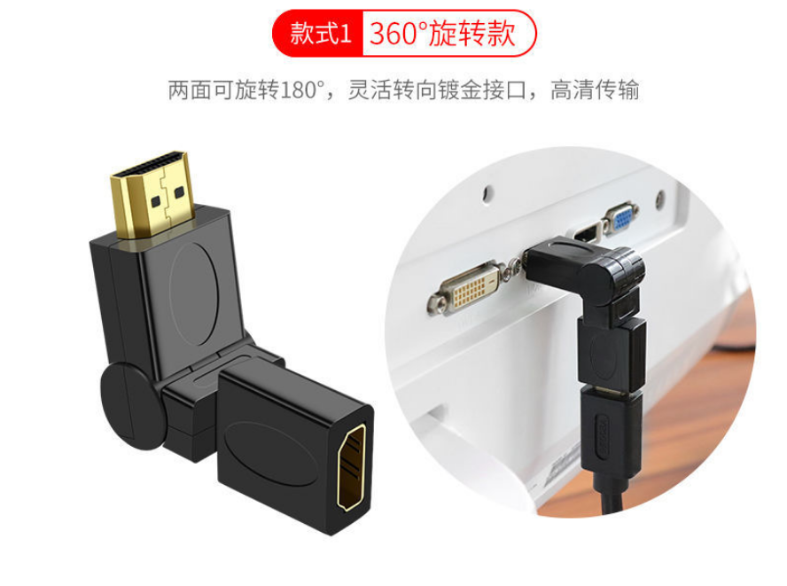 严选【HDMI公对母360°旋转】HDMI转接头线公对母直通加长线高清转接头1个