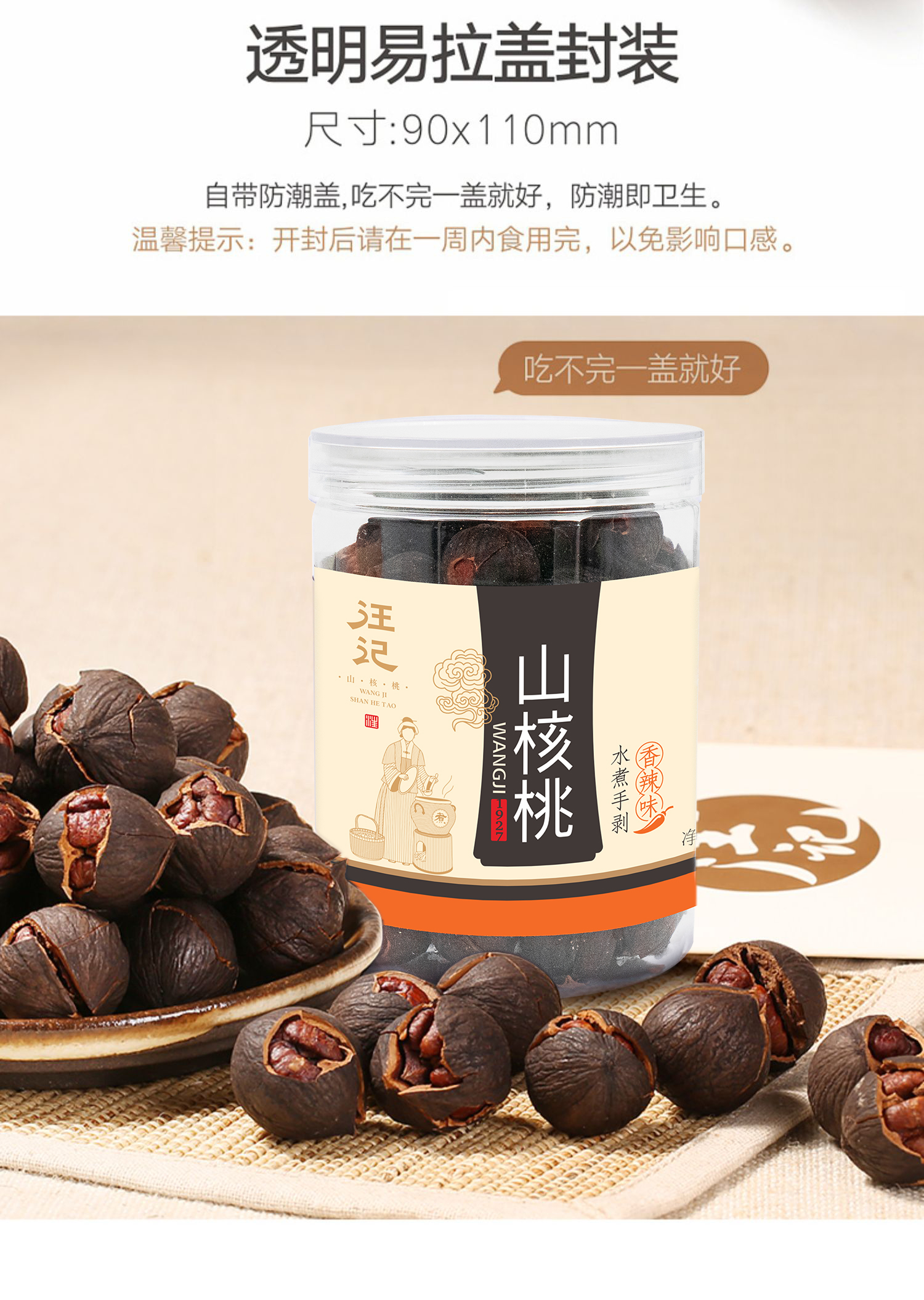 【水煮山核桃218g】汪记山核桃 水煮手剥黑籽山核桃