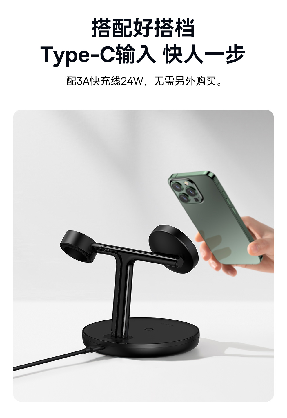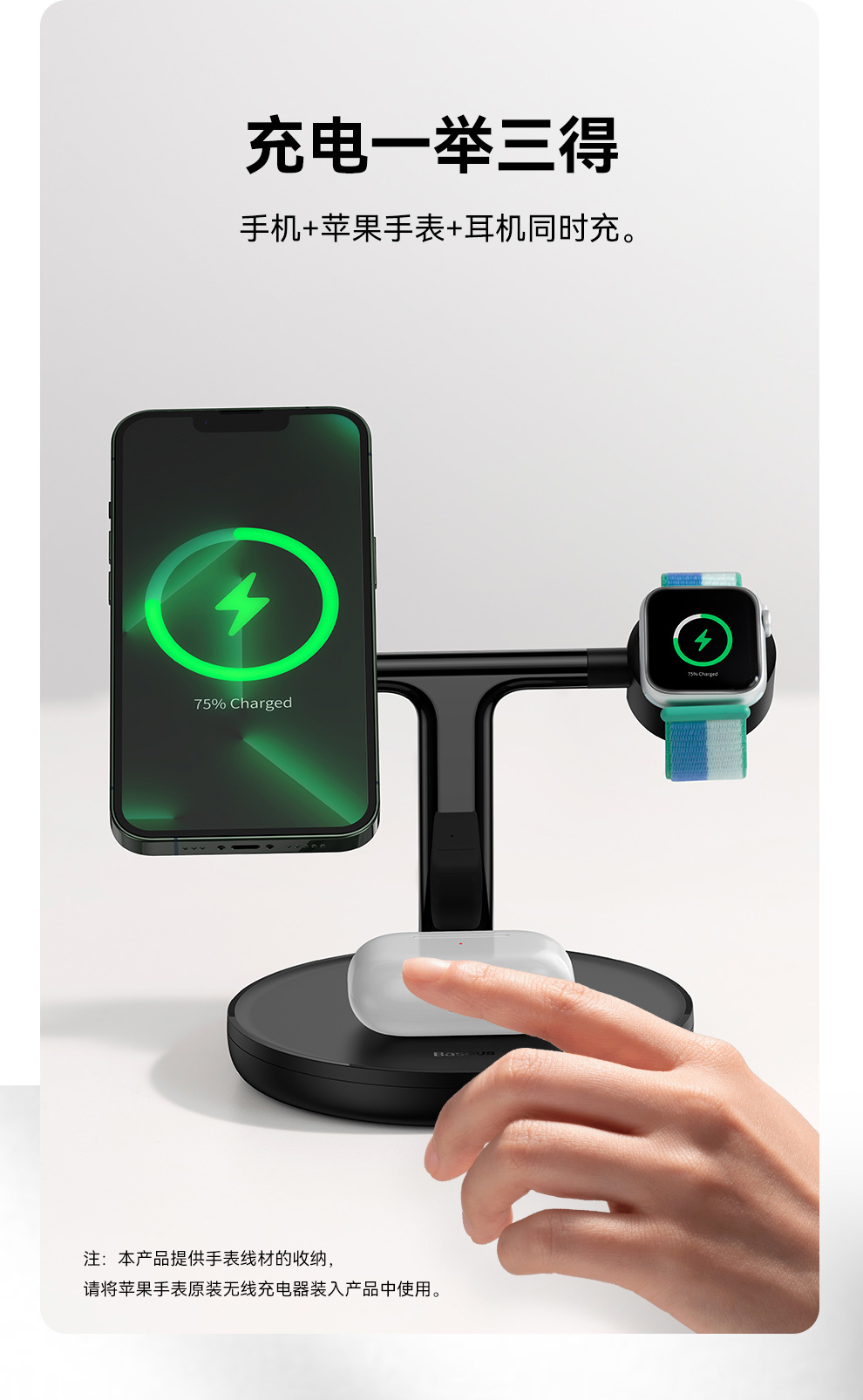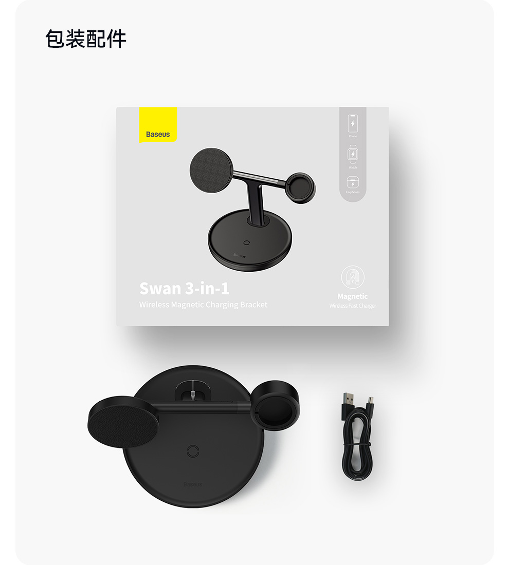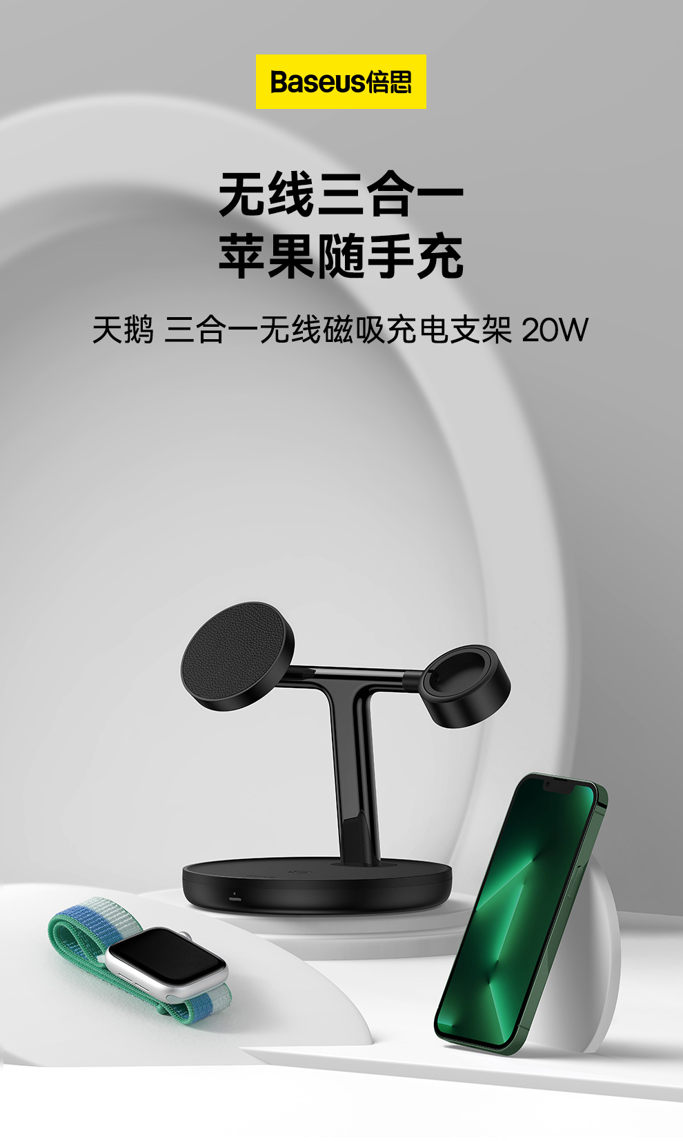倍思 天鹅 三合一无线磁吸充电支架 20W 黑色
