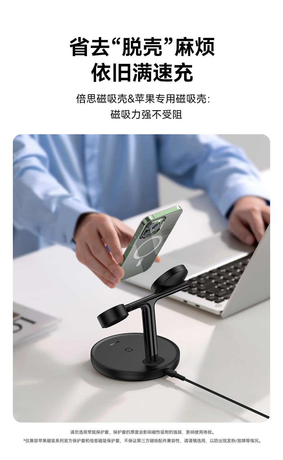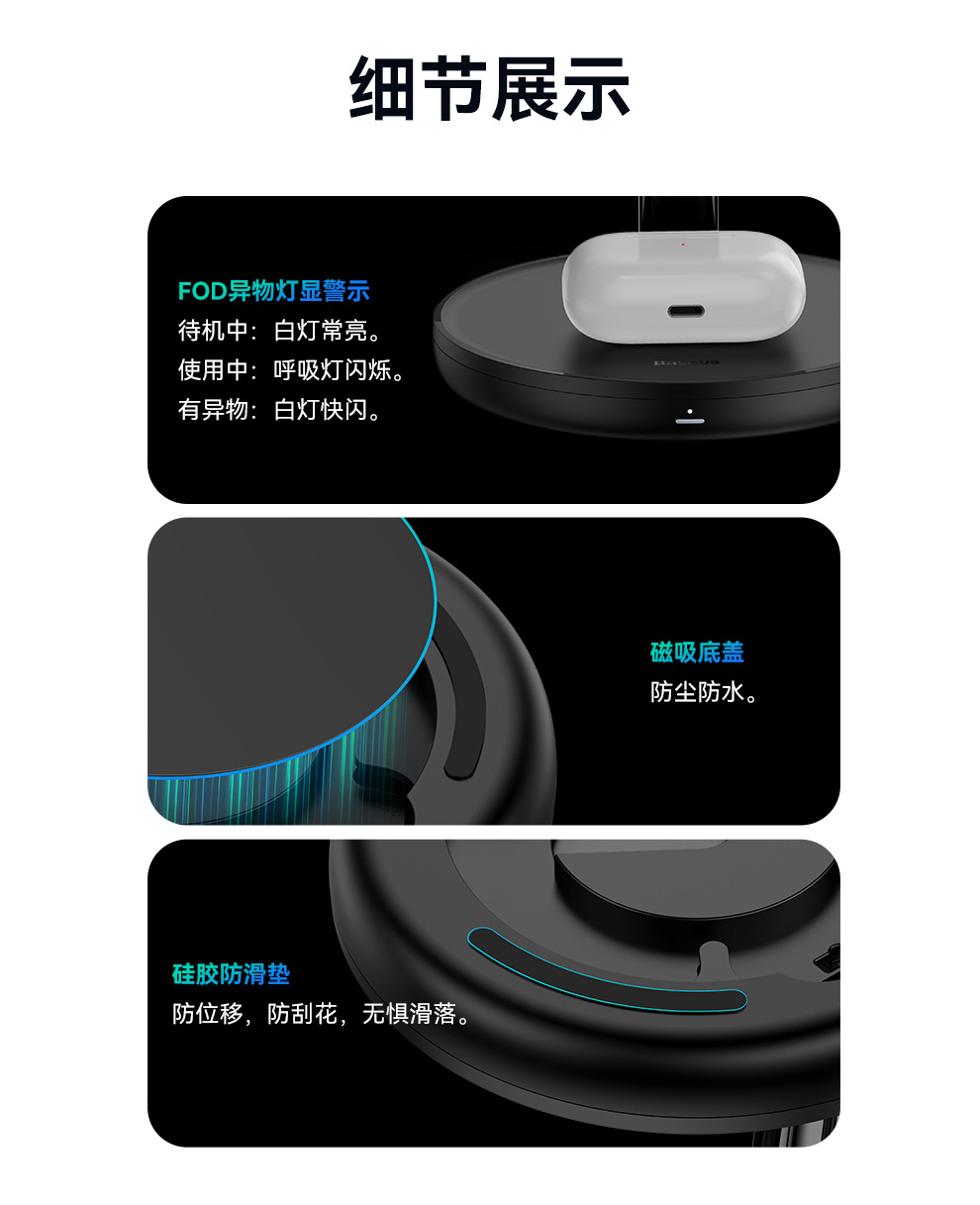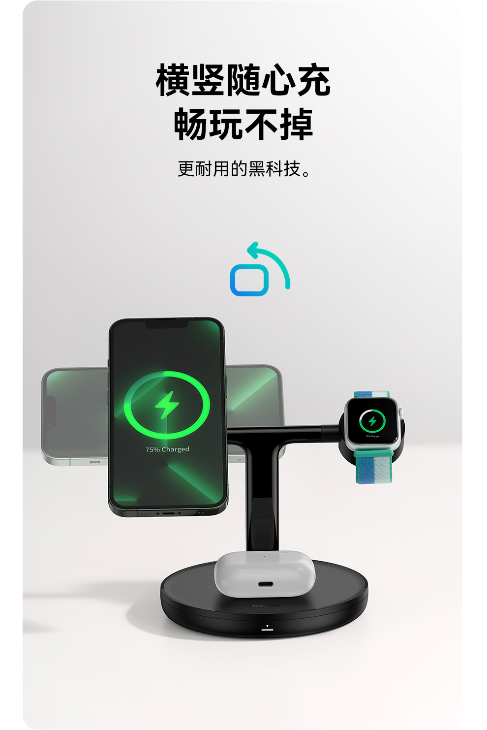 倍思 天鹅 三合一无线磁吸充电支架 20W 黑色