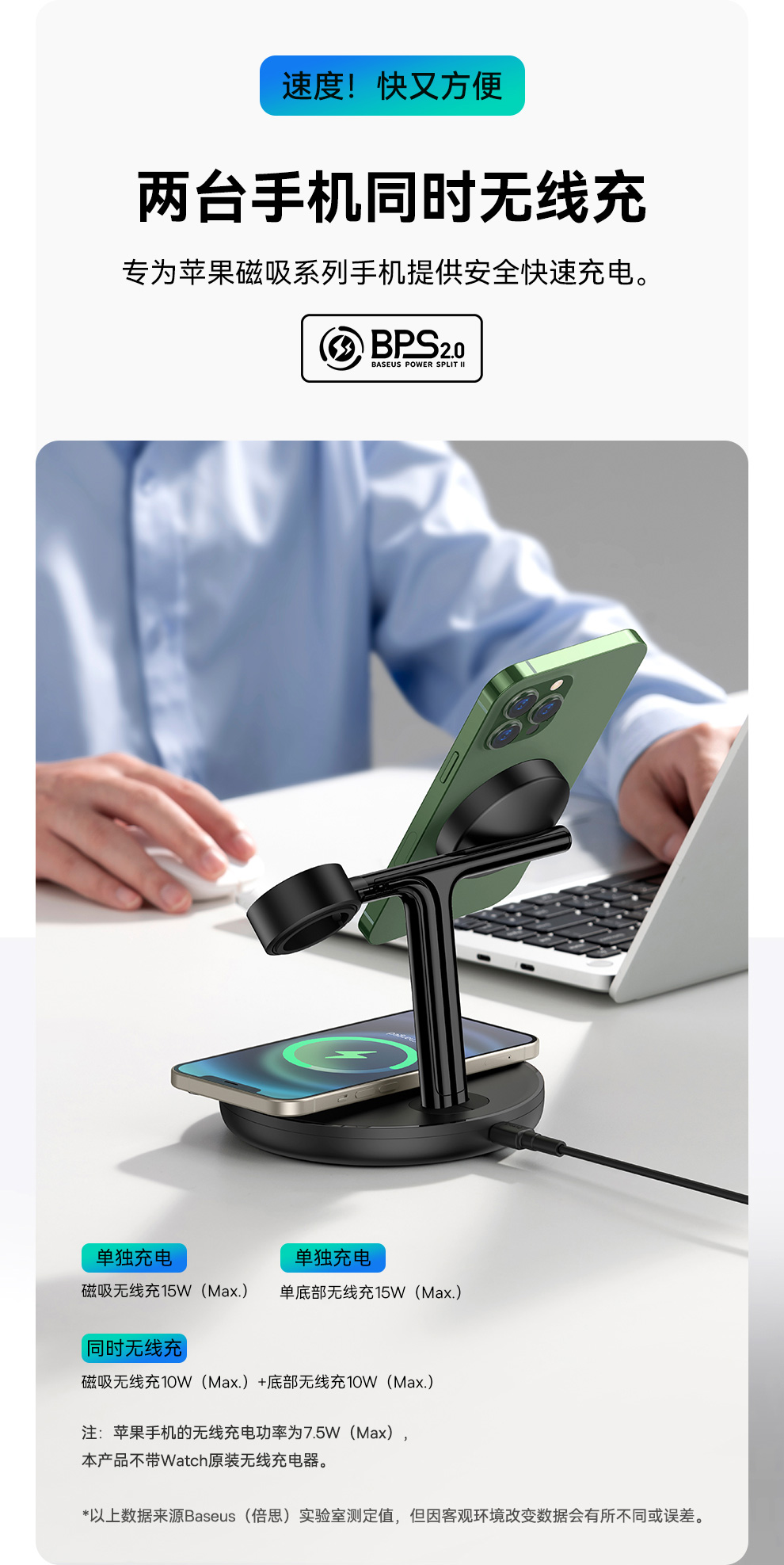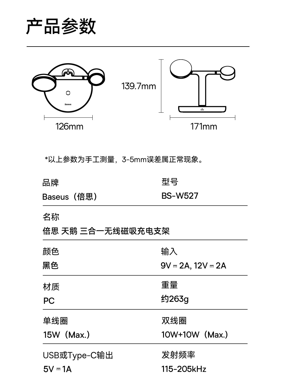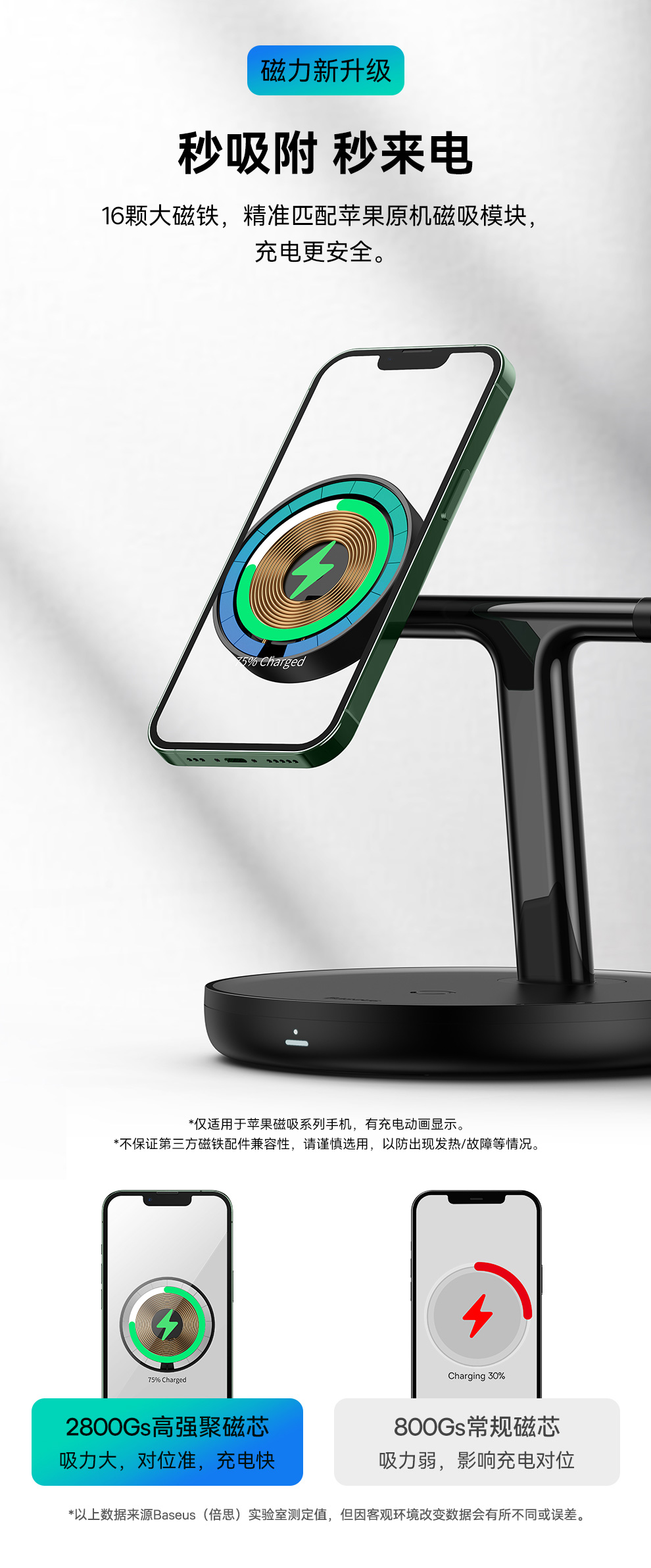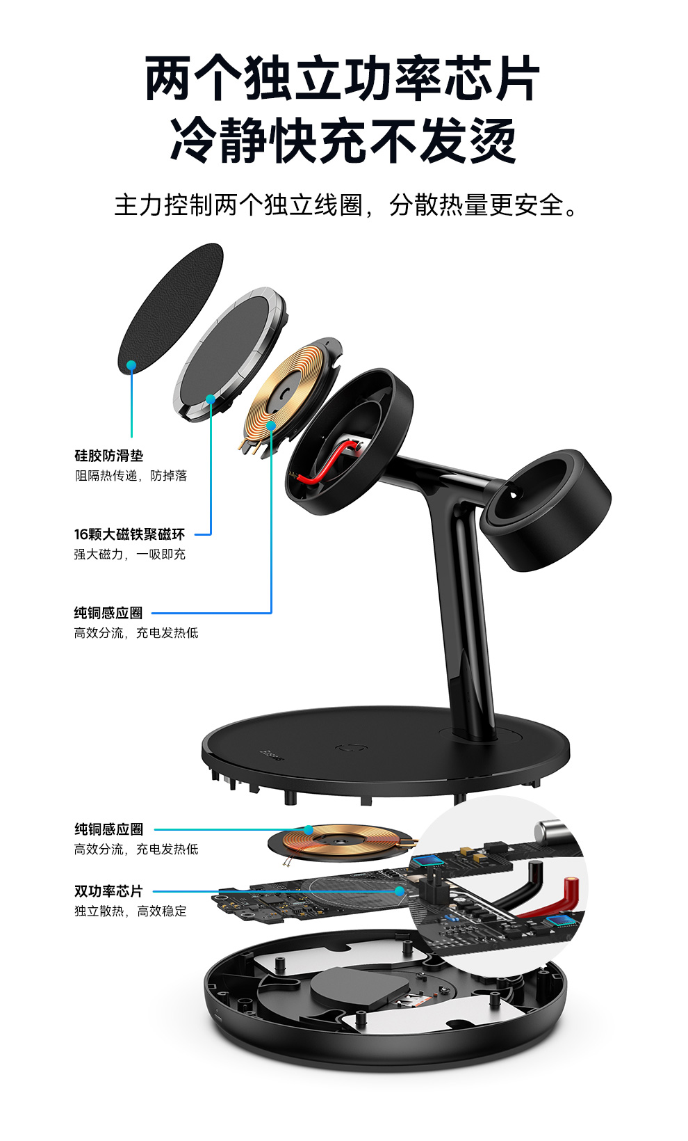 倍思 天鹅 三合一无线磁吸充电支架 20W 黑色