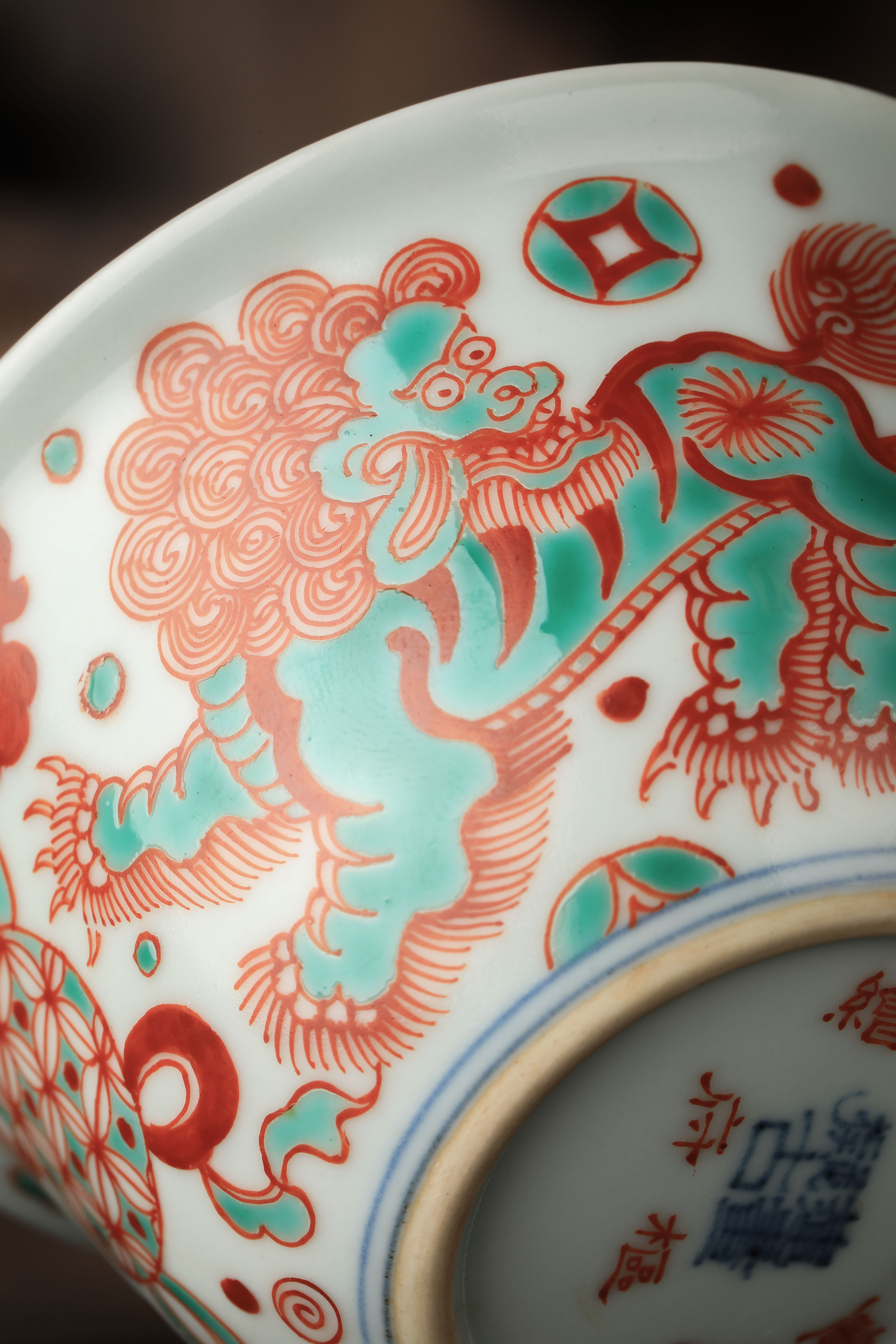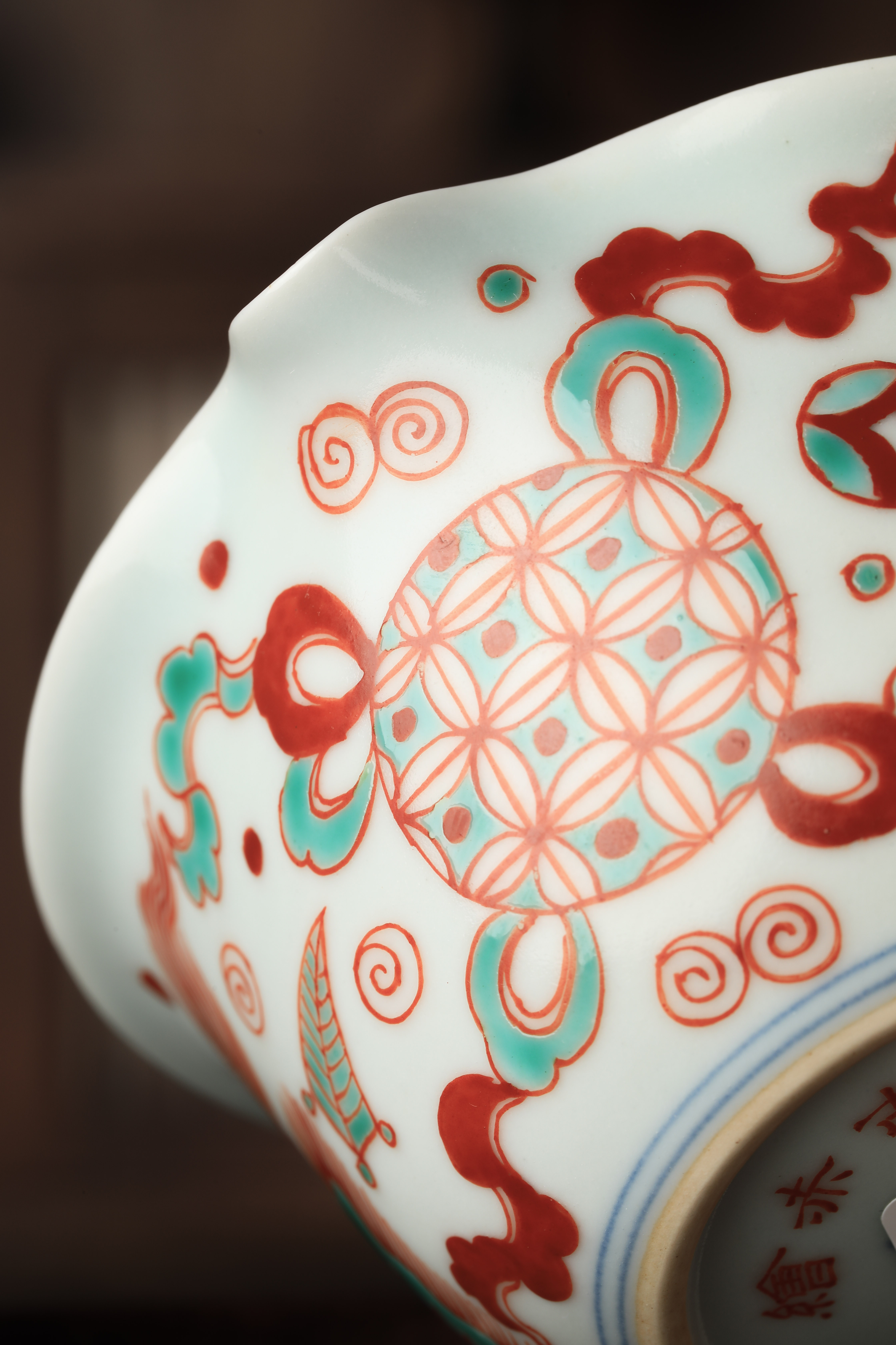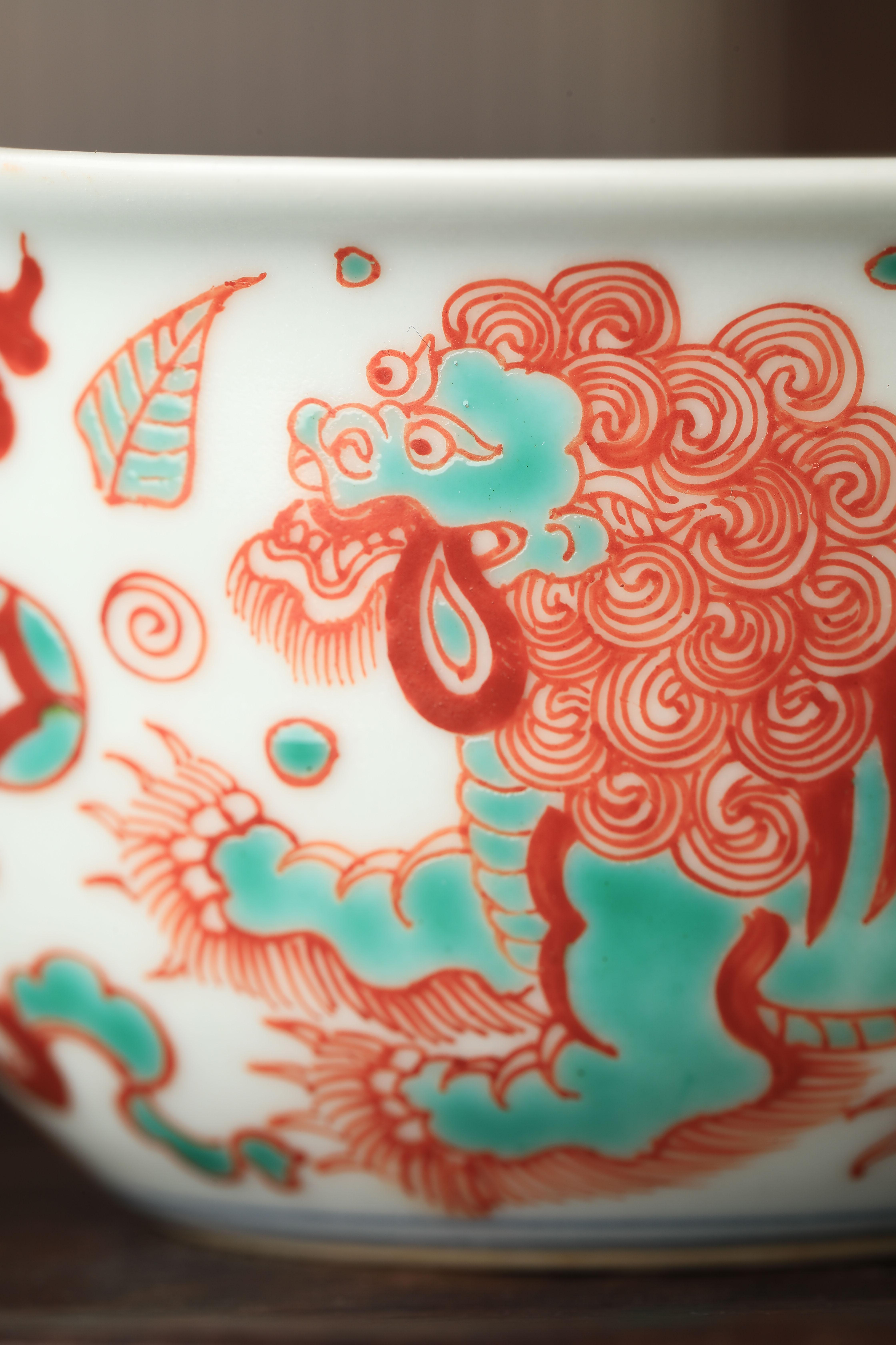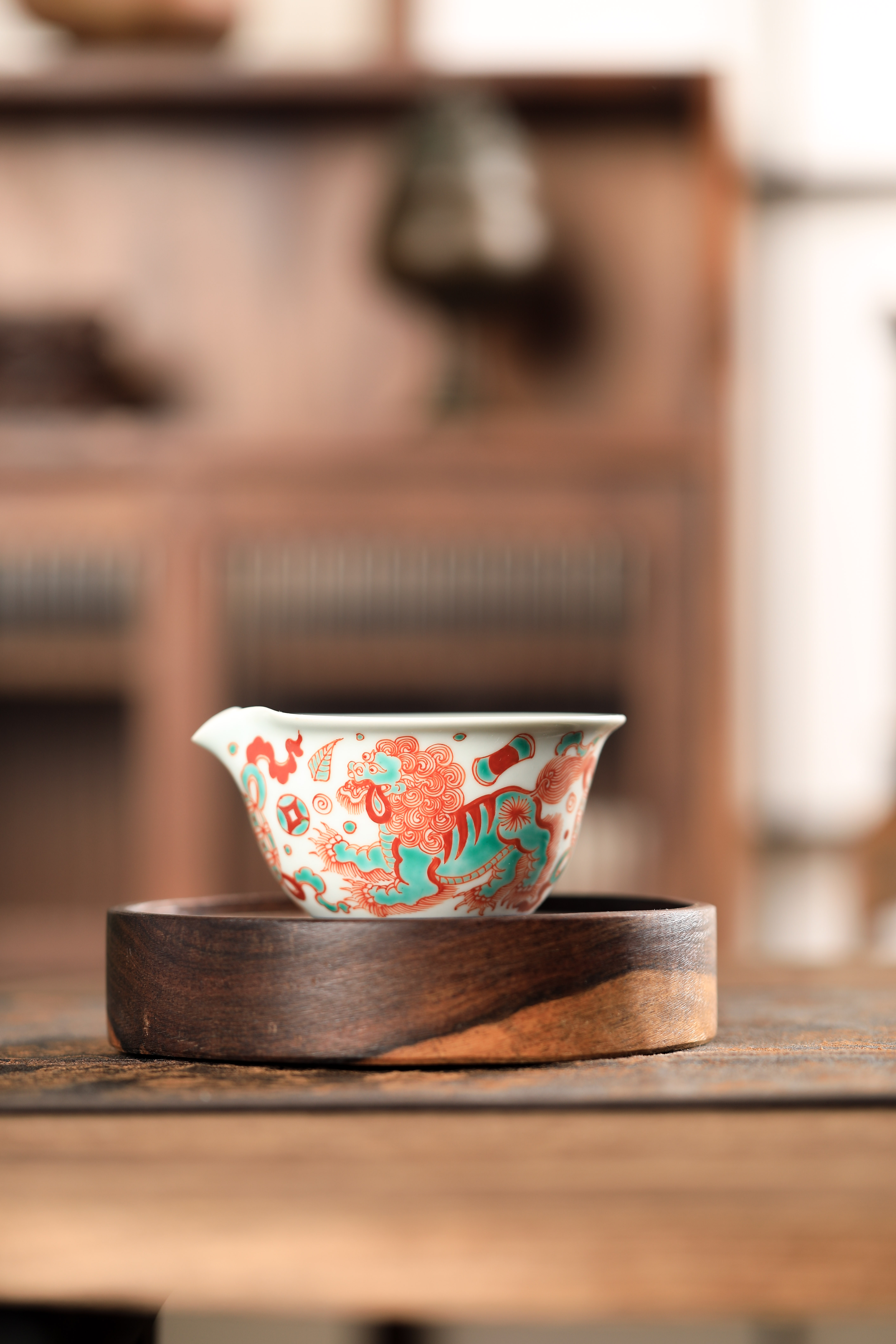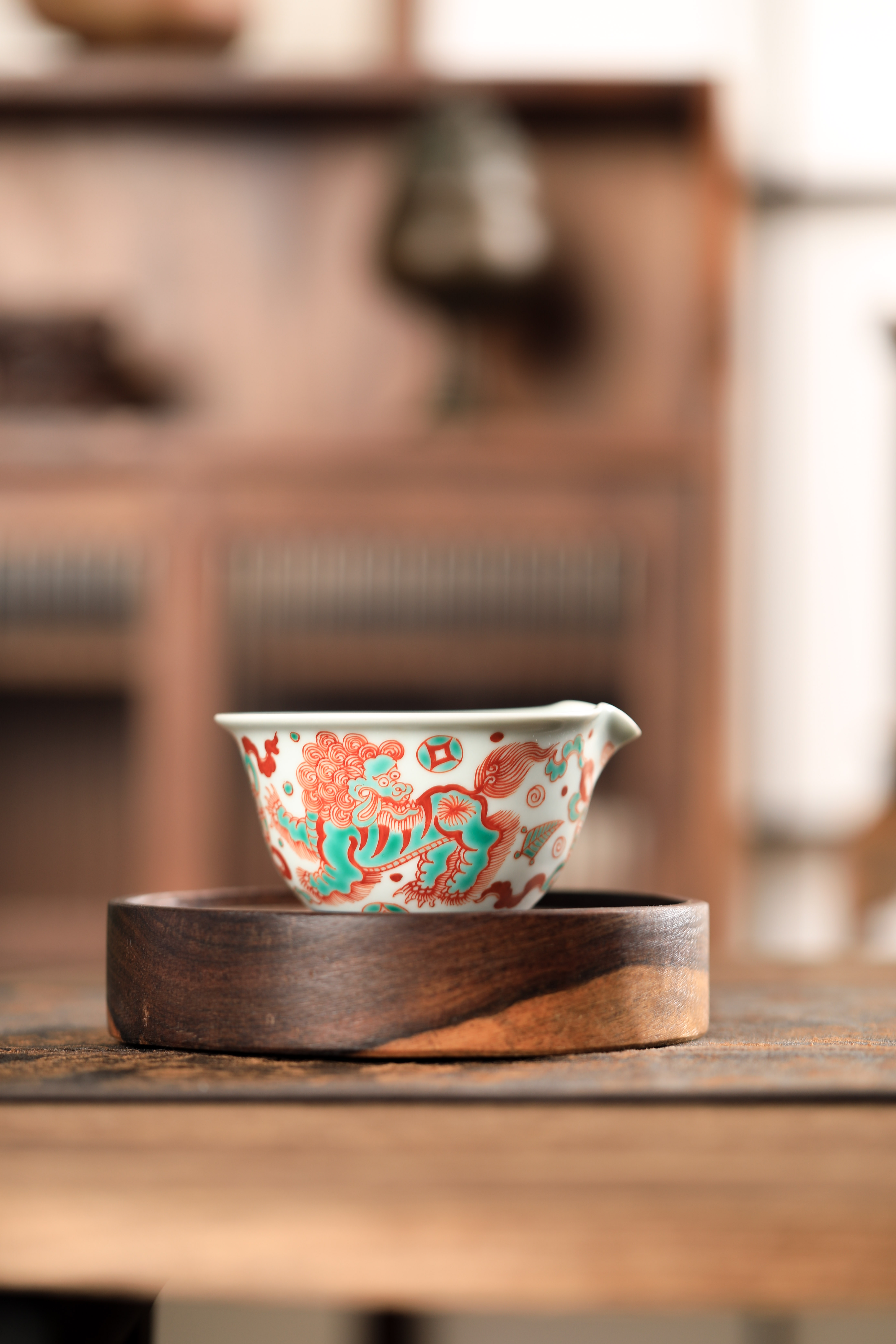 莲画堂红绿彩双狮滚绣球公道杯