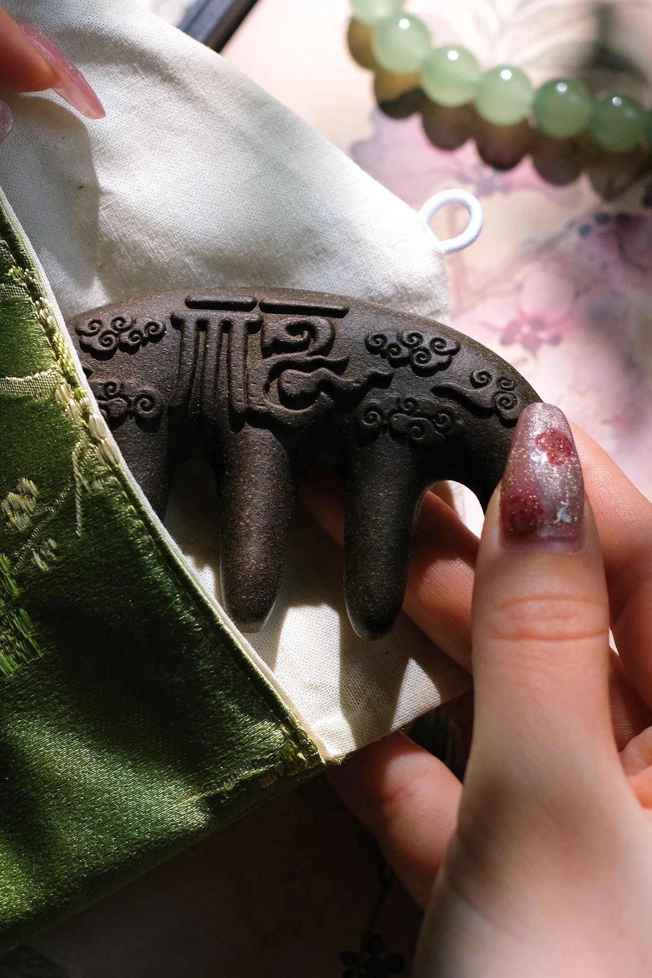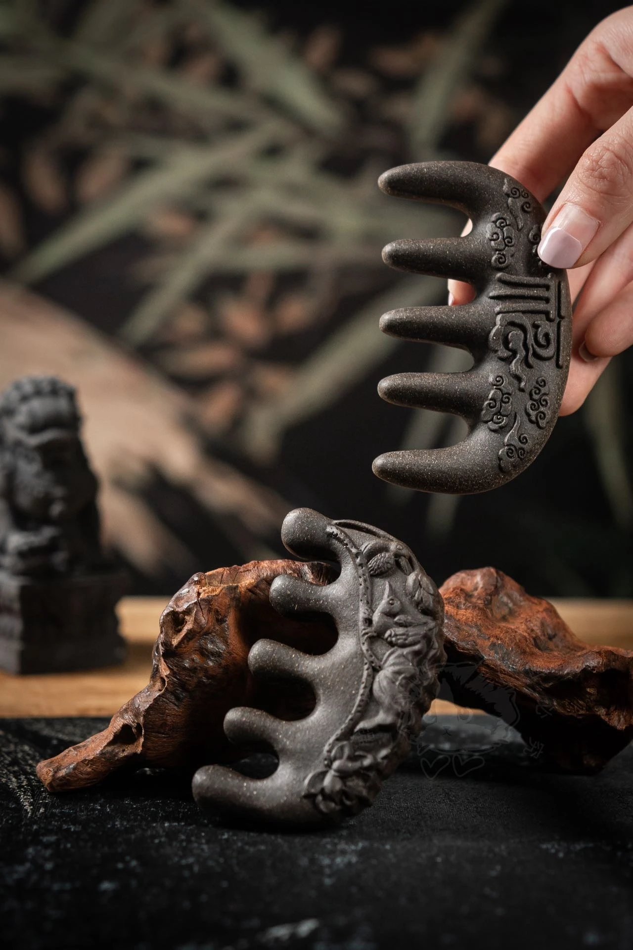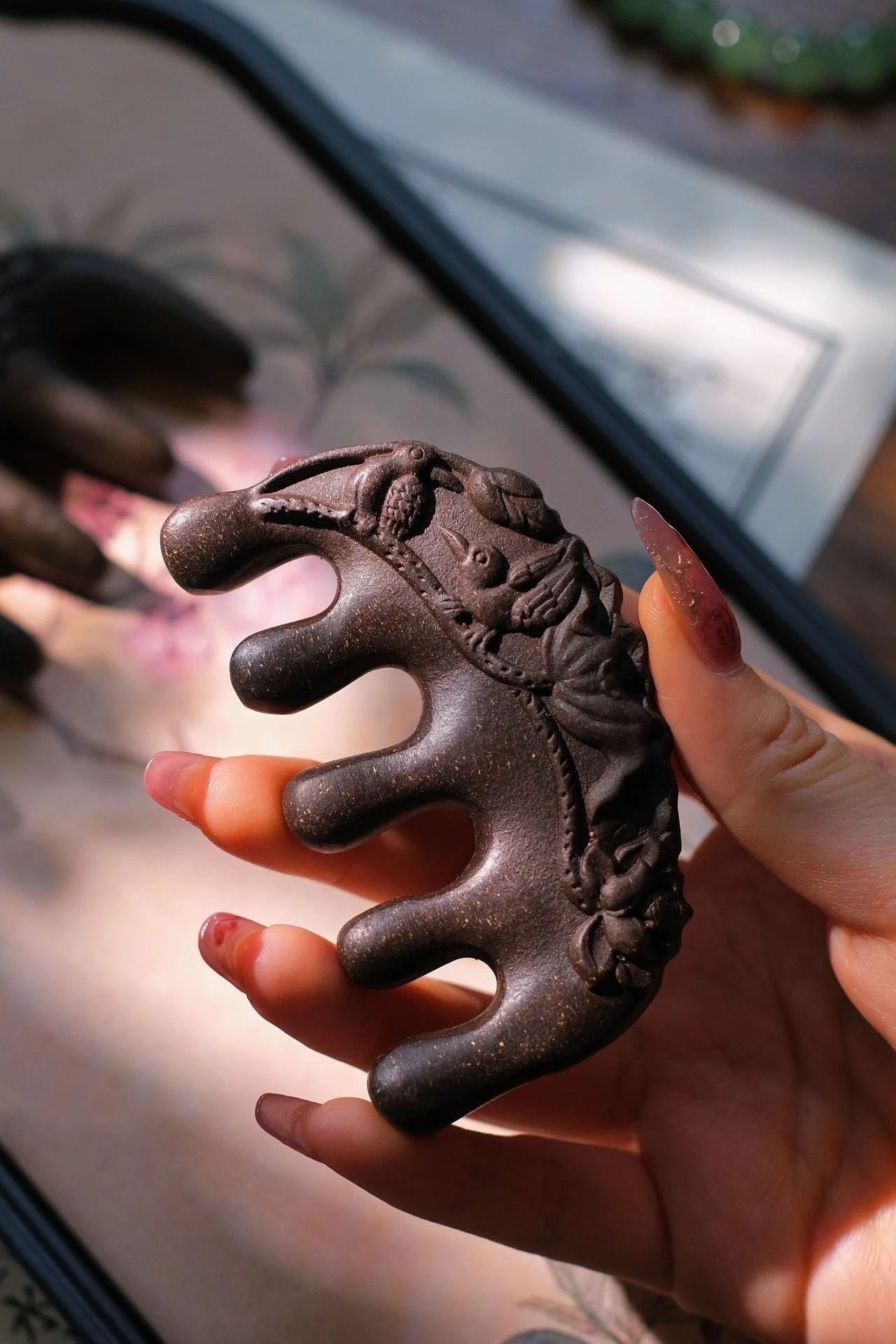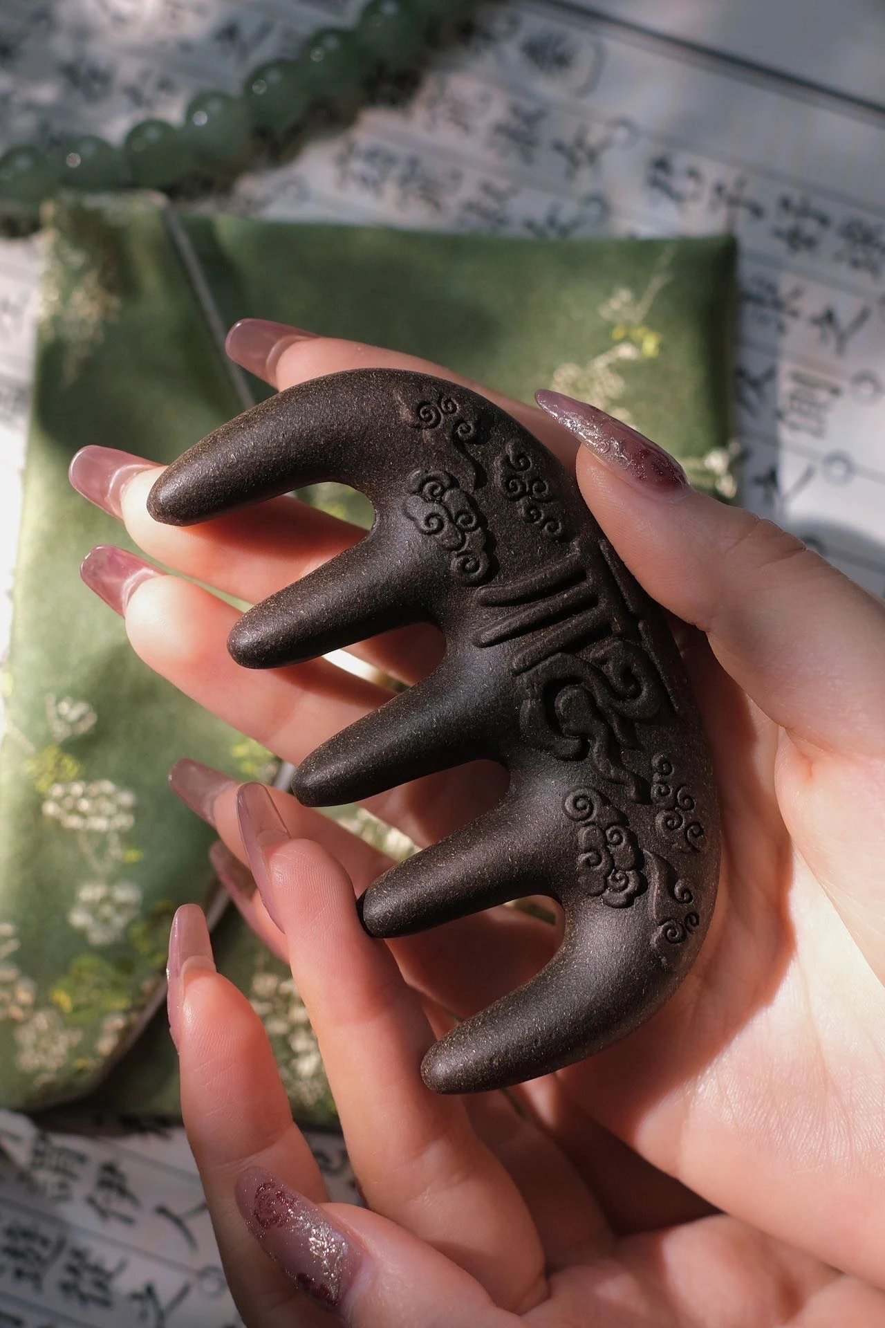 非遗大师手作❗️【非遗古法何首乌合香梳】非遗传承人曾建全老师亲自合香~模拟人手指压设计,圆头梳齿,保护头皮✅一梳多用,头部+颈肩+四肢+关节梳通按摩刮痧!