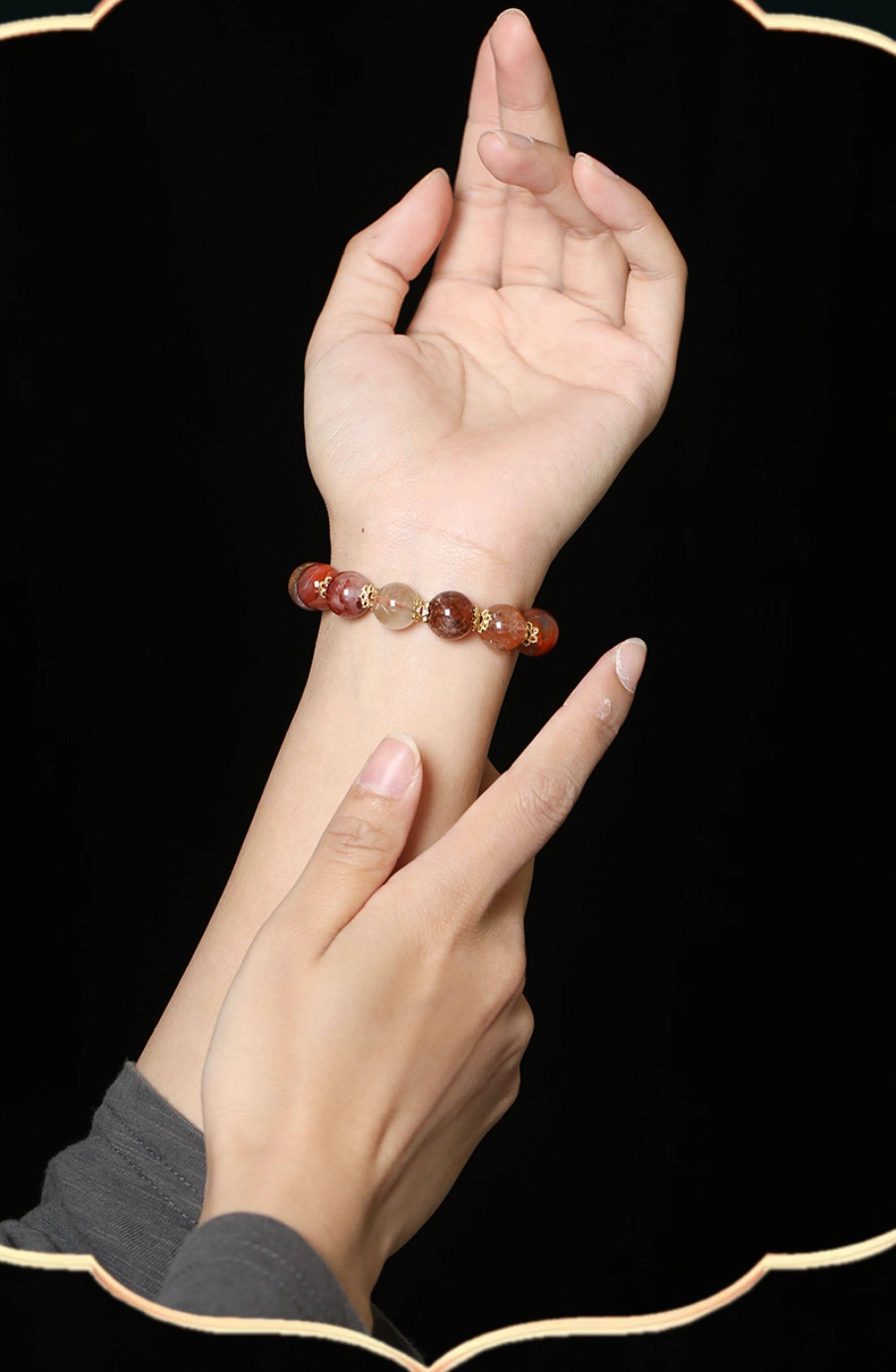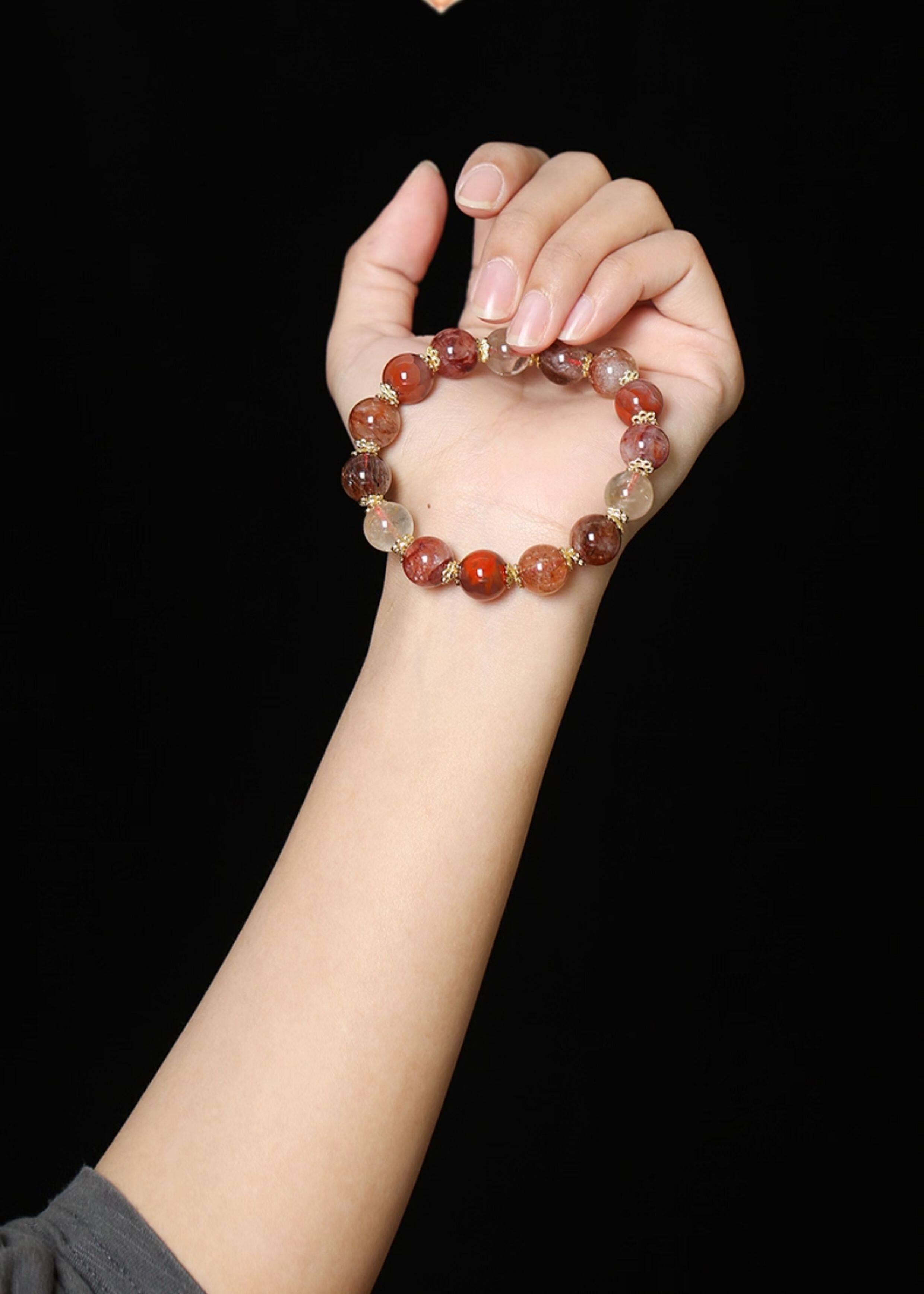 【祈愿吉品】红玛瑙串珠手链款财神黄水晶手串