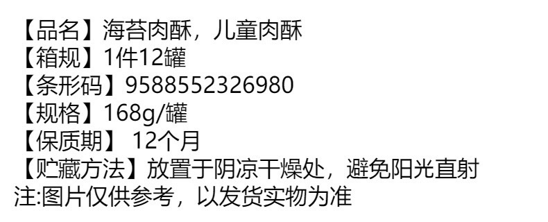 金语海苔肉松肉酥168g罐装儿童肉酥早餐配粥三明治夹心