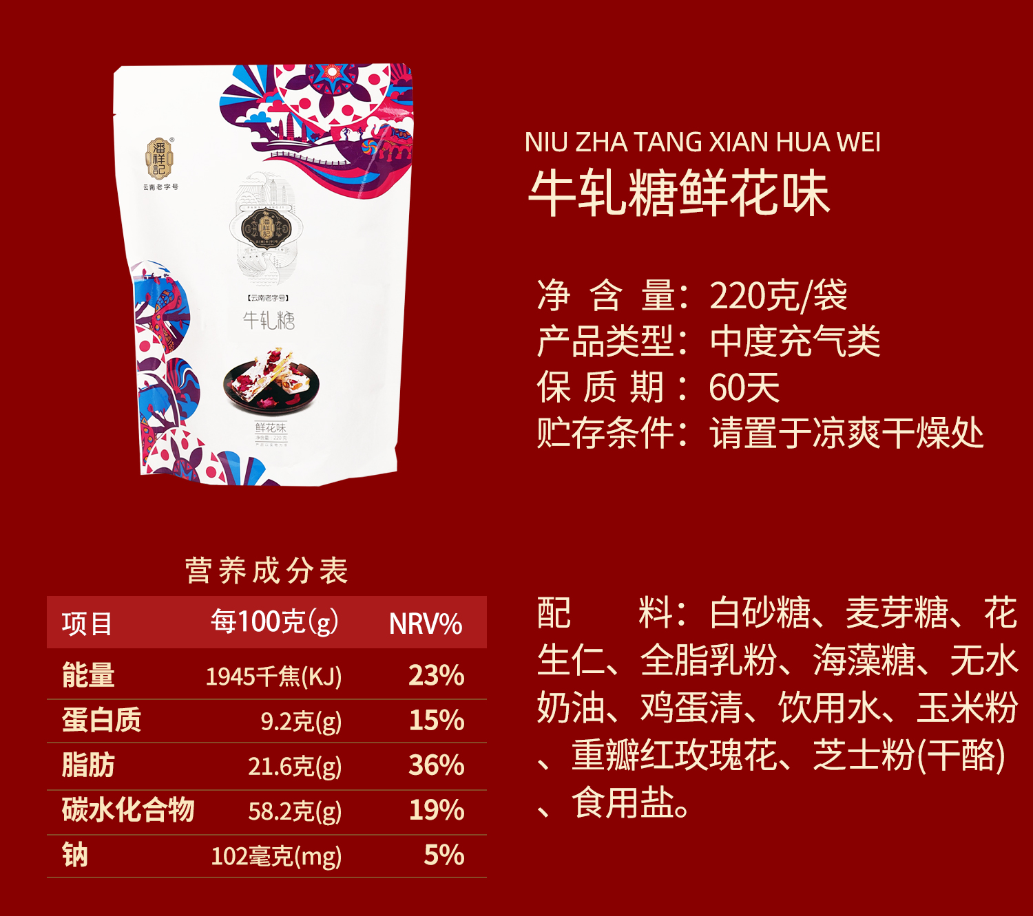 【玫香双酥】玫瑰花生糖/玫瑰牛轧糖