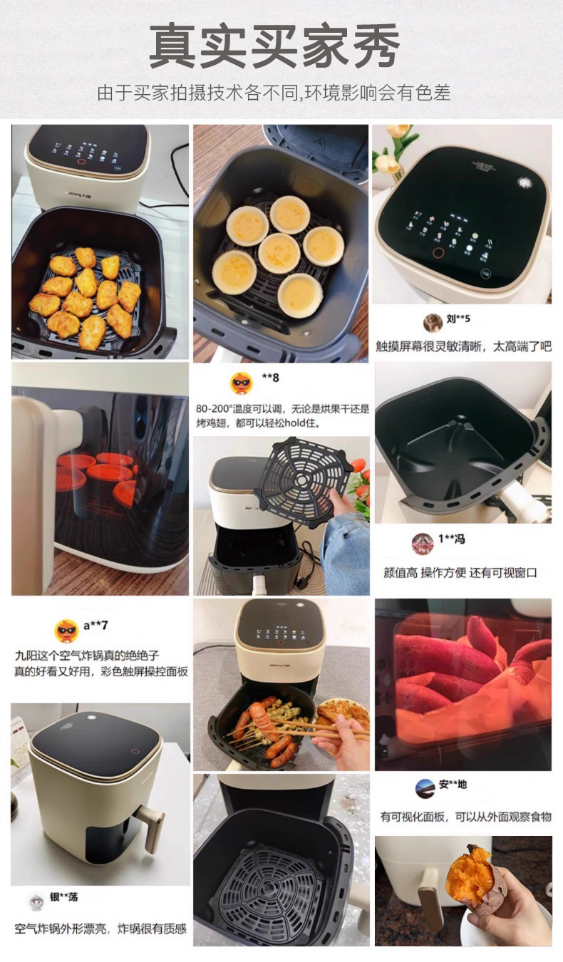九阳空气炸锅不用翻面5L大容量家用智能触控电烤箱蒸汽炸锅电炸锅