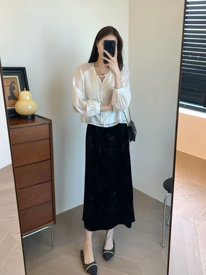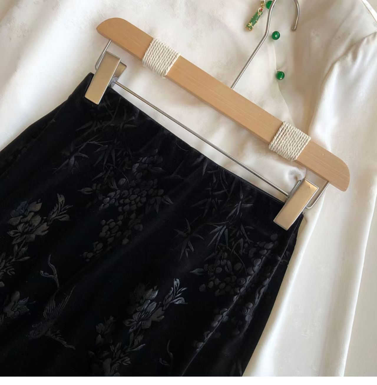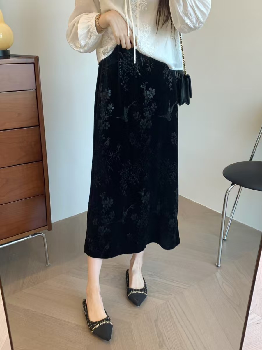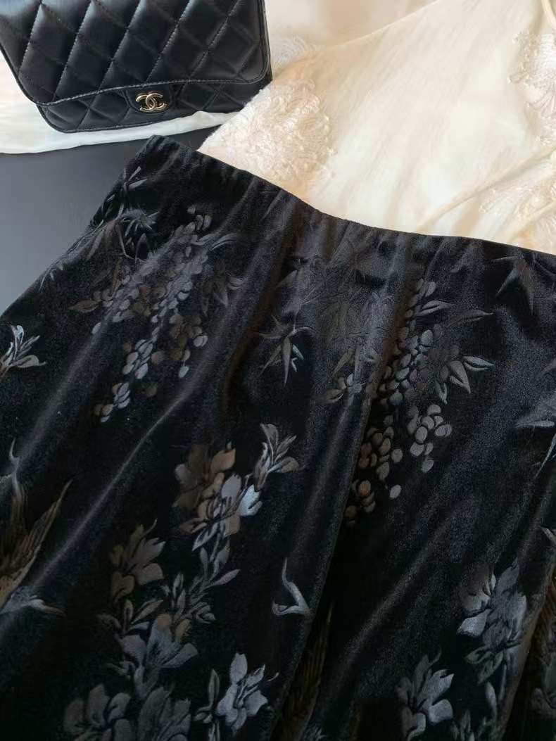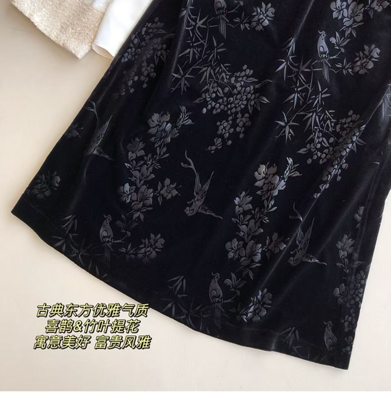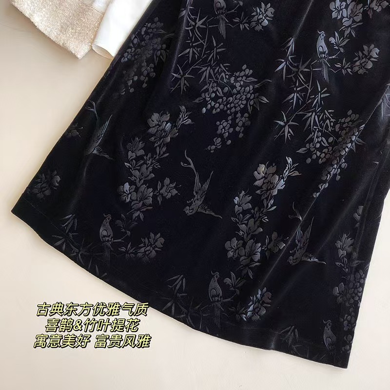 中式风雅 丝绒提花半裙袭文竹,暗影浮动~