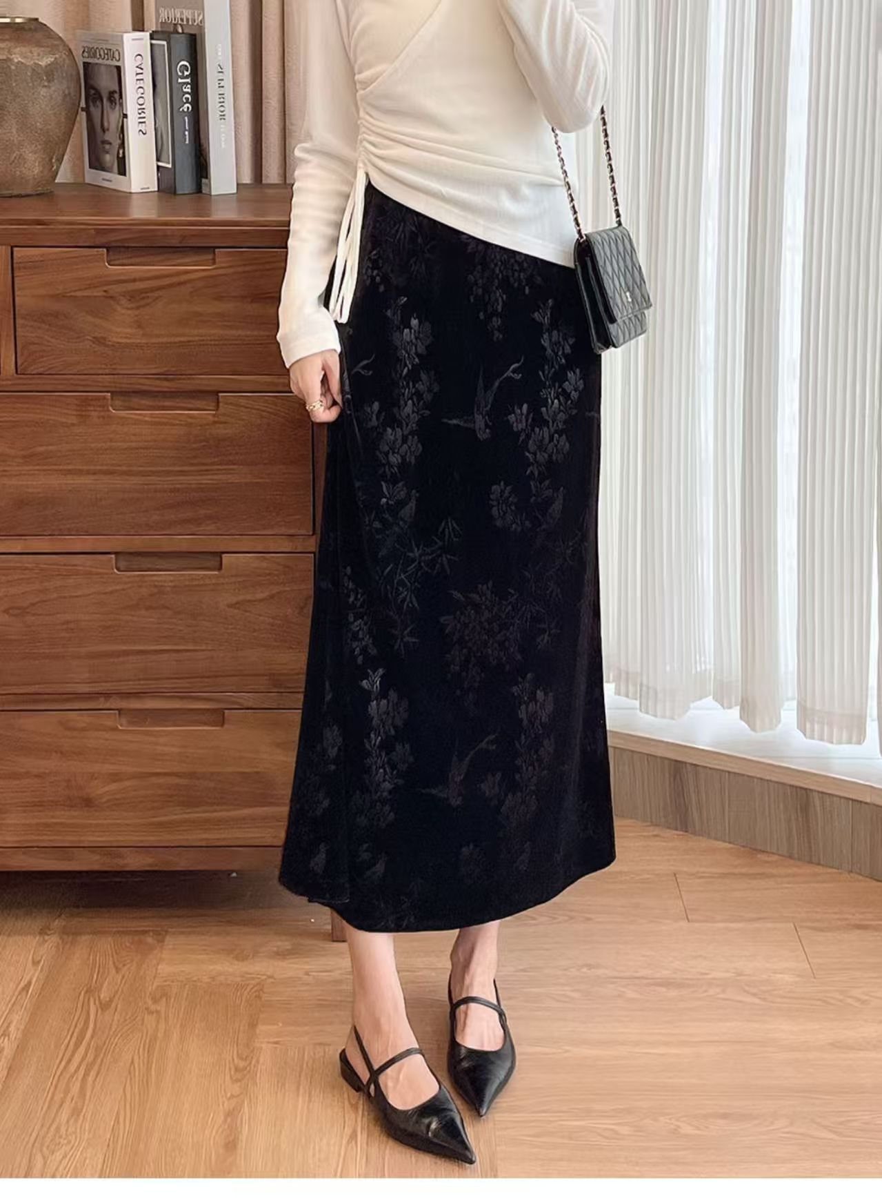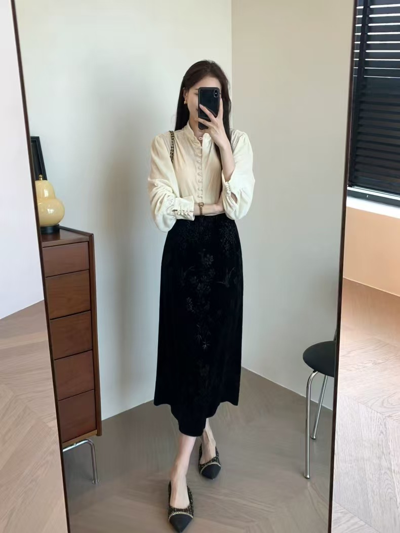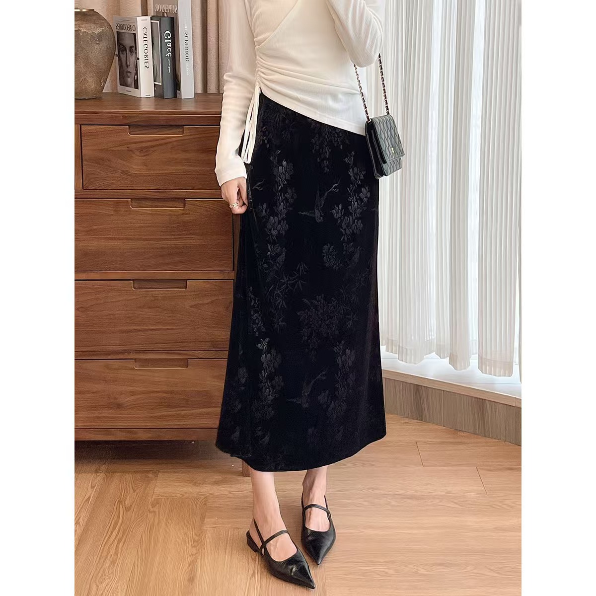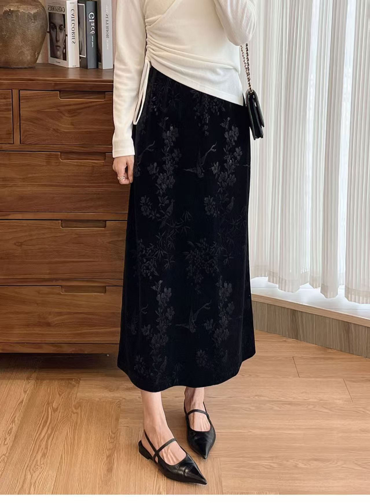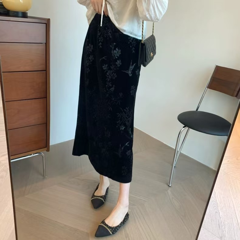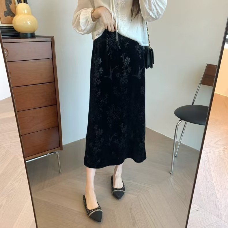 中式风雅 丝绒提花半裙袭文竹,暗影浮动~