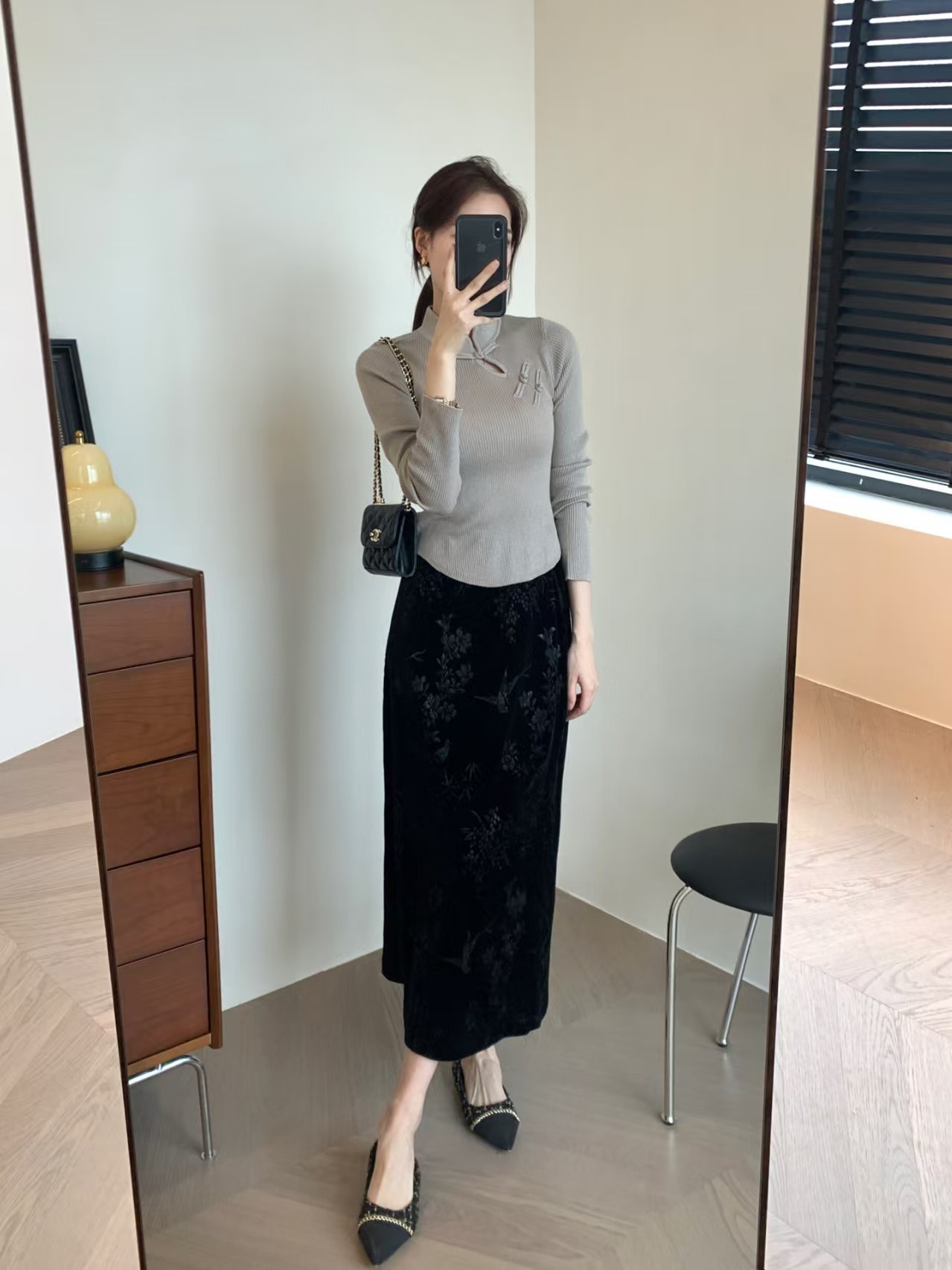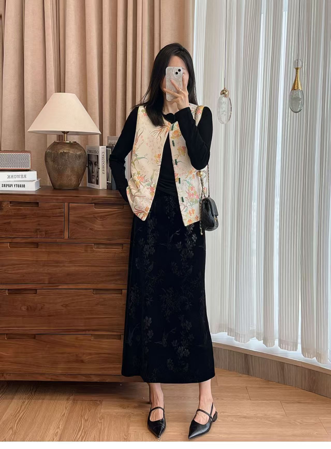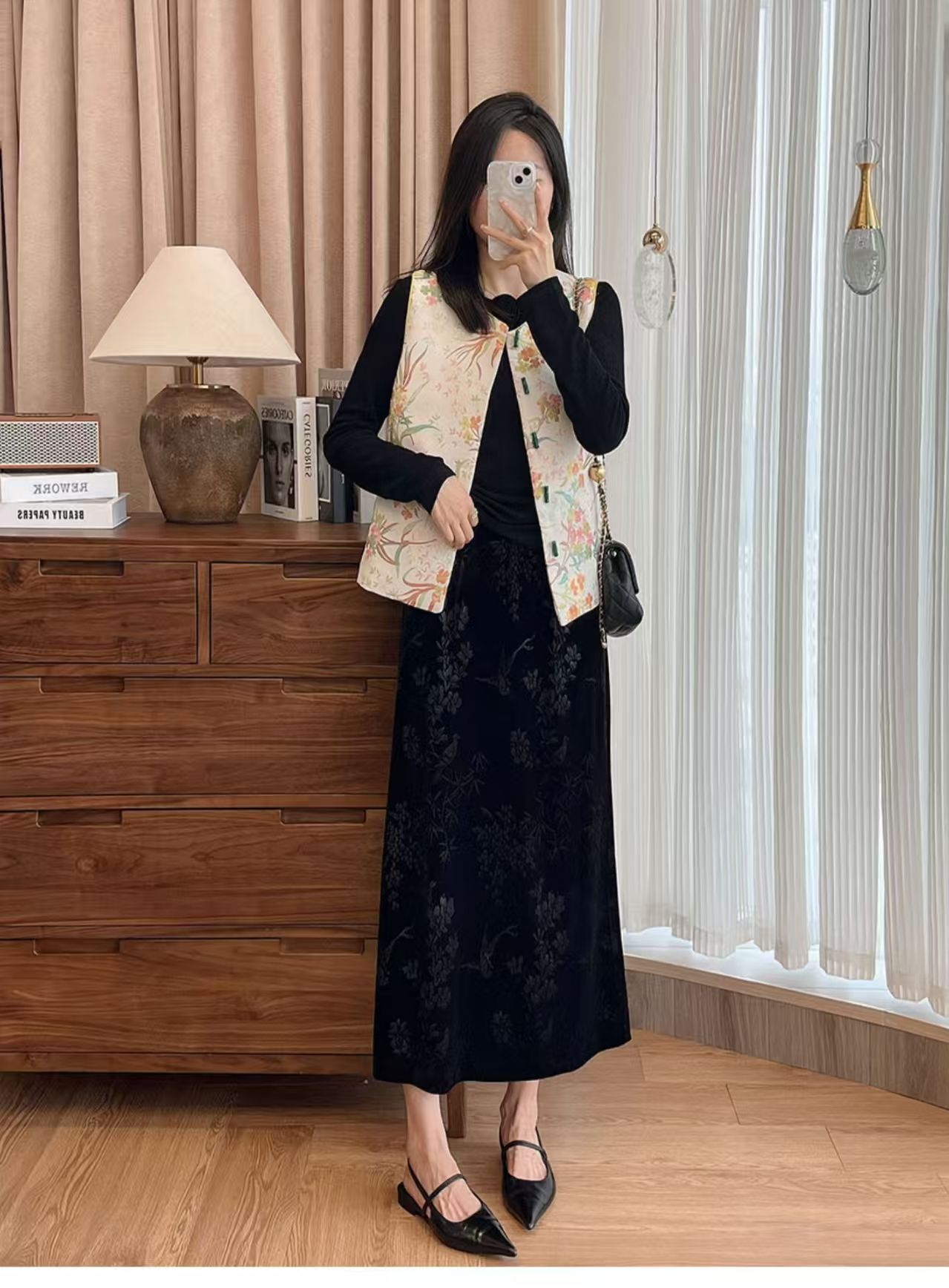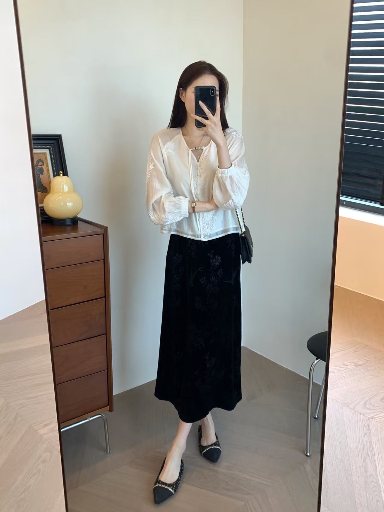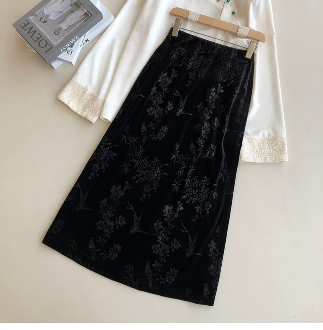 中式风雅 丝绒提花半裙袭文竹,暗影浮动~