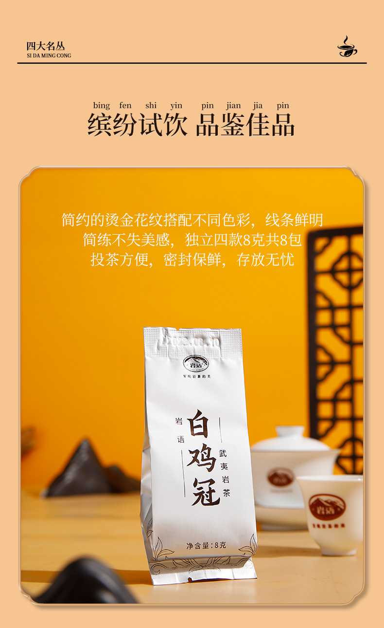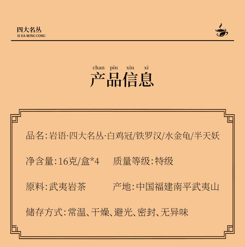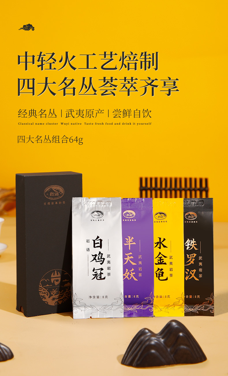 岩语 四大名丛试饮集 水金龟铁罗汉半天妖白鸡冠武夷岩茶特级乌龙茶64g