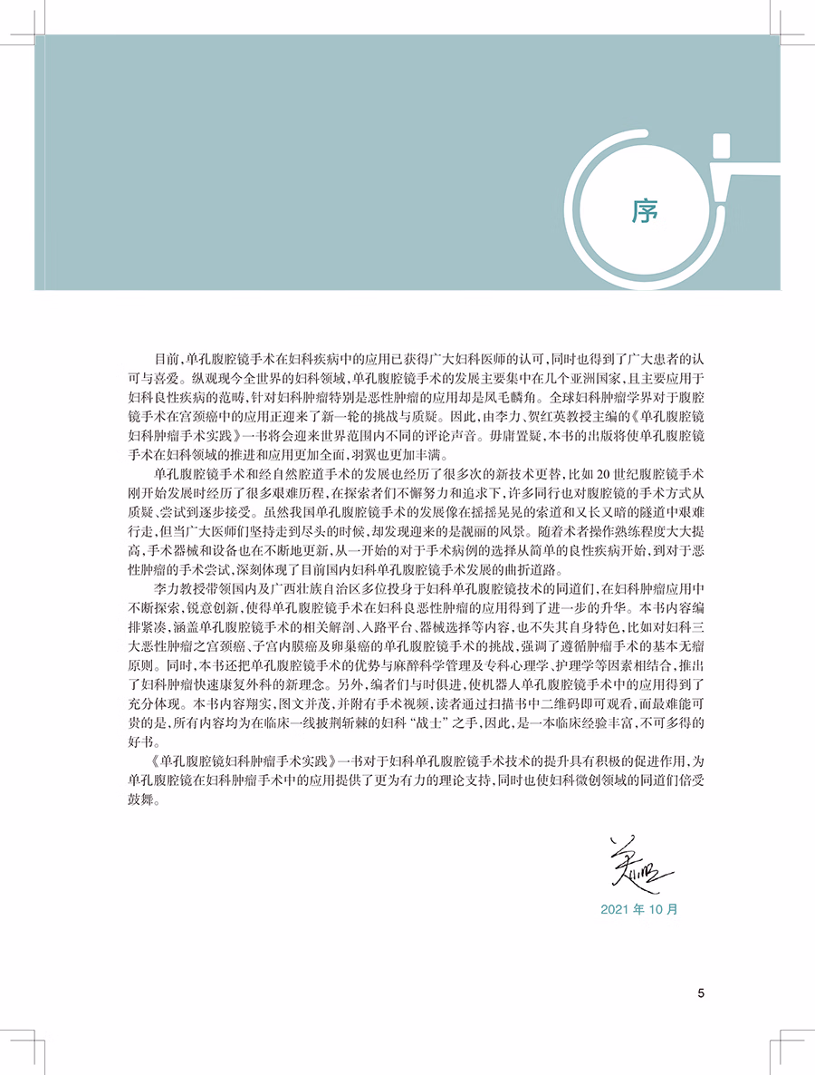 本书内容丰富,分为22章,包括妇科肿瘤单孔手术基本概况、妇科肿瘤单孔腹腔镜手术的作技巧及培训、妇科肿瘤单孔腹腔镜手术的标本处理、宫颈癌前病变的单孔腹腔镜手术、妇科肿瘤单孔腹腔镜手术的全程管理及护理、妇科肿瘤单孔机器人手术的应用、宫颈癌前病变的单孔腹腔镜手术。单孔腹腔镜盆腔子宫内膜异位性疾病的手术处理。妇科肿瘤单孔腹腔镜早期子宫内膜癌全面分期手术。 妇科肿瘤单孔手早期宮颈癌术学。妇科肿瘤 单孔腹腔镜早期卵巢癌手术等。紧贴临床实践,注重临床作,实用性强,对妇科临床医师有较高的指导性和实用性。本书将采用大量精美手术图片经典的手术视频,更贴近临床,便于观摩和理解。