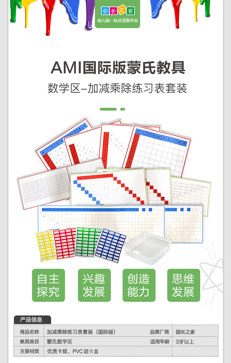 AMI教具 加减乘除法订正板练习表