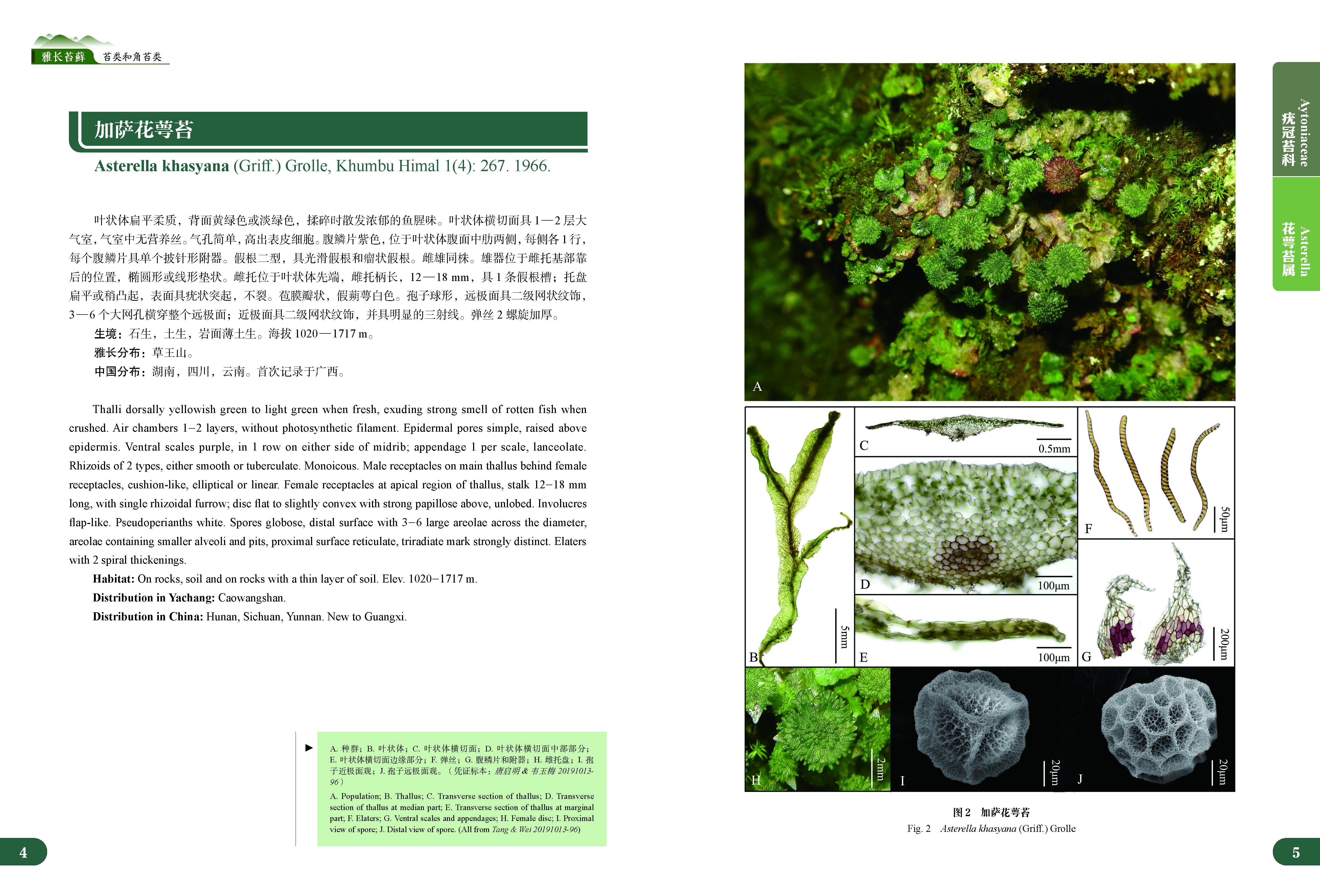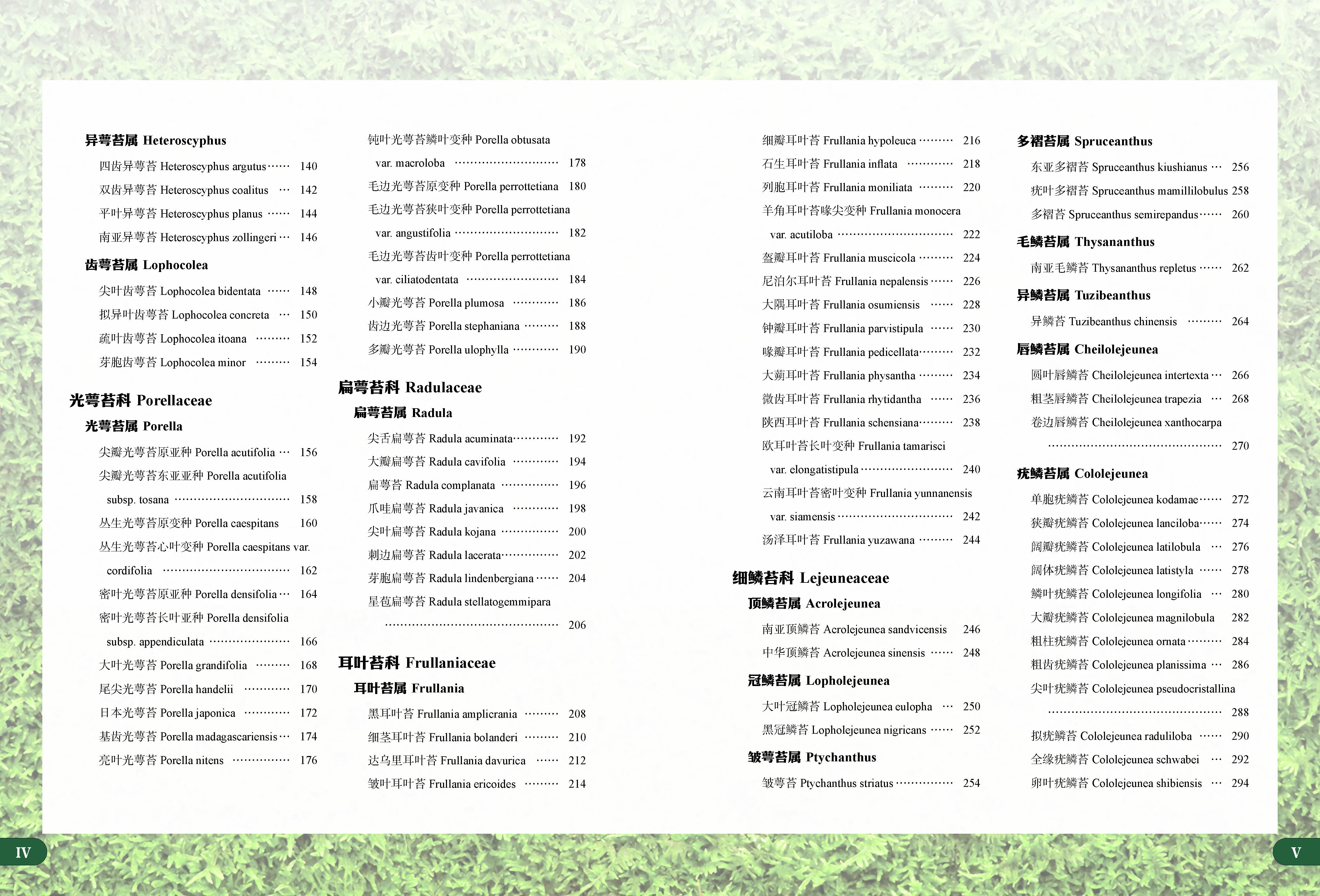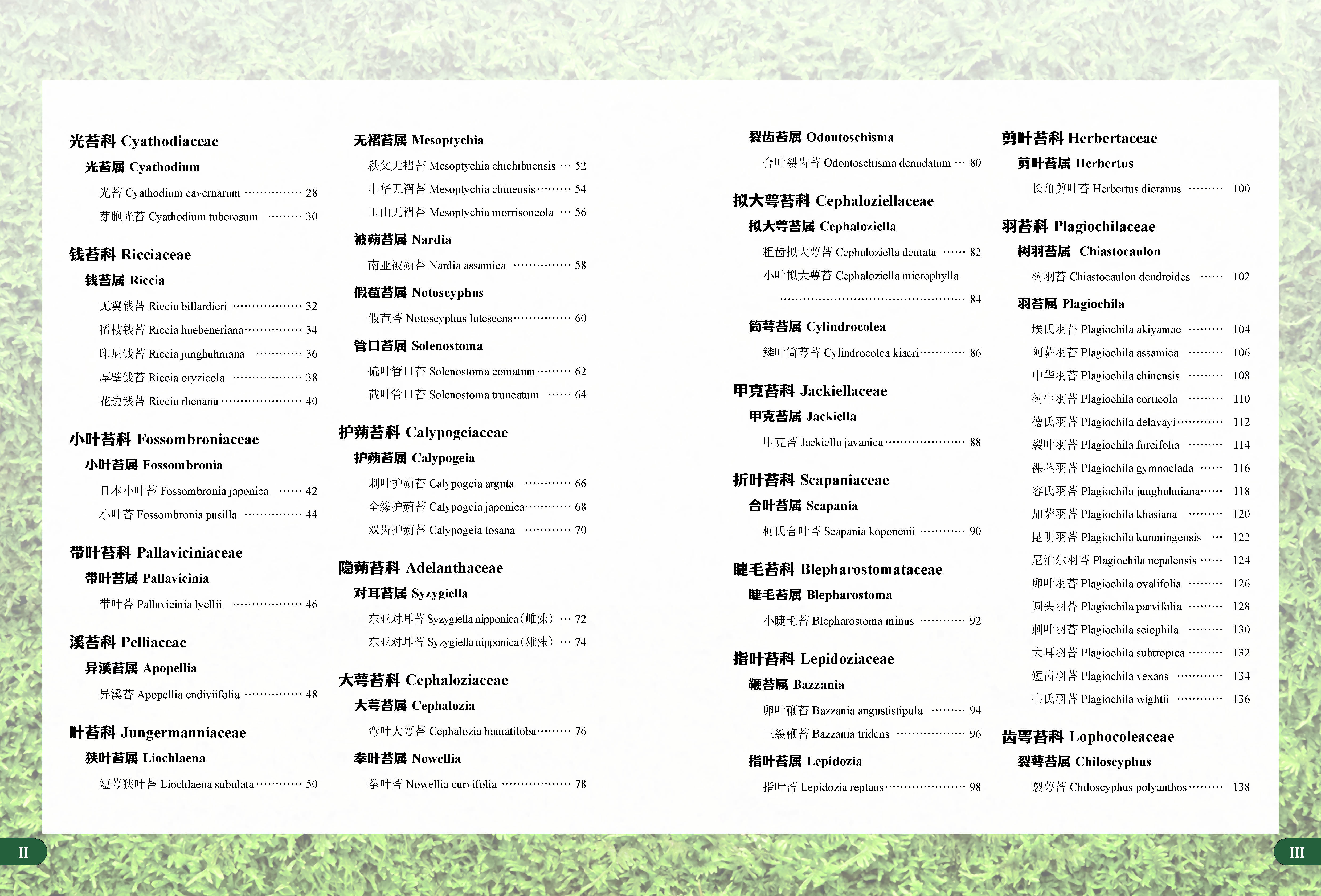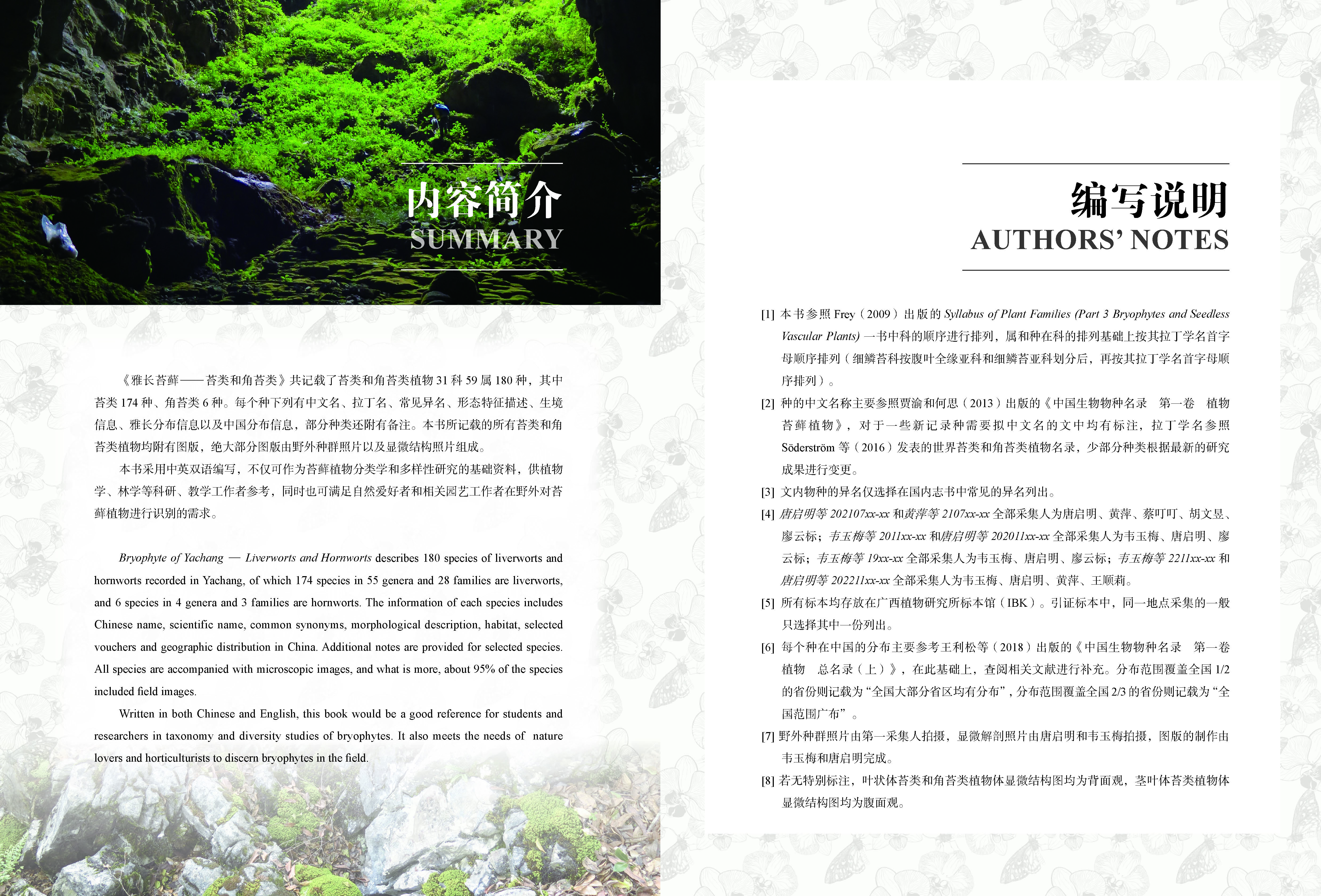 本书是作者基于5年野外考察获得的约3500份标本的研究成果,最大特点是所有照片和描述是基于新鲜材料,并且双语出版。这是我国少见的双语出版的地方苔藓植物图志,记载了雅长保护区产的苔类和角苔类植物,合计31科59属180种,其中苔类174种、角苔类6种。每个种下列有中文名、拉丁名、常见异名、形态特征描述、生境信息、雅长分布信息以及中国分布信息。书内的每个种均附有彩色图版。难能可贵的是,书中绝大部分种都配有野外居群、显微结构(含油体)以及扫描电镜照片,这些由多层次照片构成的图版对读者极其有用。本书的照片都标注了凭证标本,这为今后开展全国苔藓植物志的修订提供了重要的资料。本书不仅是国内外苔藓植物分类学和多样性研究的基础资料,更是自然爱好者不可多得的一本工具书。