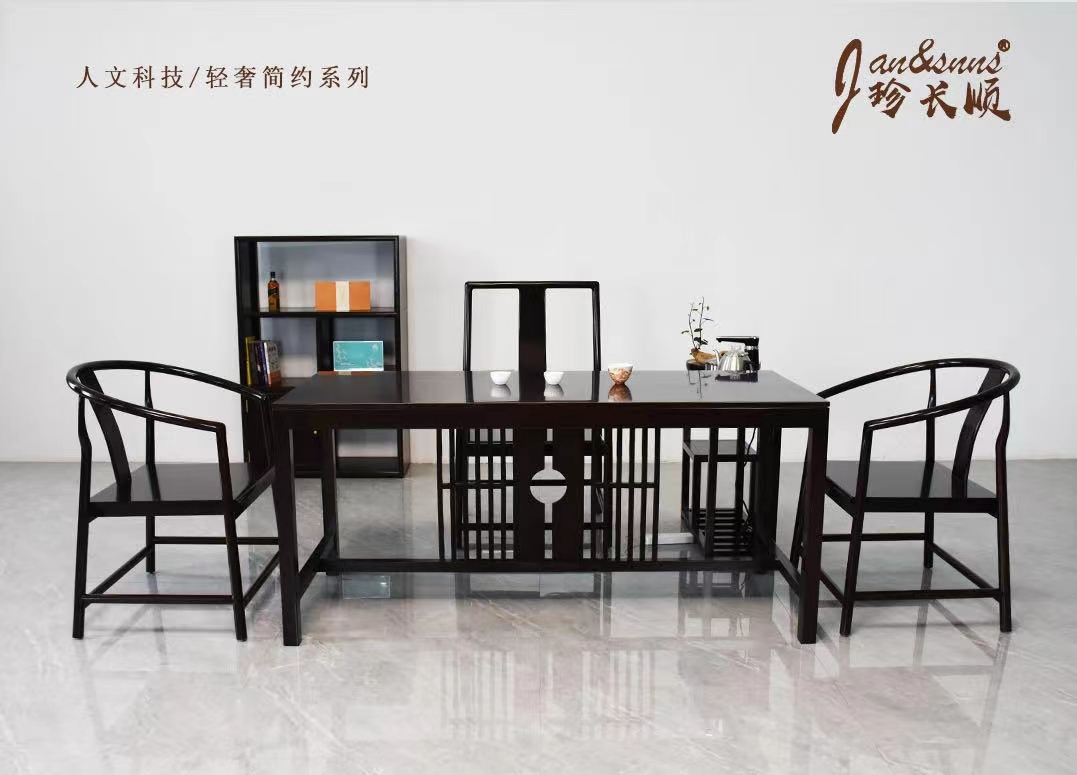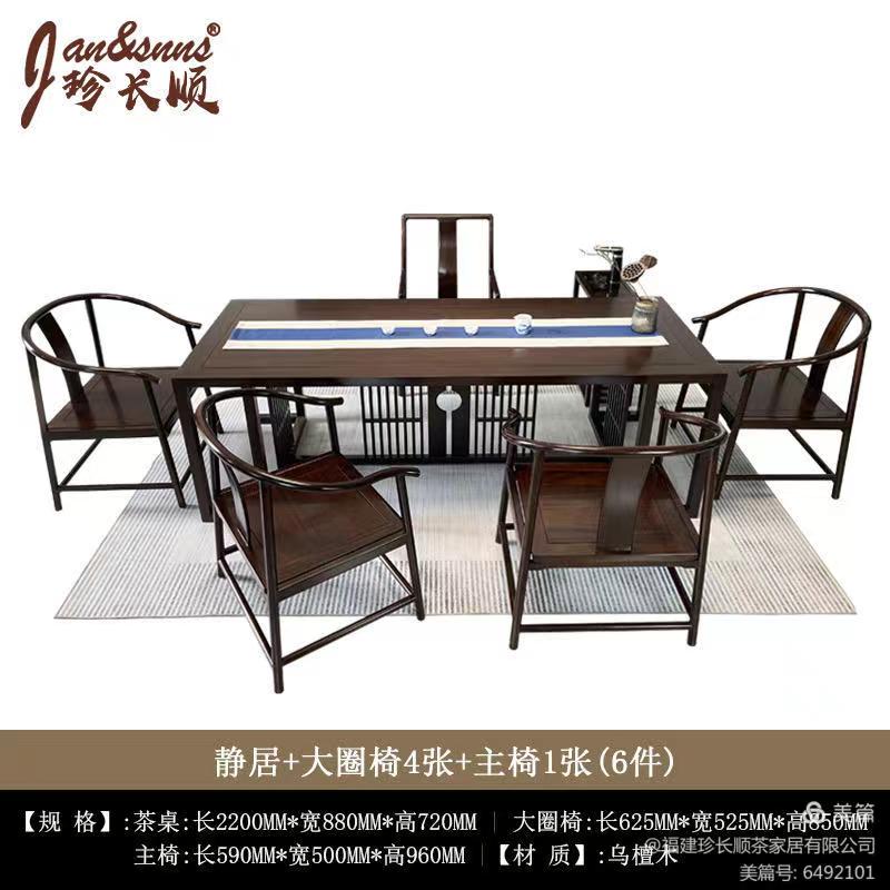 2.2米-(静居)乌檀木六件套茶桌