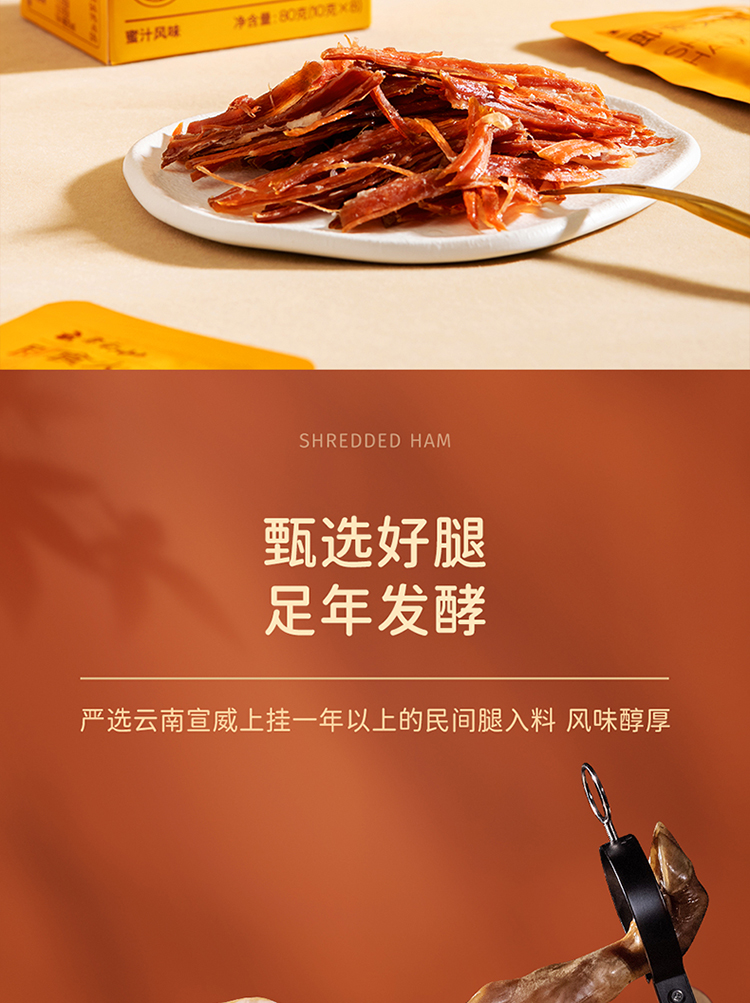 严选 即食火腿丝麻辣香辣味休闲零食猪肉脯特产