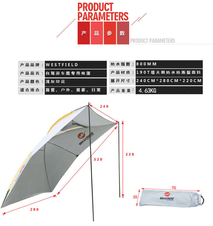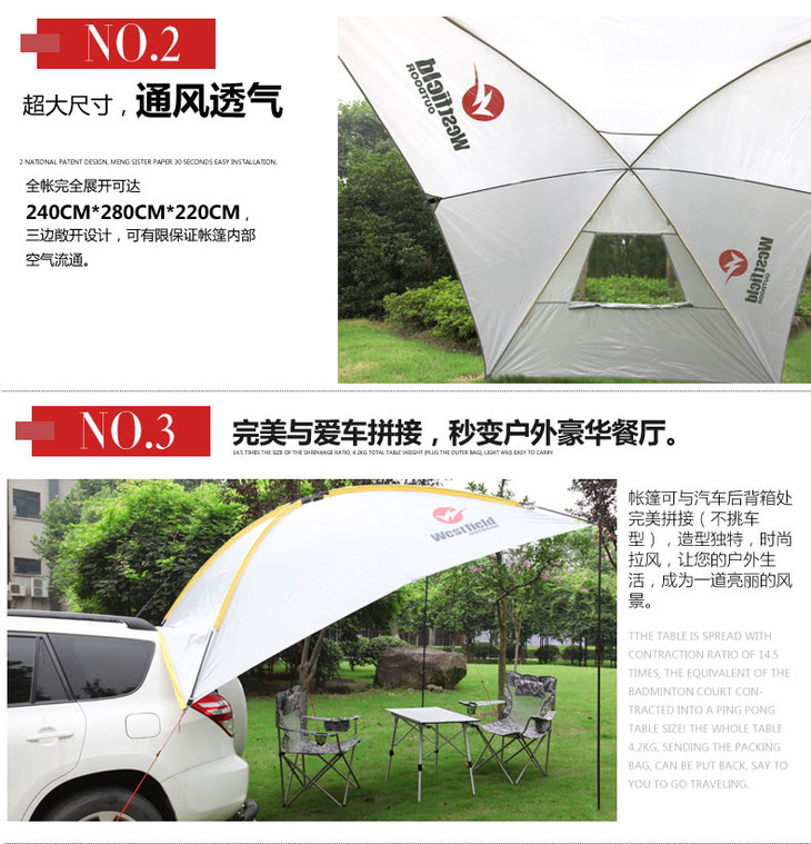 (永久下架)Westfield/我飞 车载专用天幕帐篷+折叠椅(柠檬黄)2张组合